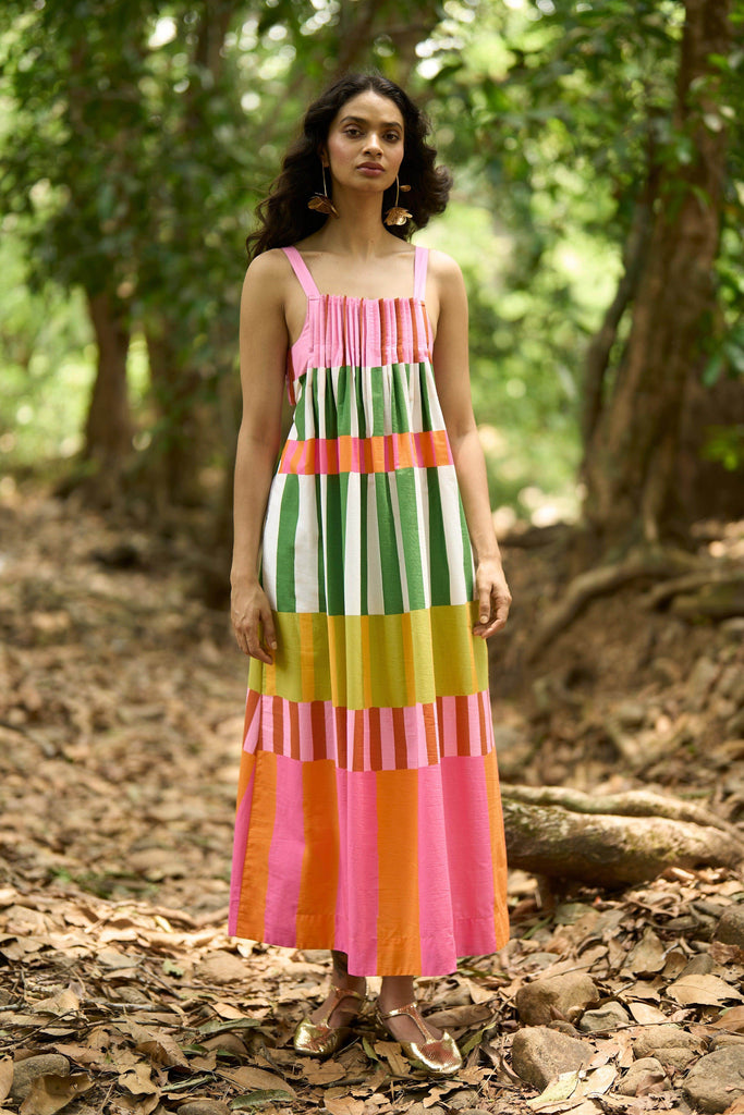 MULTICOLOUR CHECK TIERED MIDI DRESS