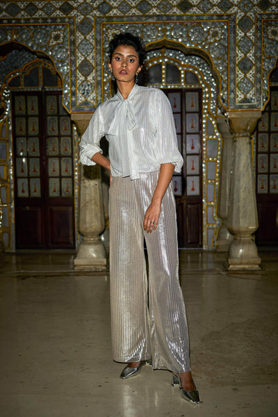 PLEATED LAMÉ PANT