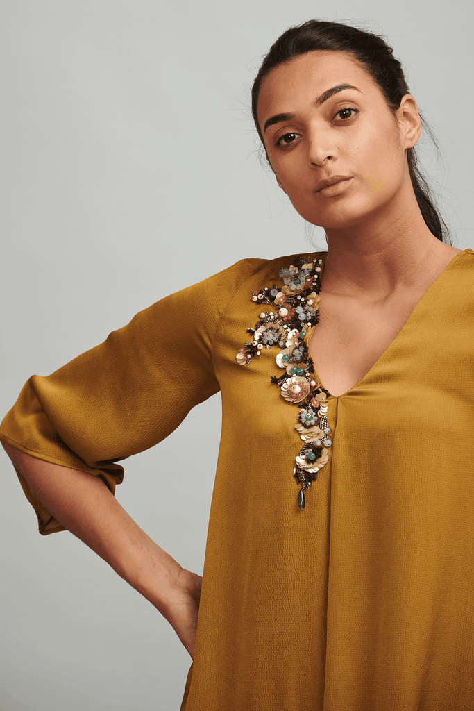 STATEMENT CHAMPAGNE SEQUIN EMBROIDERED GOWN