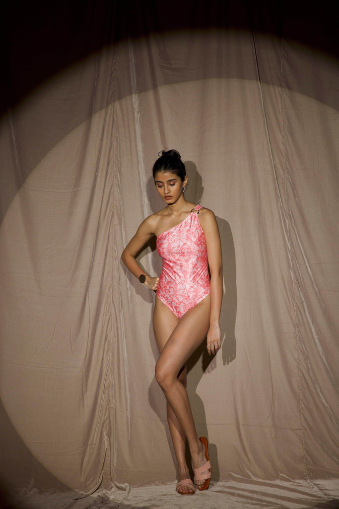TRIBAL ONE-SHOULDER SWIMSUIT