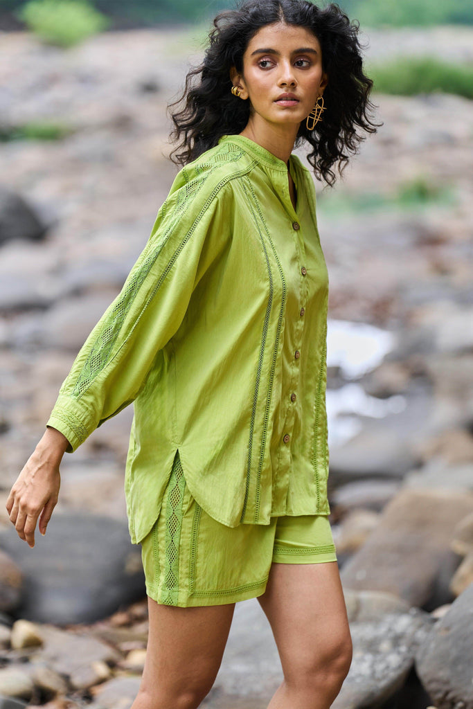 ONE-SHOULDER LACE CAPE WITH CUTOWORK & PANT SET