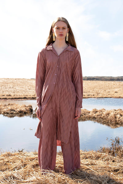 MONOCHROME SEQUIN DRAPE SHIRT & HANDKERCHIEF HEM SKIRT SET