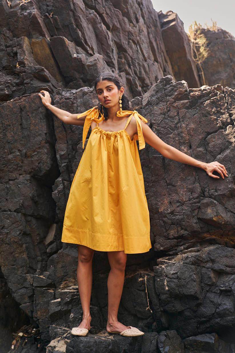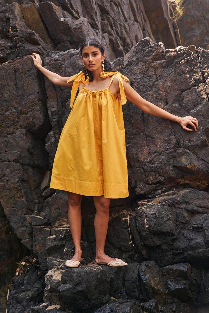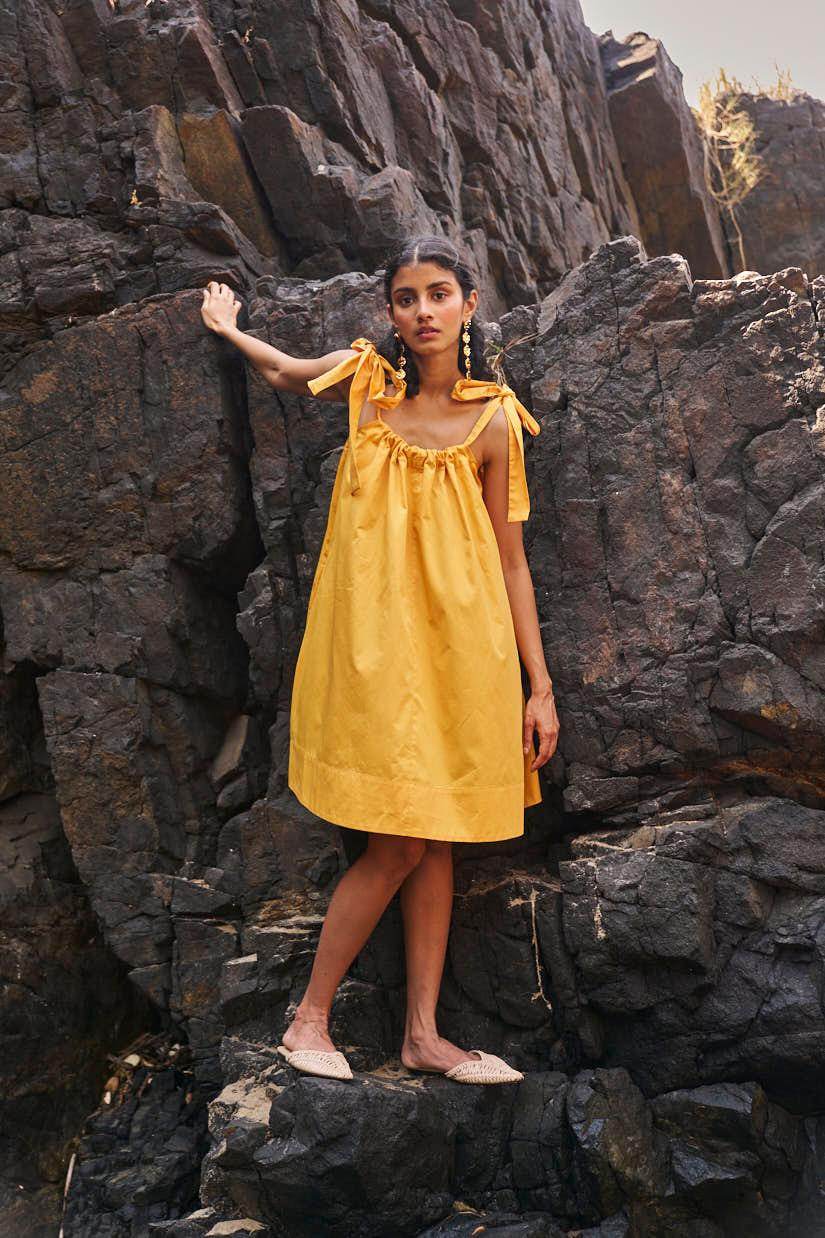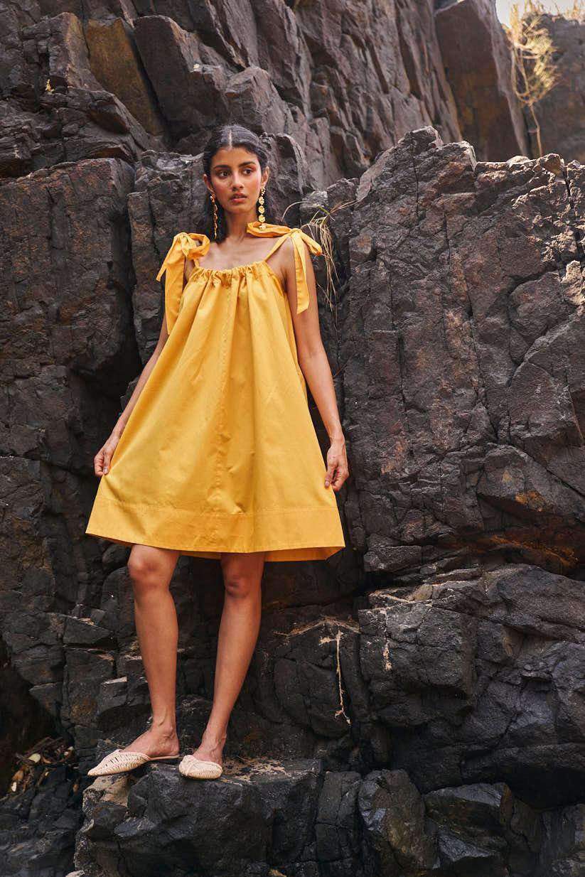Sleeveless pleated round neck dress in our signature abstract print. Raw-edge hem and vents in the sides. Relaxed fit. The print is cut at random and each piece is unique!