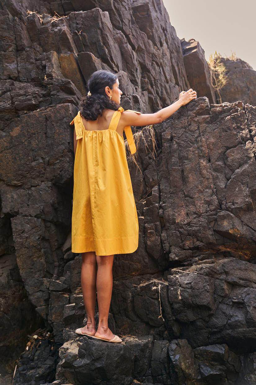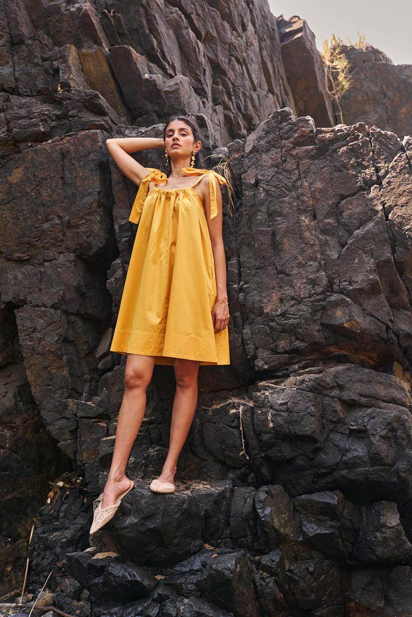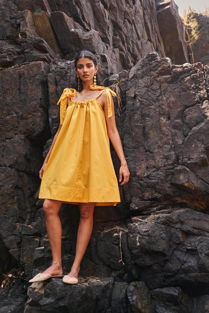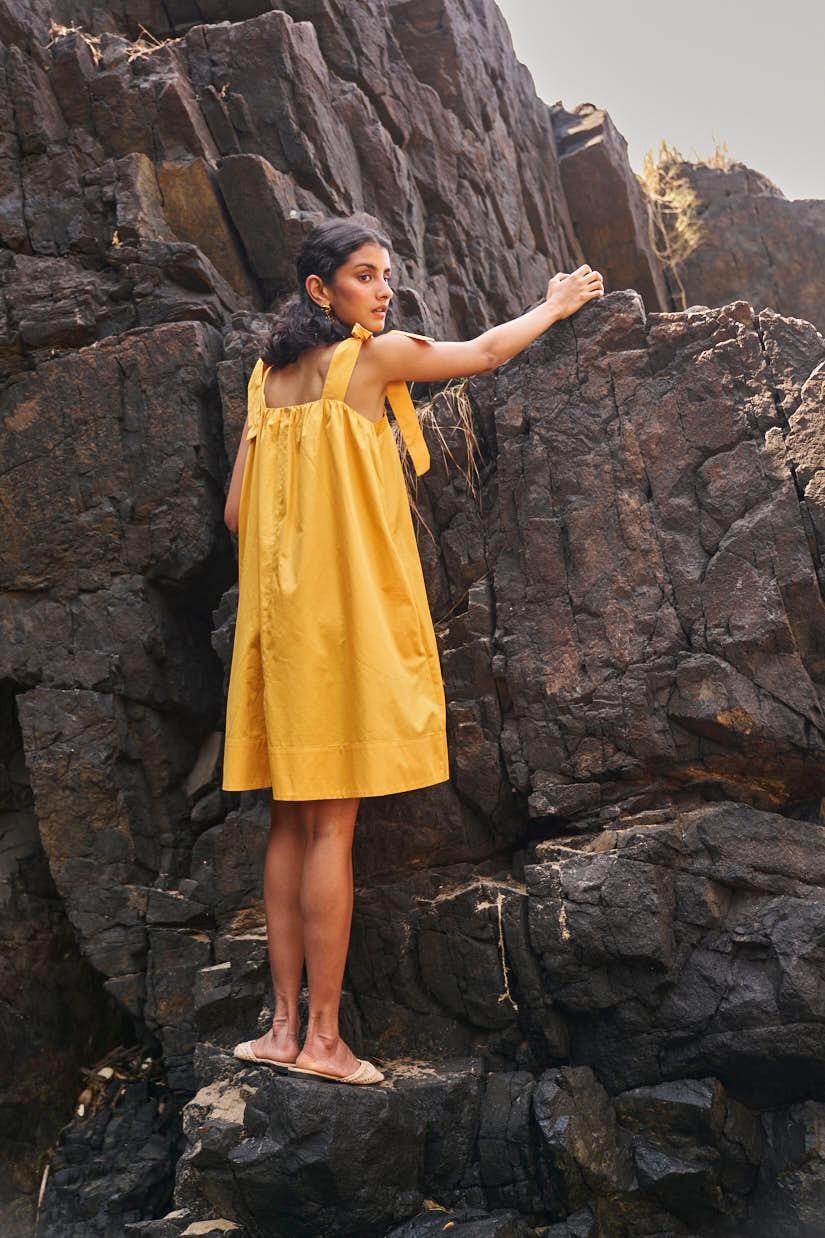 Sleeveless pleated round neck dress in our signature abstract print. Raw-edge hem and vents in the sides. Relaxed fit. The print is cut at random and each piece is unique!