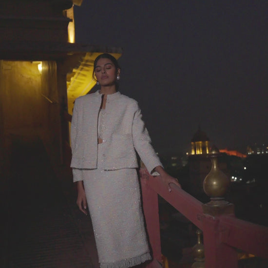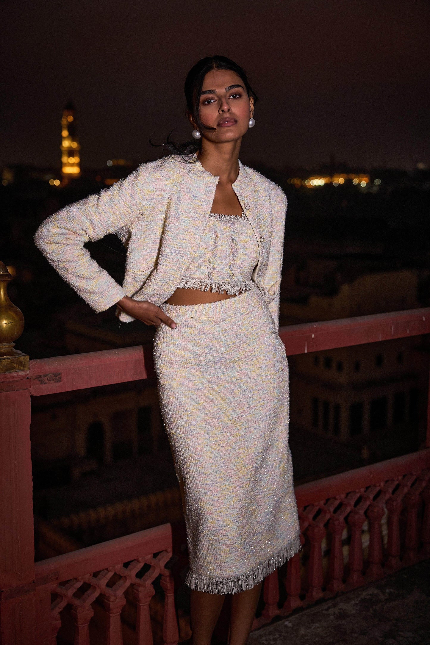 PASTEL BOUCLÉ BRALETTE, JACKET AND SKIRT - dash and dot dash and dot