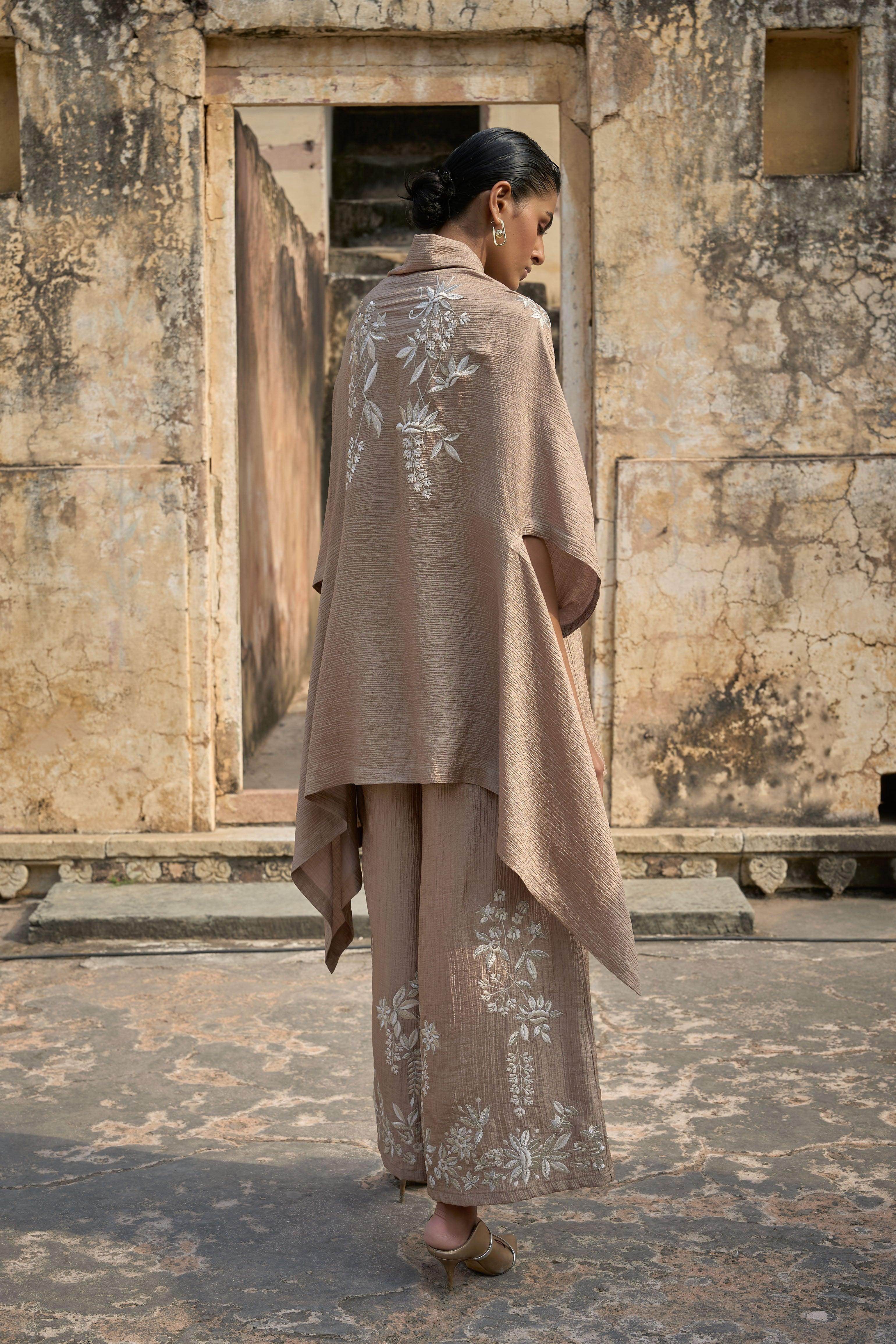 EMBROIDERED CAPE TOP & WIDE LEGGED PANT