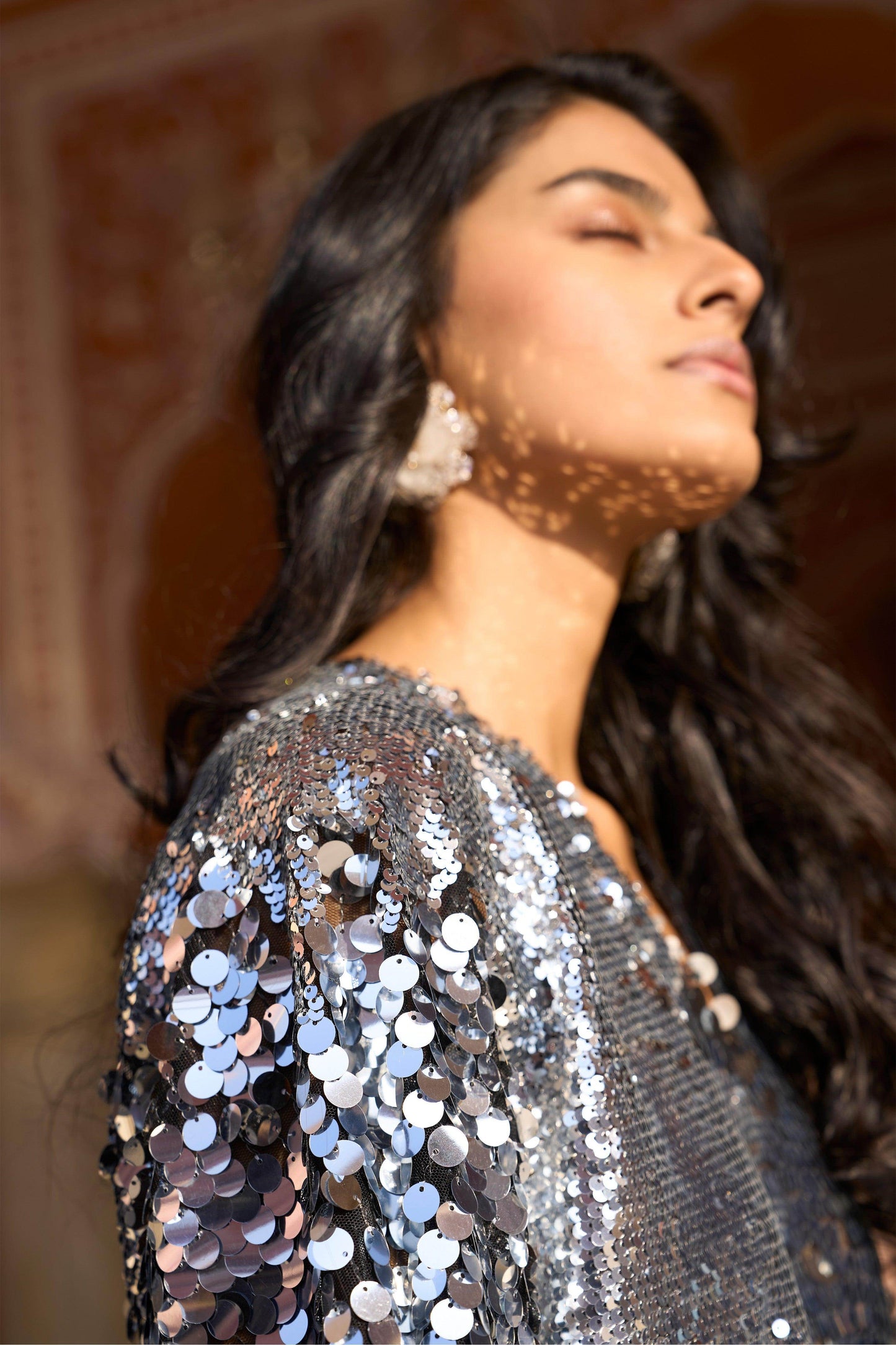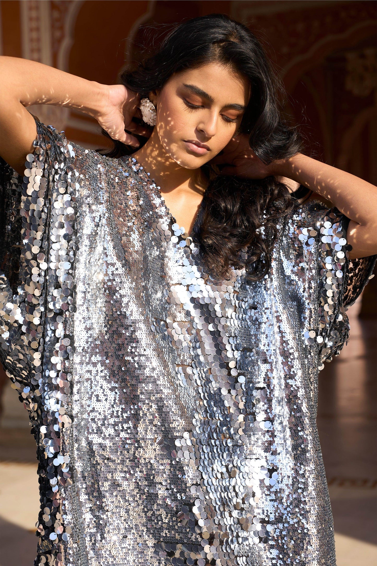 SILVER PAILLETTE KAFTAN DRESS