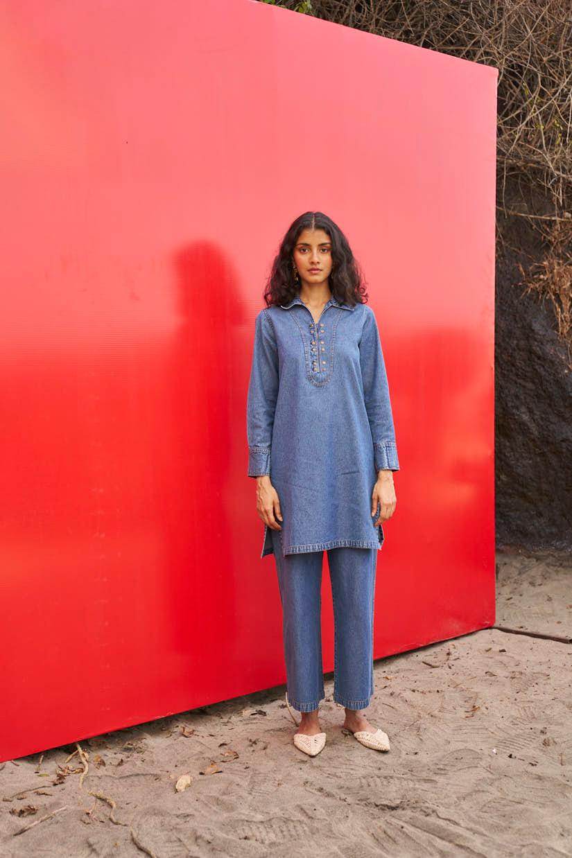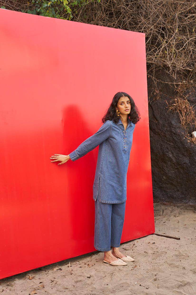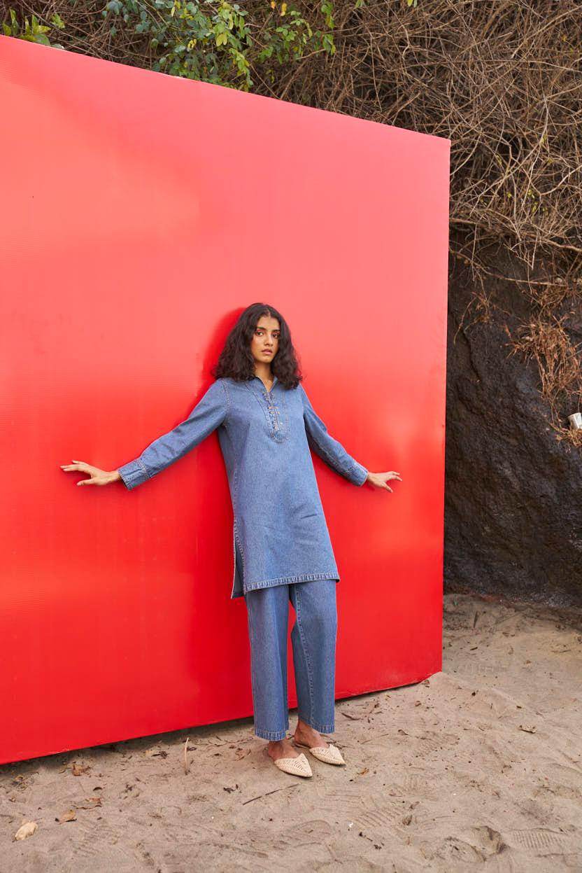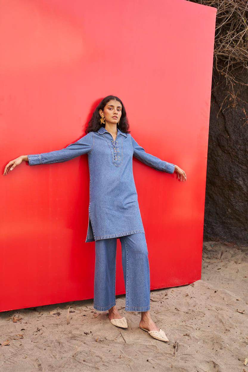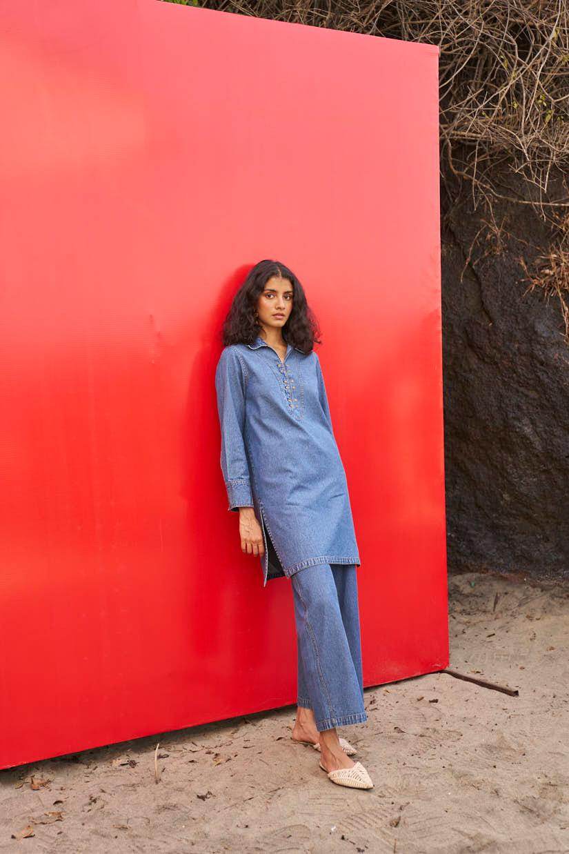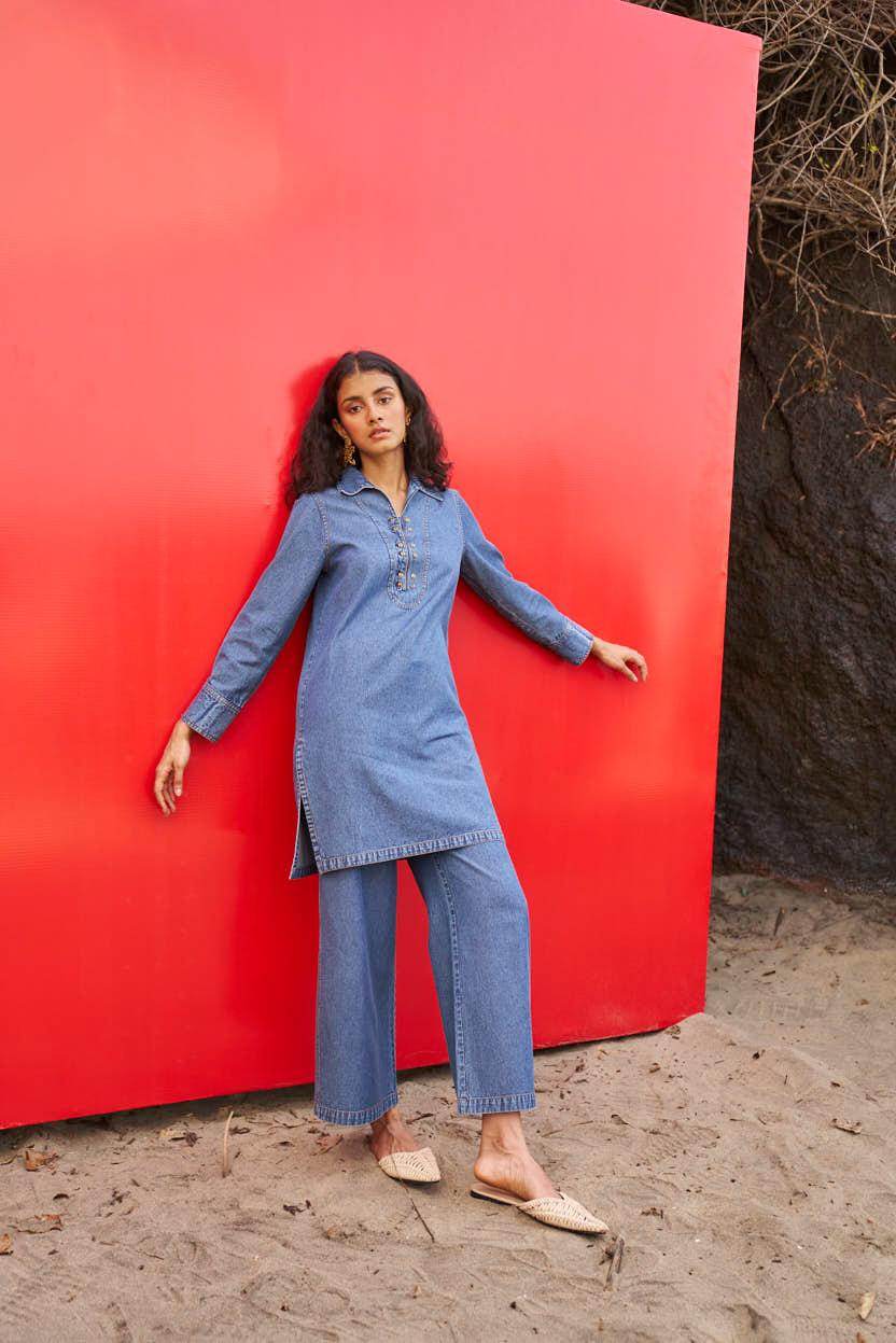 WASHED DENIM LONG TOP - dash and dot dash and dot