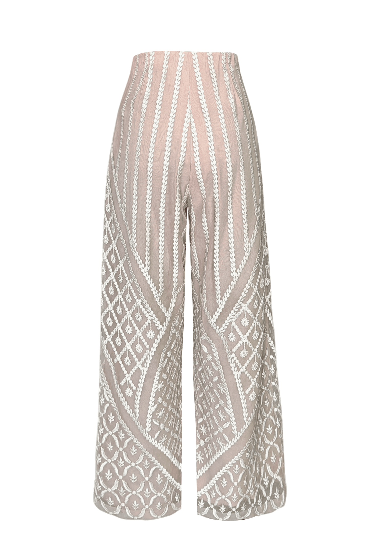 WHITE ON NUDE EMBROIDERED PANT