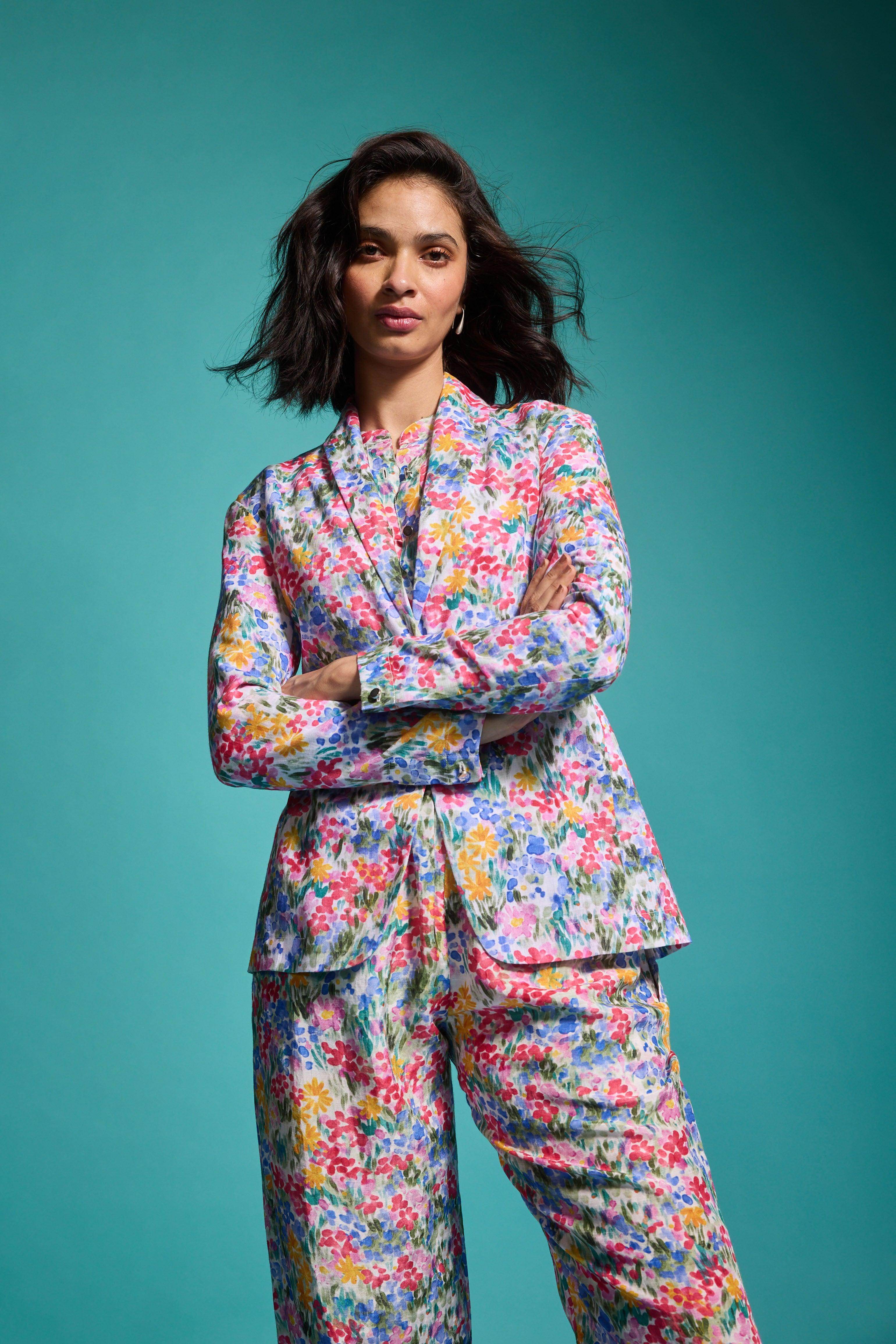 FLORAL PRINTED LINEN BLAZER - dash and dot dash and dot