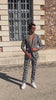 Blazer jacket in ikkat-inspired patterns in jacquard fabric. Lapels and pockets at the front. Paired with matching pants. Pockets in the side and back. Zip closure at the front, belt loops.