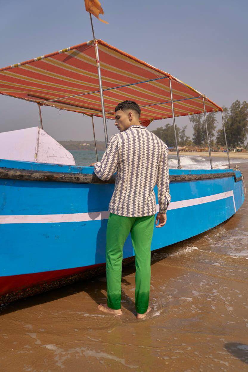 Relaxed fit cotton twill pant. Semi elasticated at the waist with a button and zip closure in the front. Pockets in the sides and back. Turn up cuff detail at the hem.
