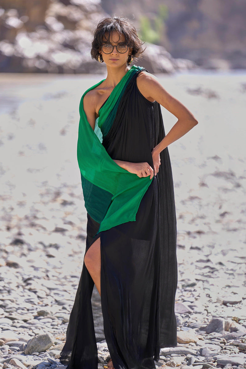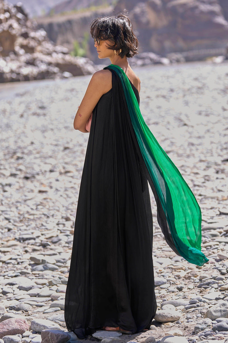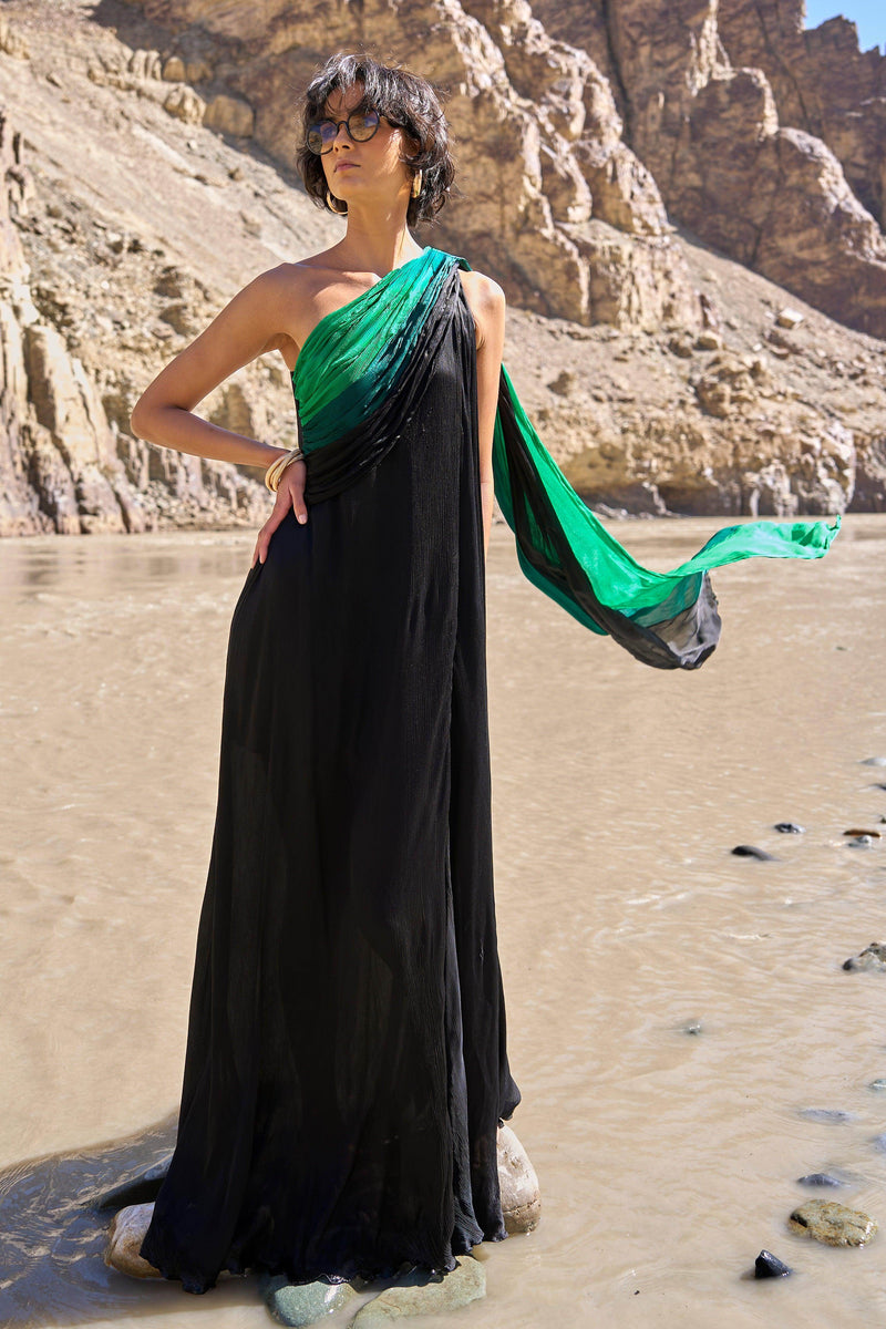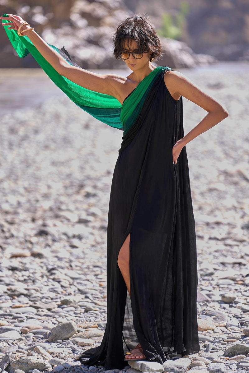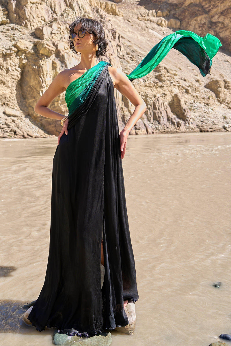 ONE-SHOULDER LACE CAPE WITH CUTOWORK & PANT SET
