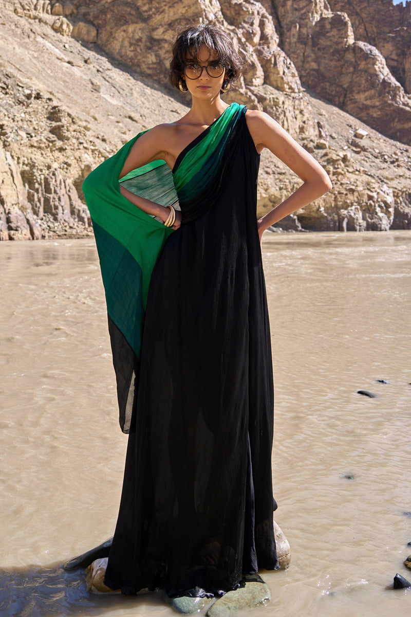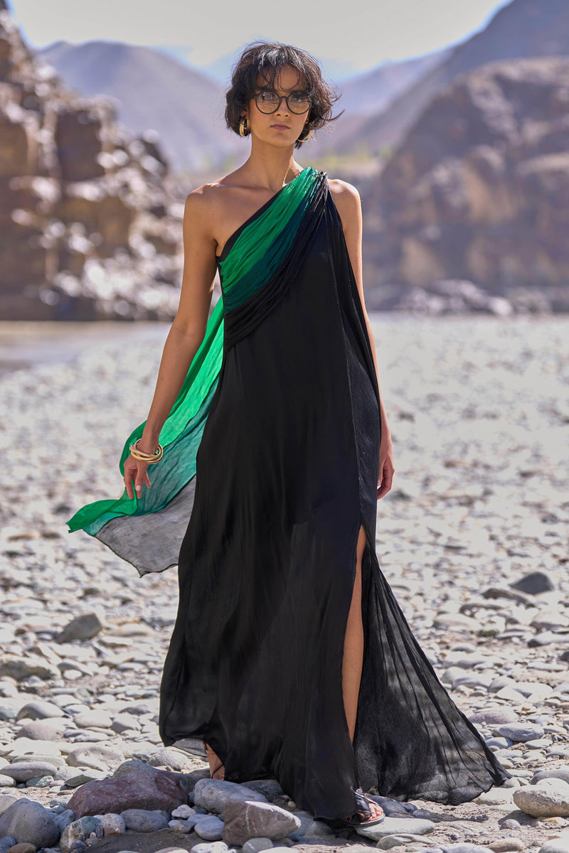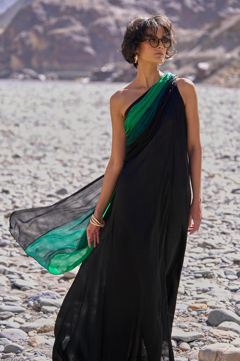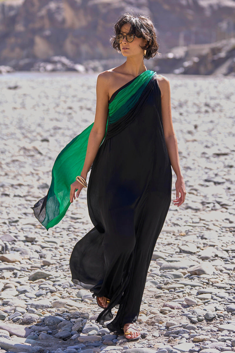 ONE-SHOULDER LACE CAPE WITH CUTOWORK & PANT SET