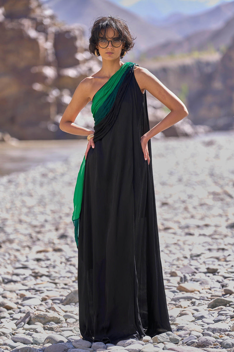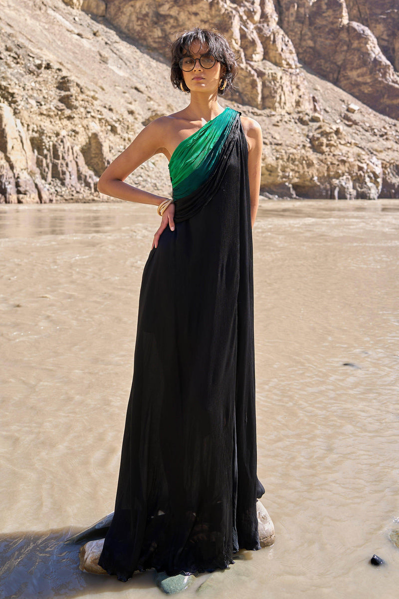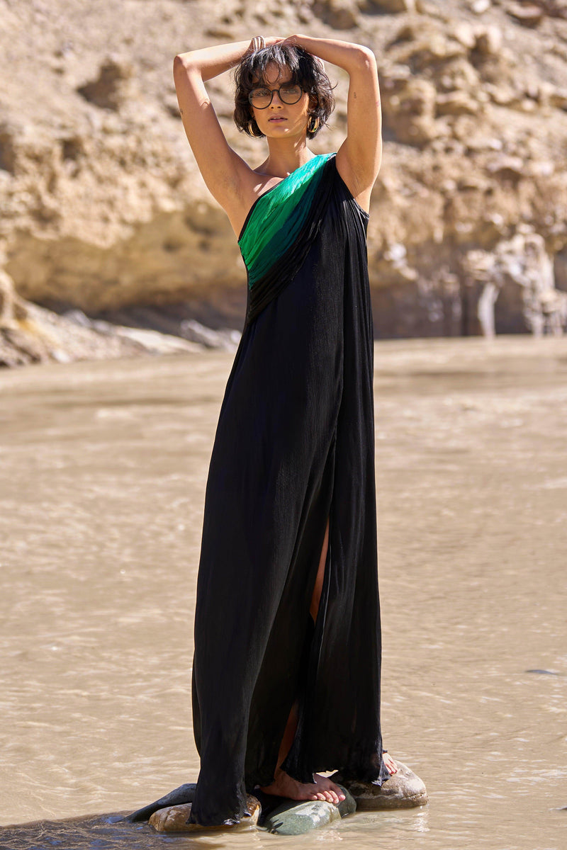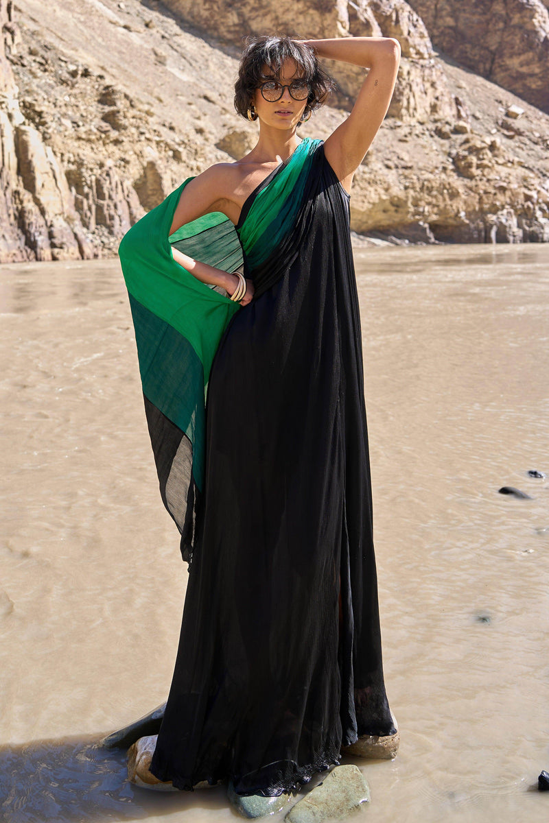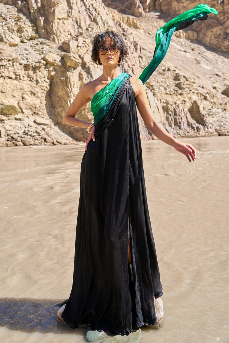 ONE-SHOULDER LACE CAPE WITH CUTOWORK & PANT SET