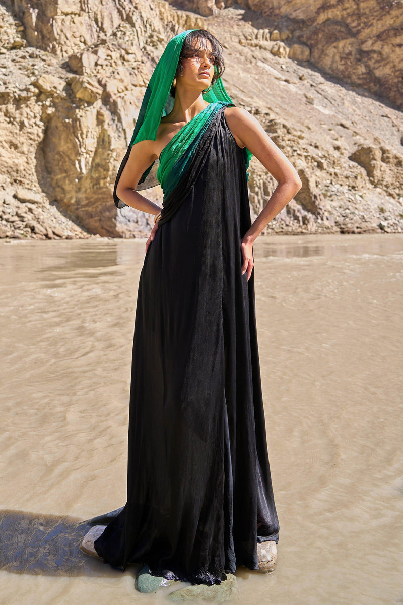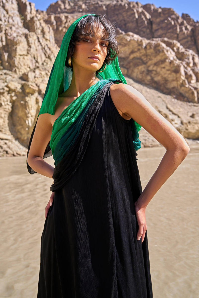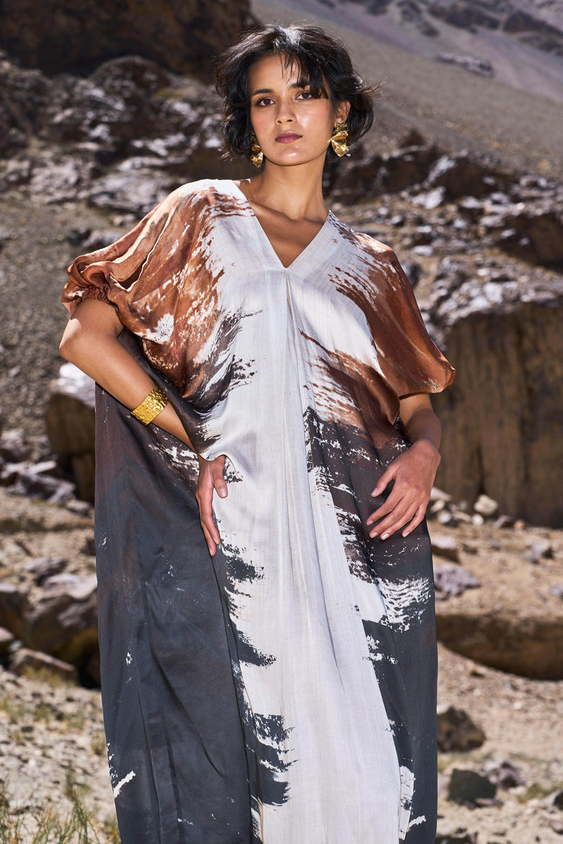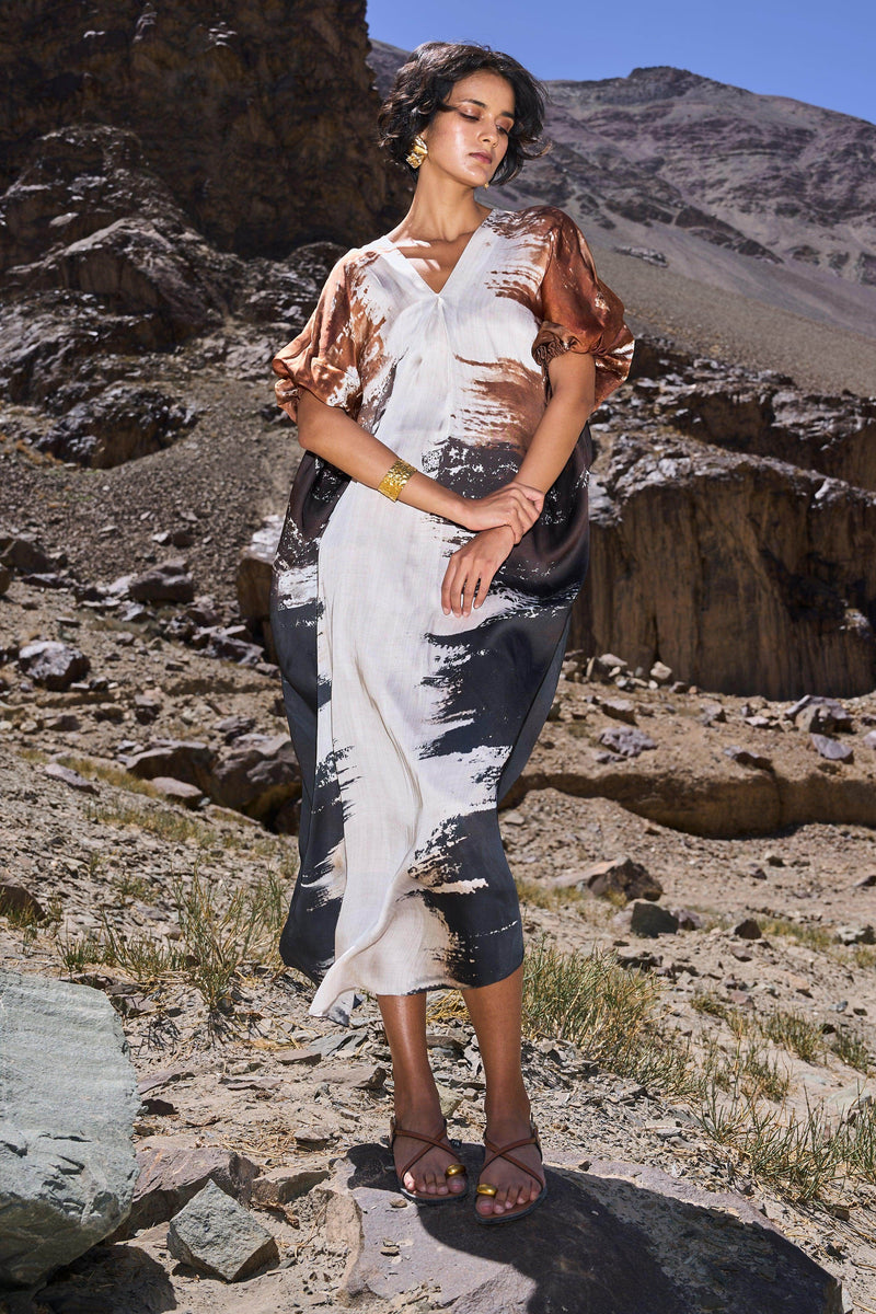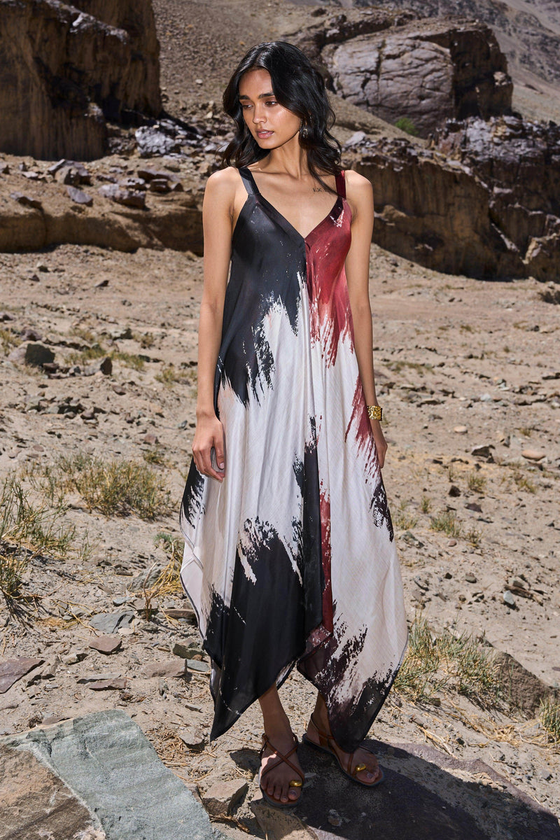 ABSTRACT PRINTED SHIRT AND DRAPE SKIRT