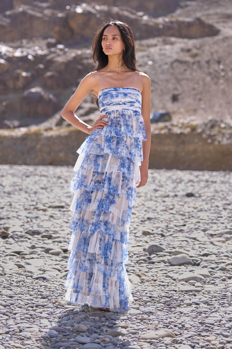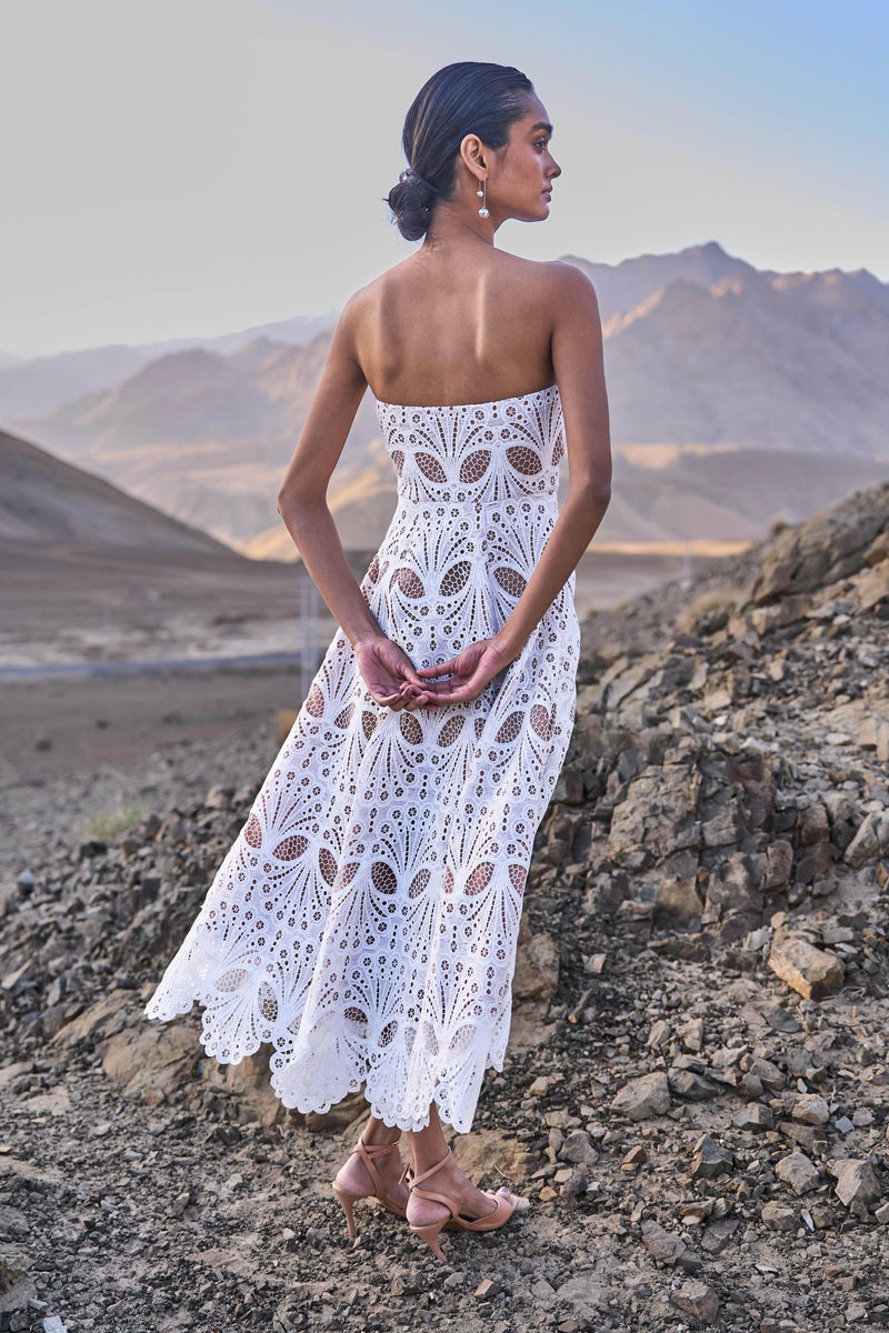 FLORAL LACE APPLIQUÉ BANDEAU & MAXI SKIRT SET
