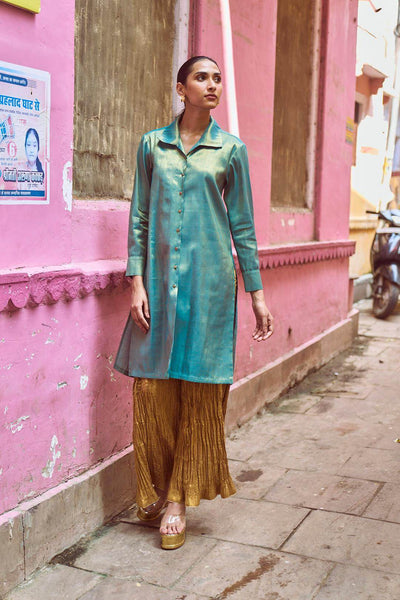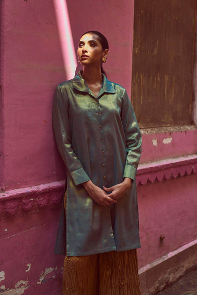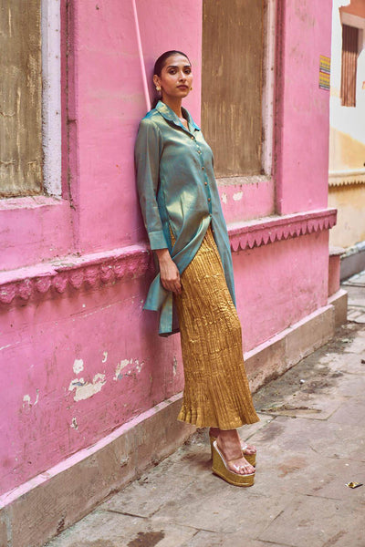 ABSTRACT PRINTED SHIRT AND DRAPE SKIRT