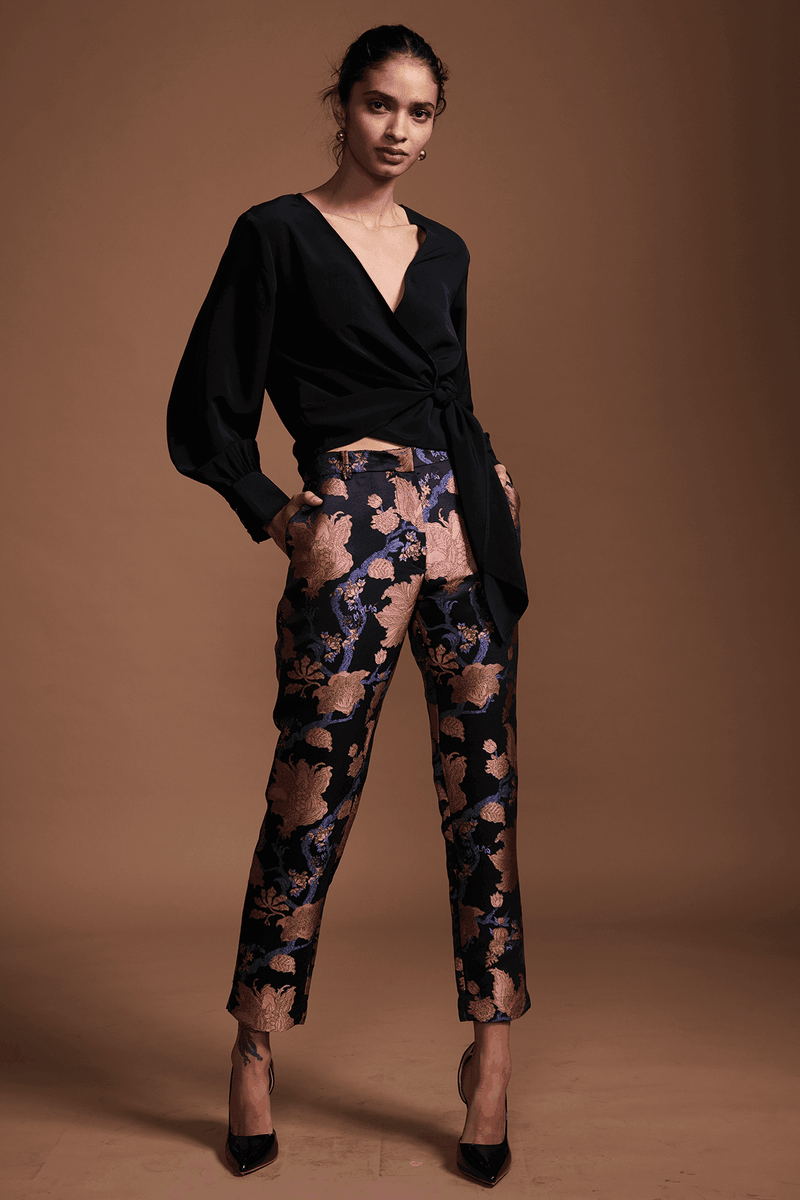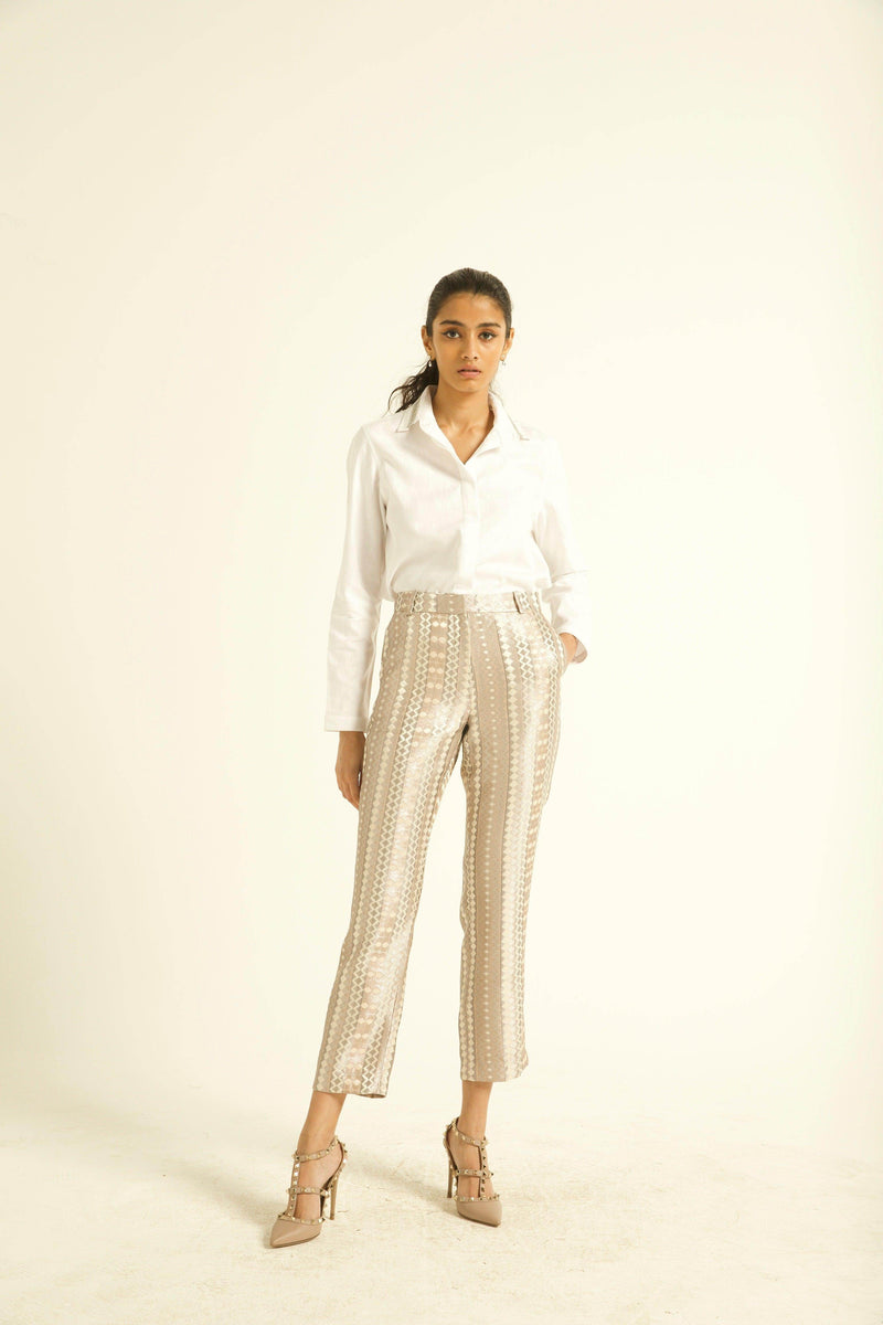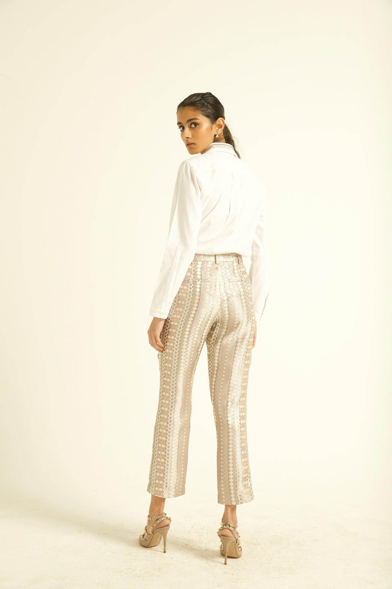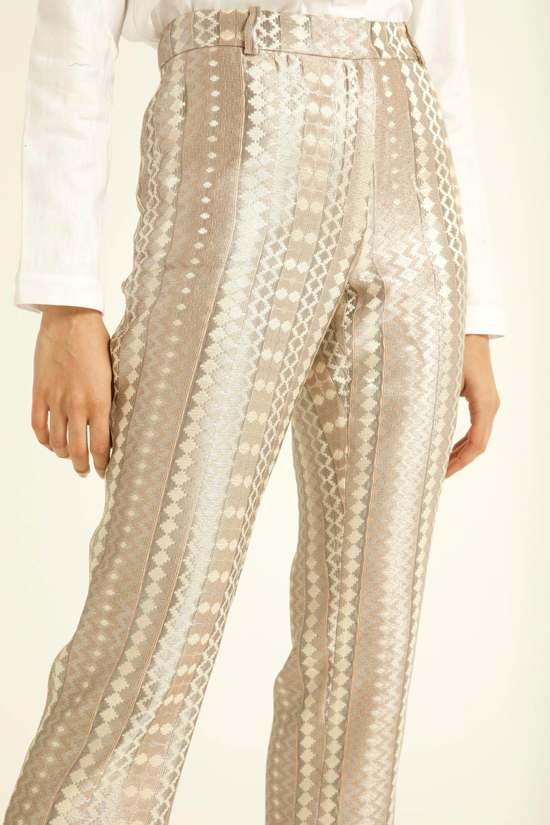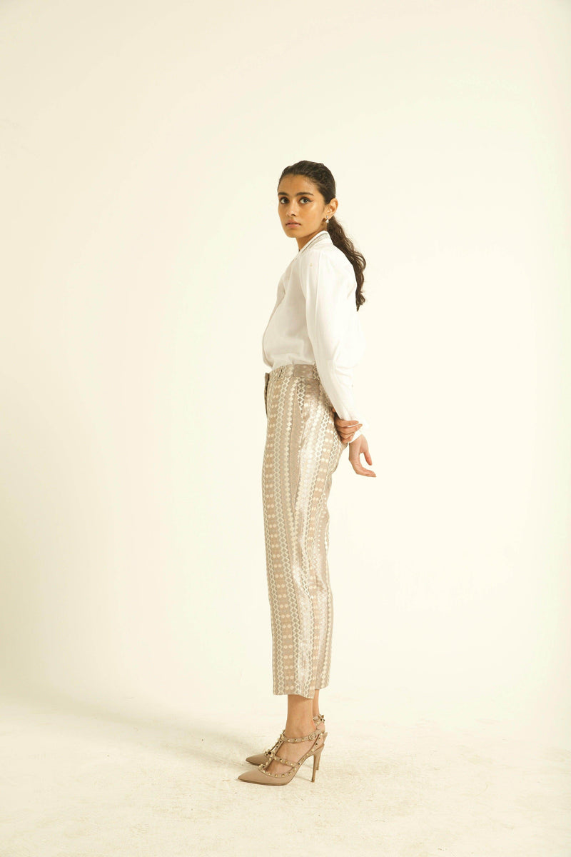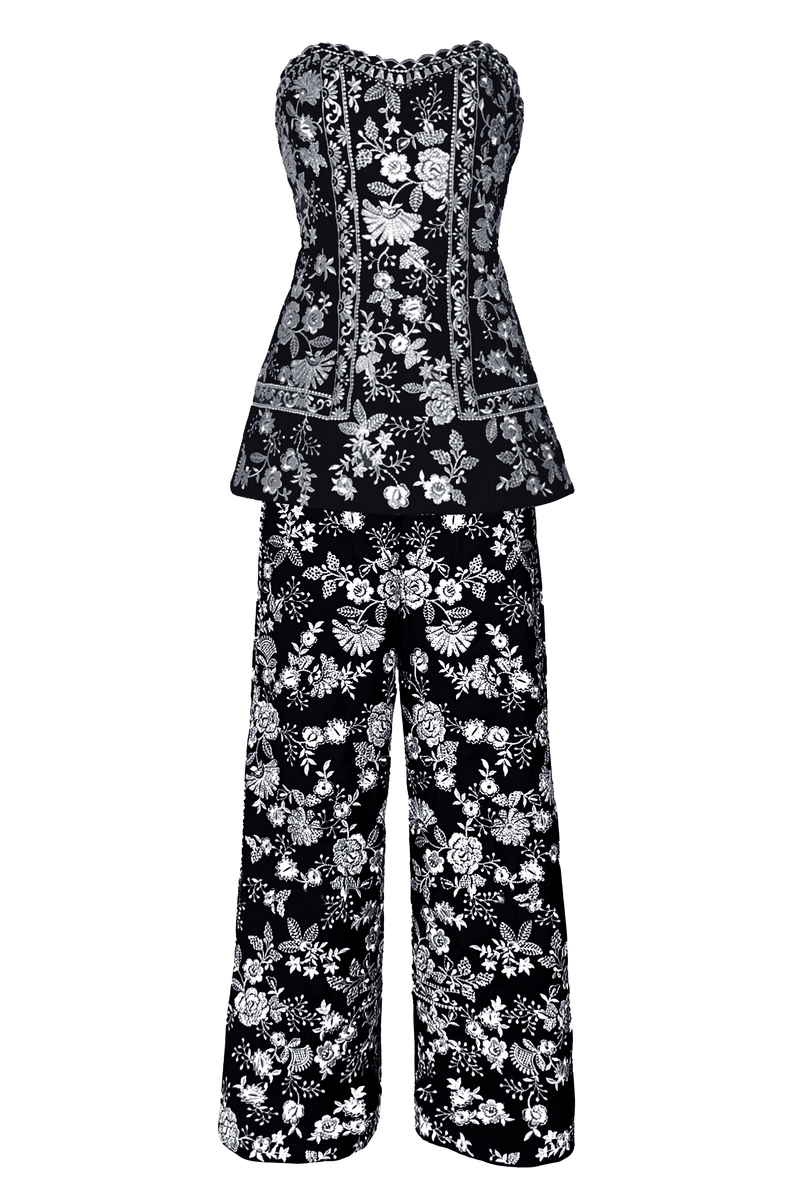 METALLIC EMBROIDERED WIDE LEGGED PANT