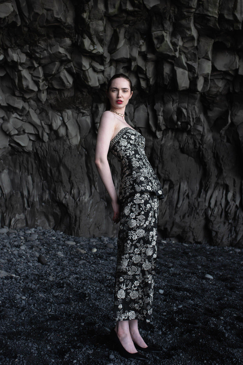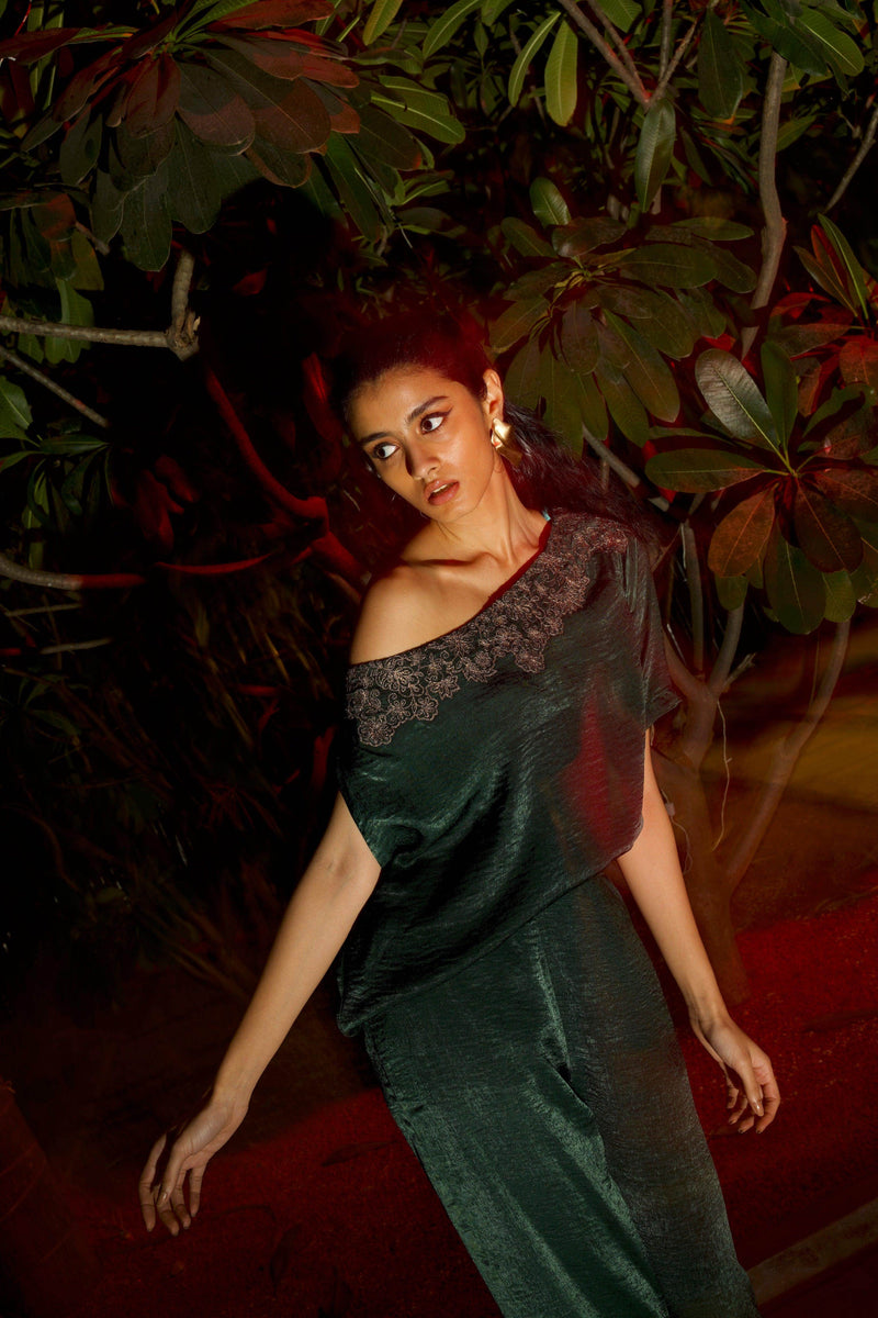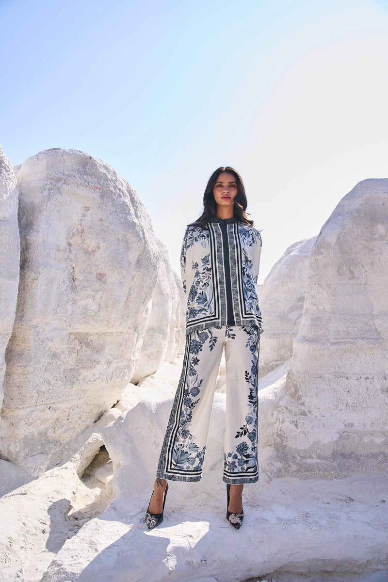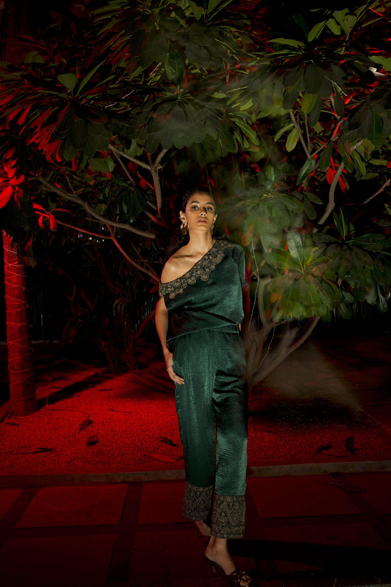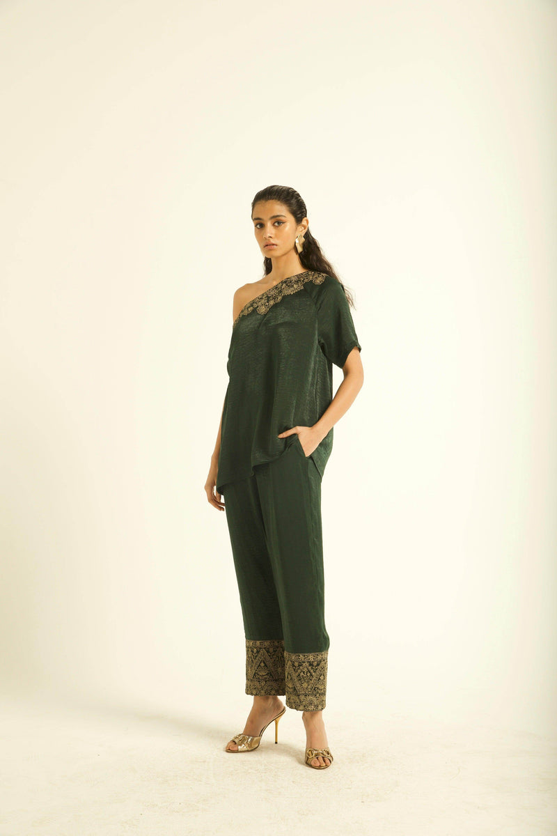 METALLIC EMBROIDERED WIDE LEGGED PANT