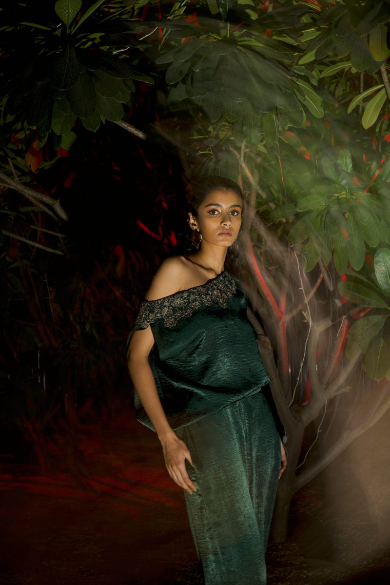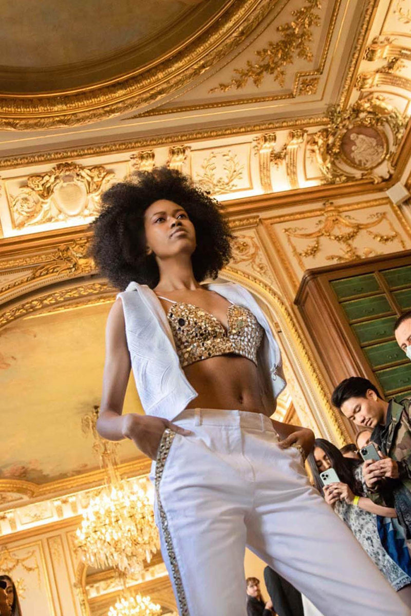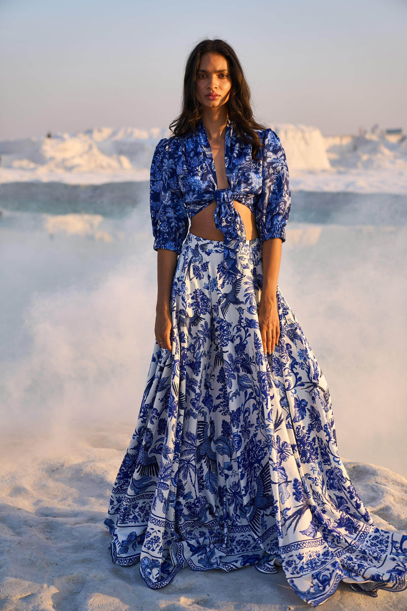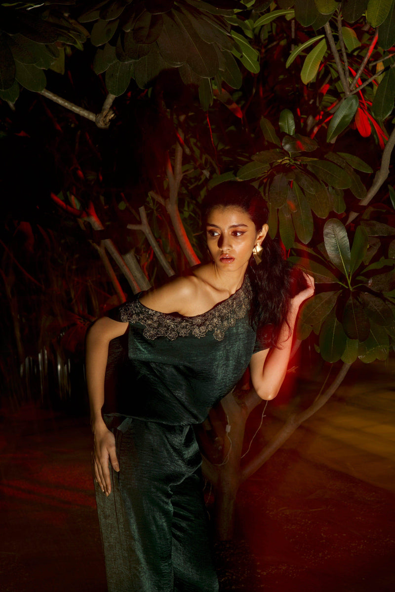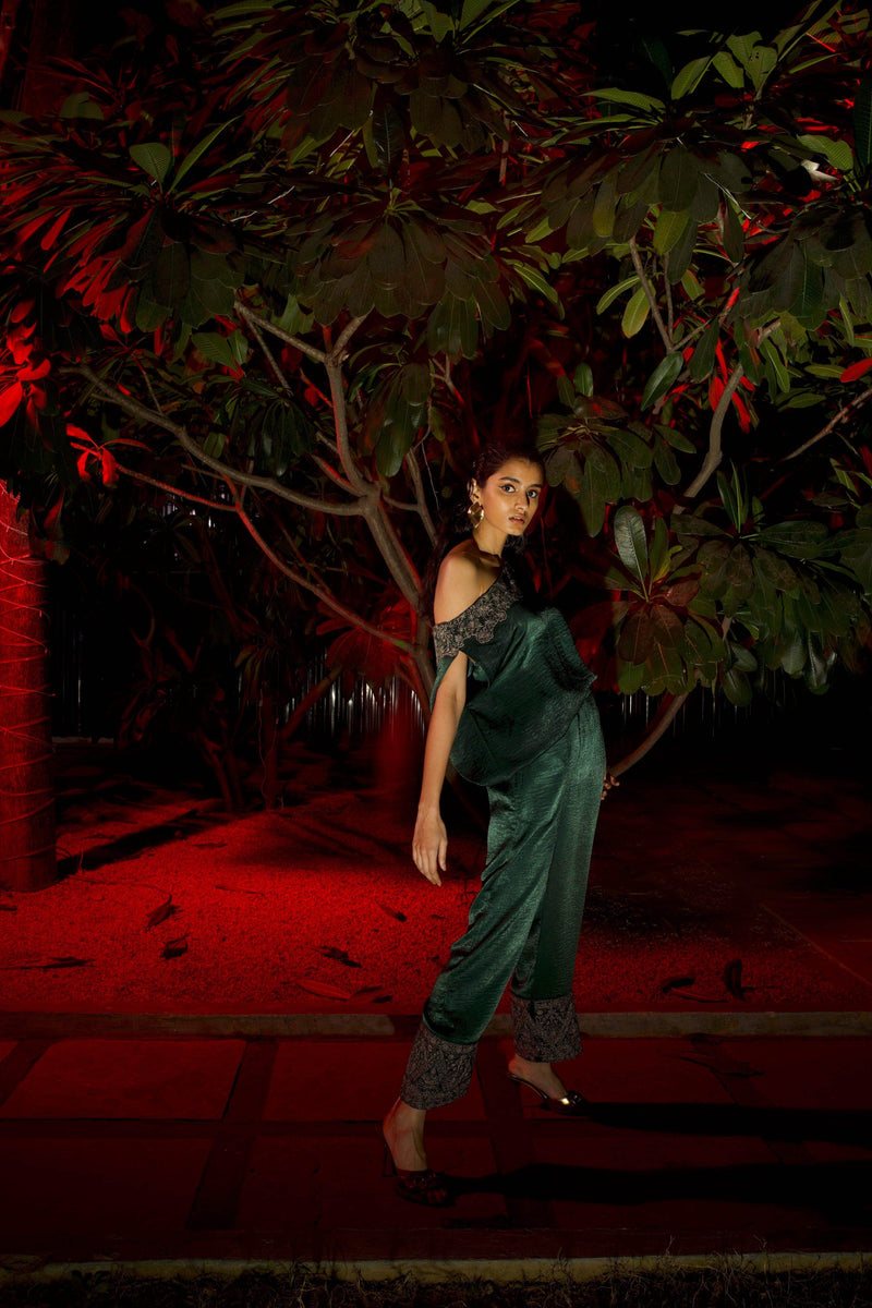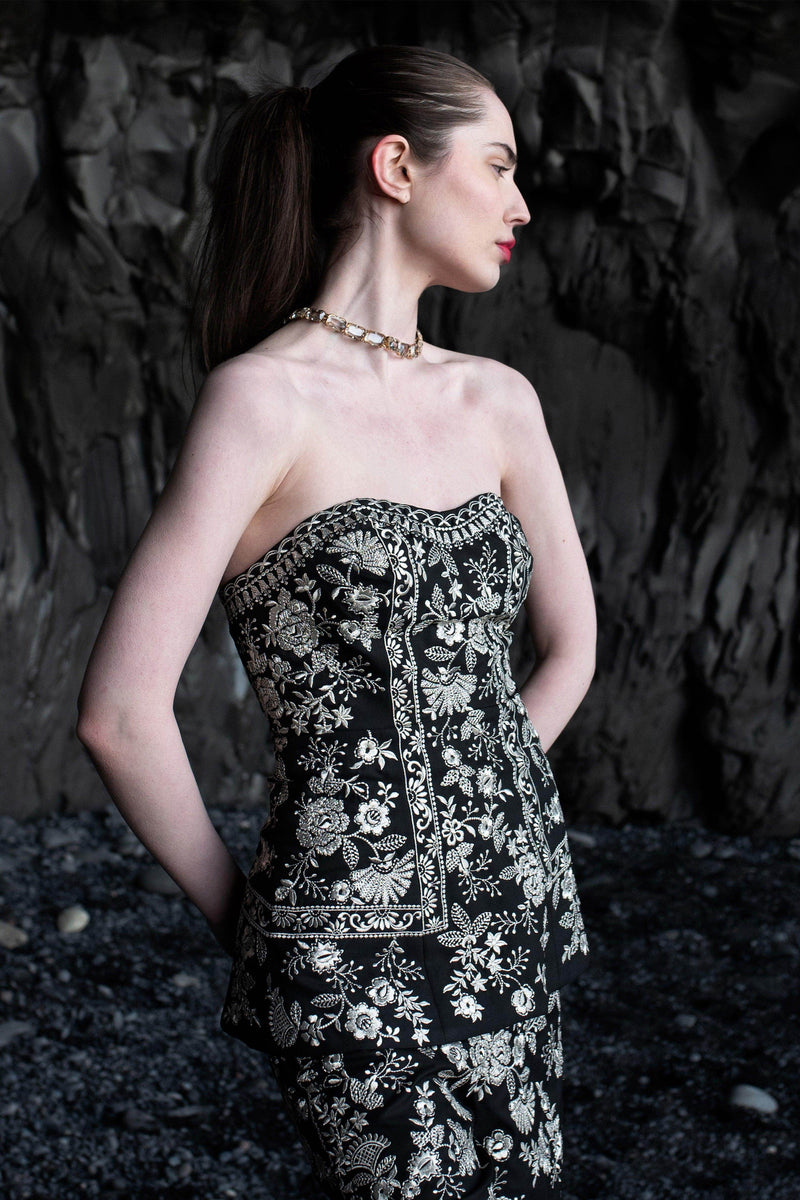 METALLIC EMBROIDERED WIDE LEGGED PANT