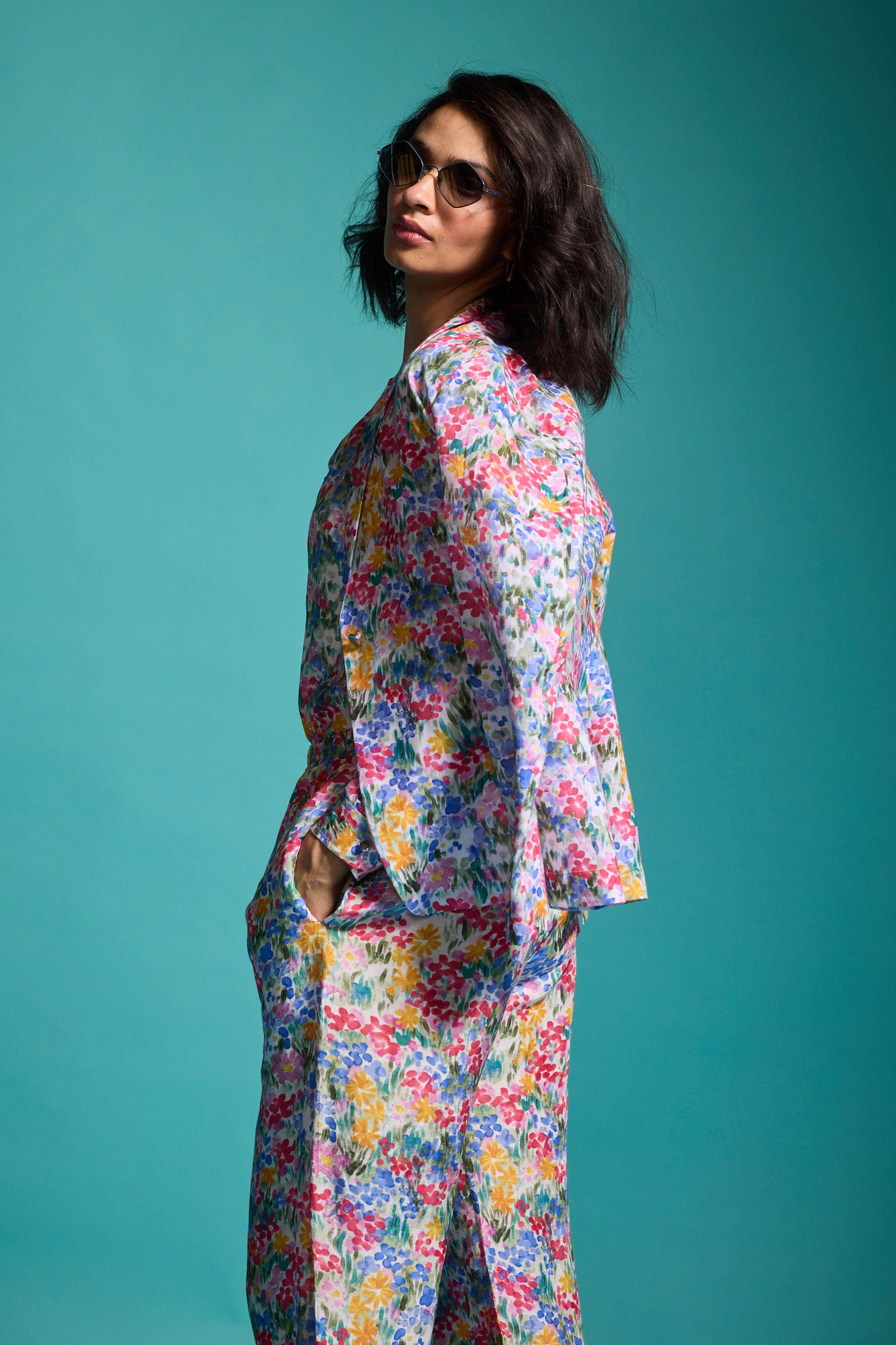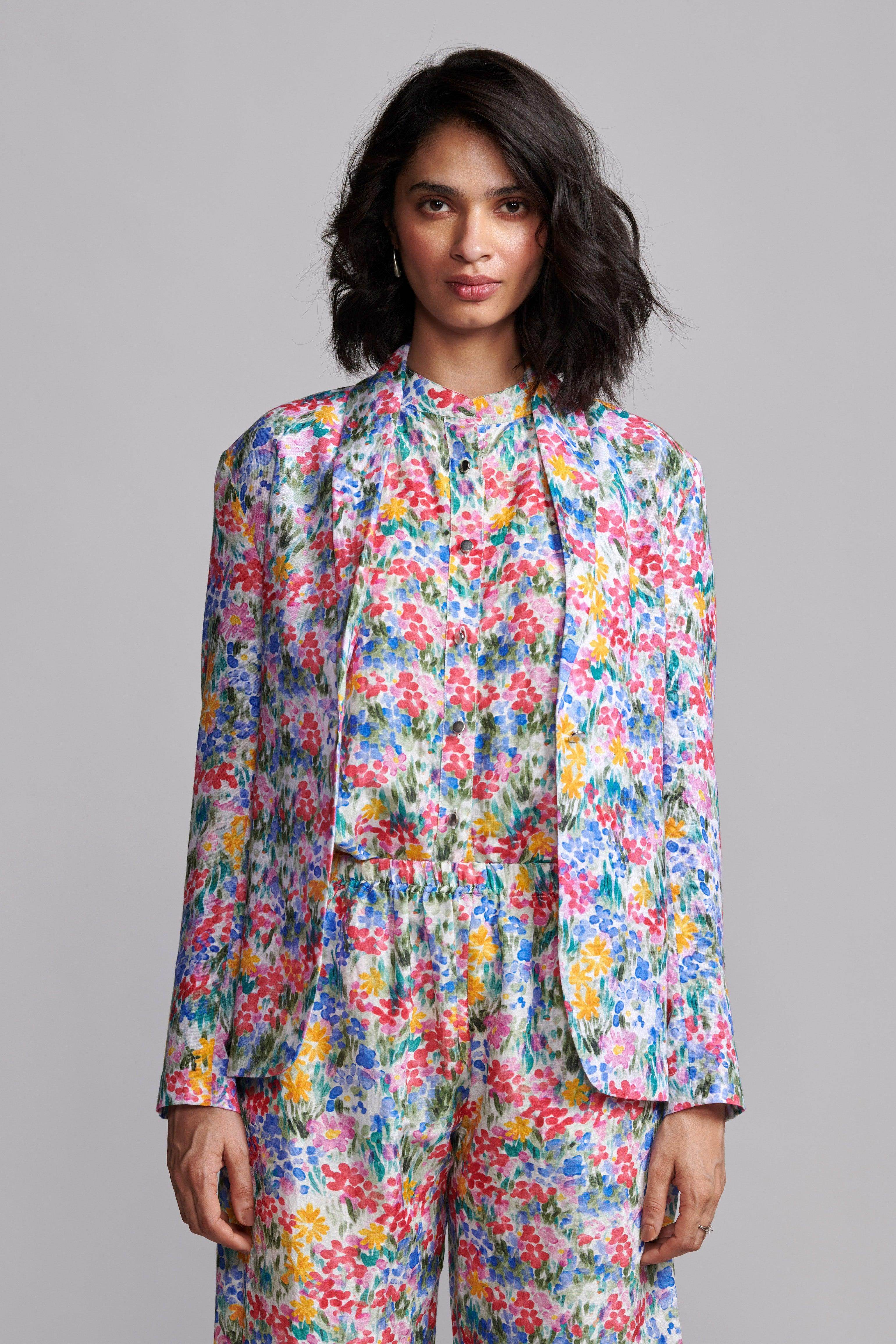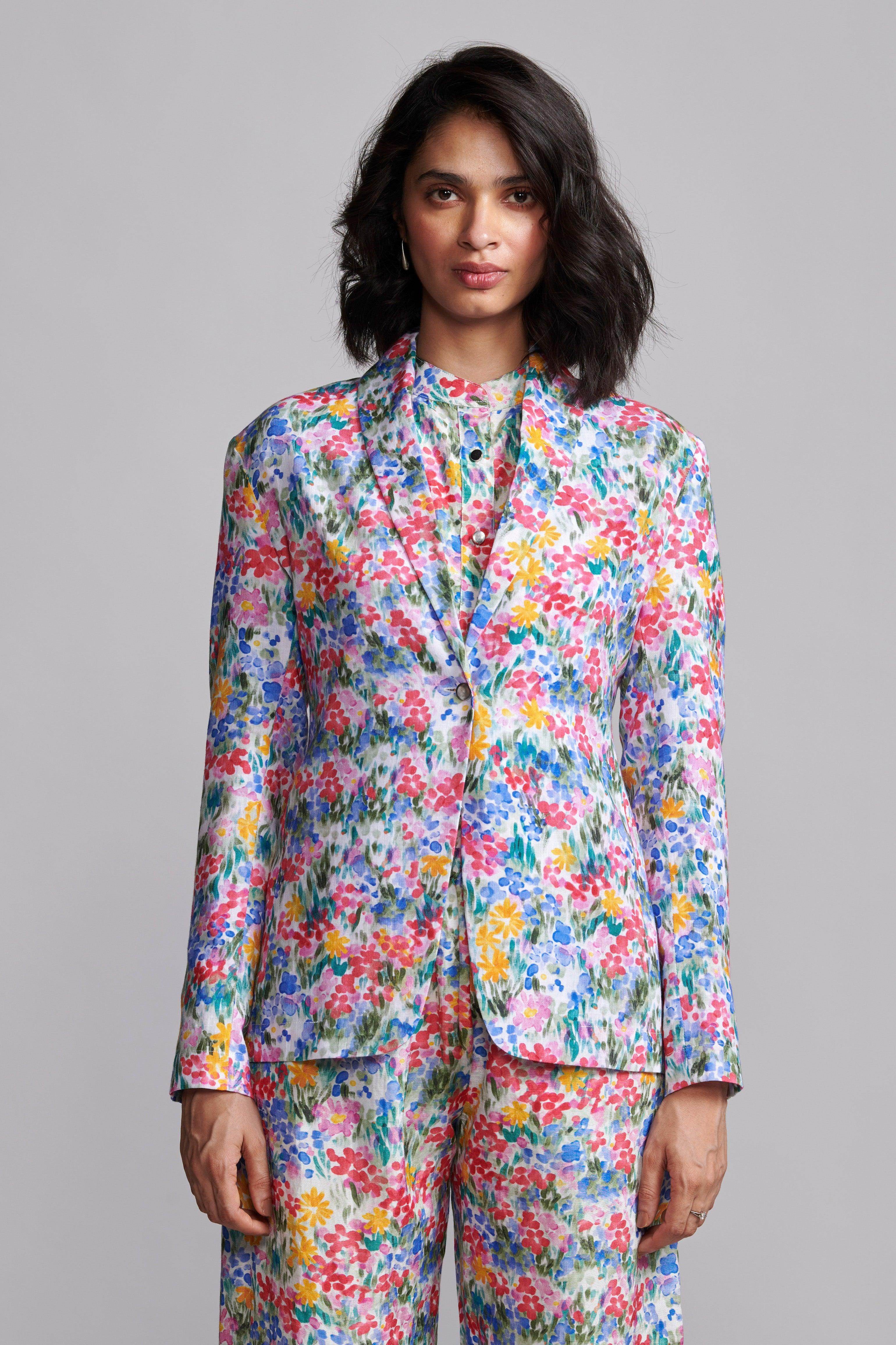 FLORAL PRINTED LINEN BLAZER - dash and dot dash and dot