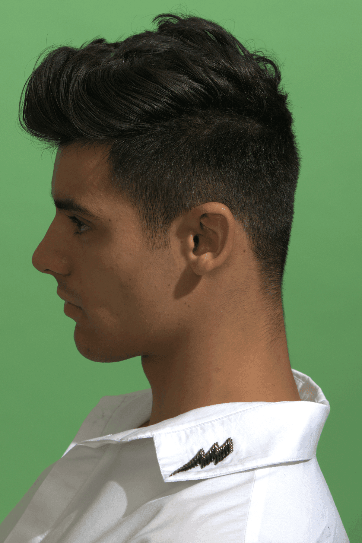White poplin full sleeve shirt with hand zardozi applied lightning motifs on the collar.