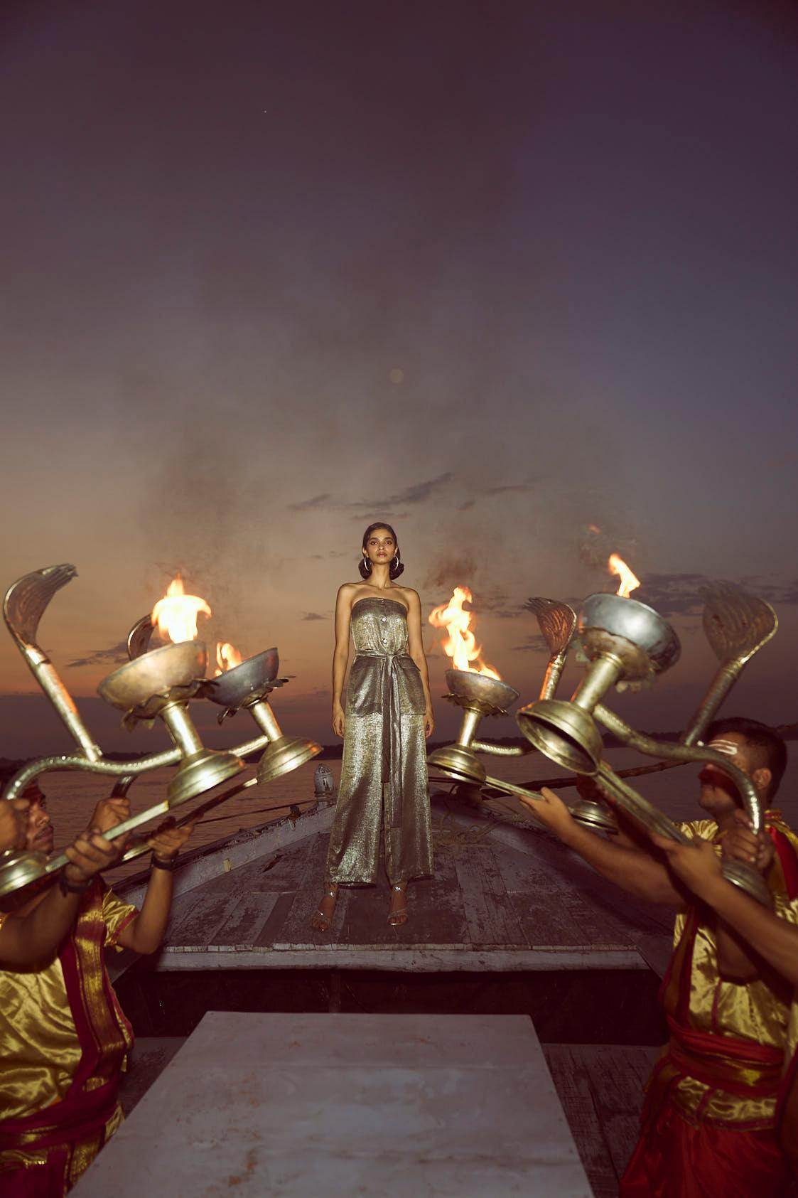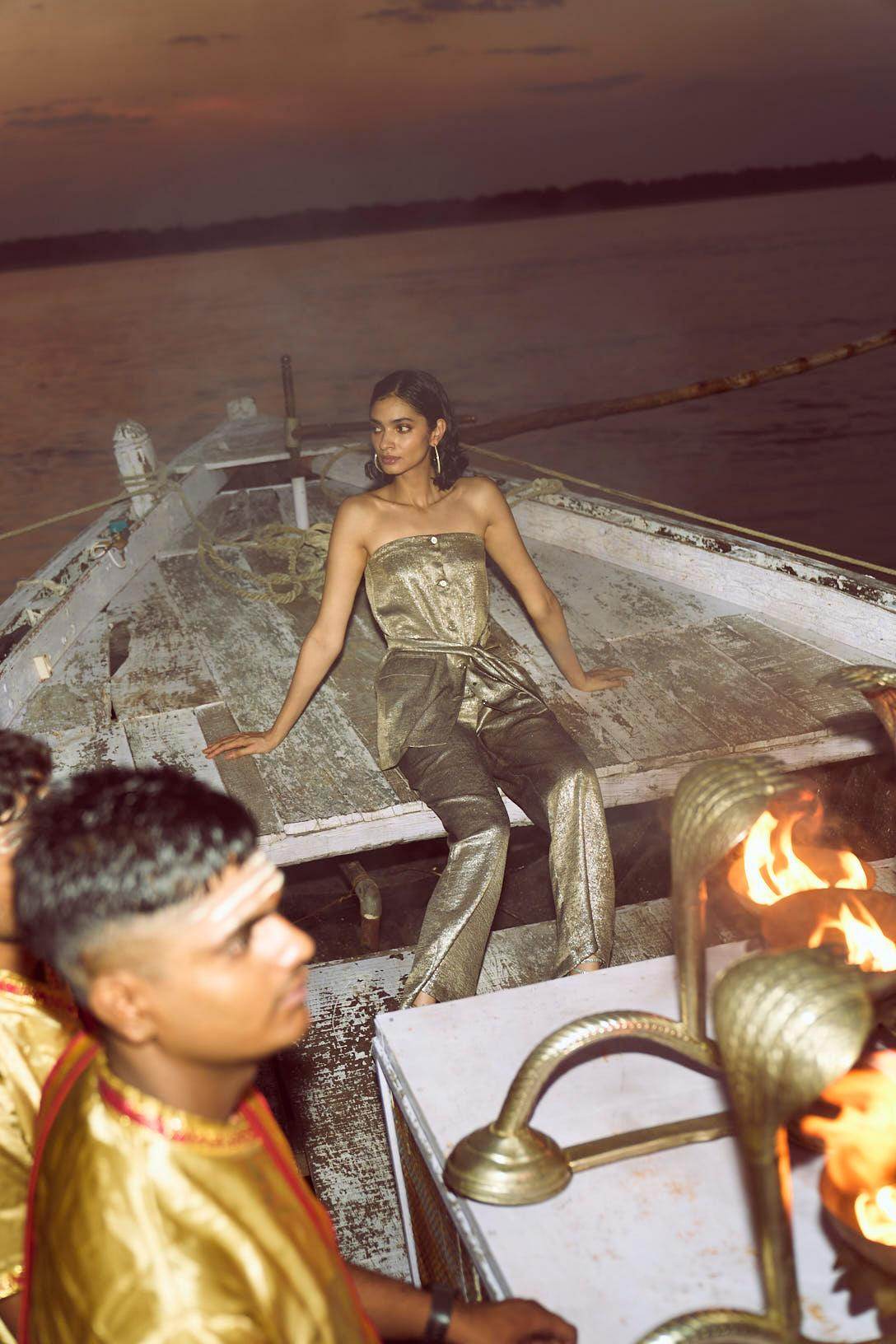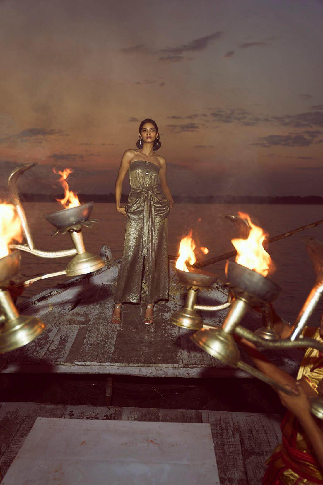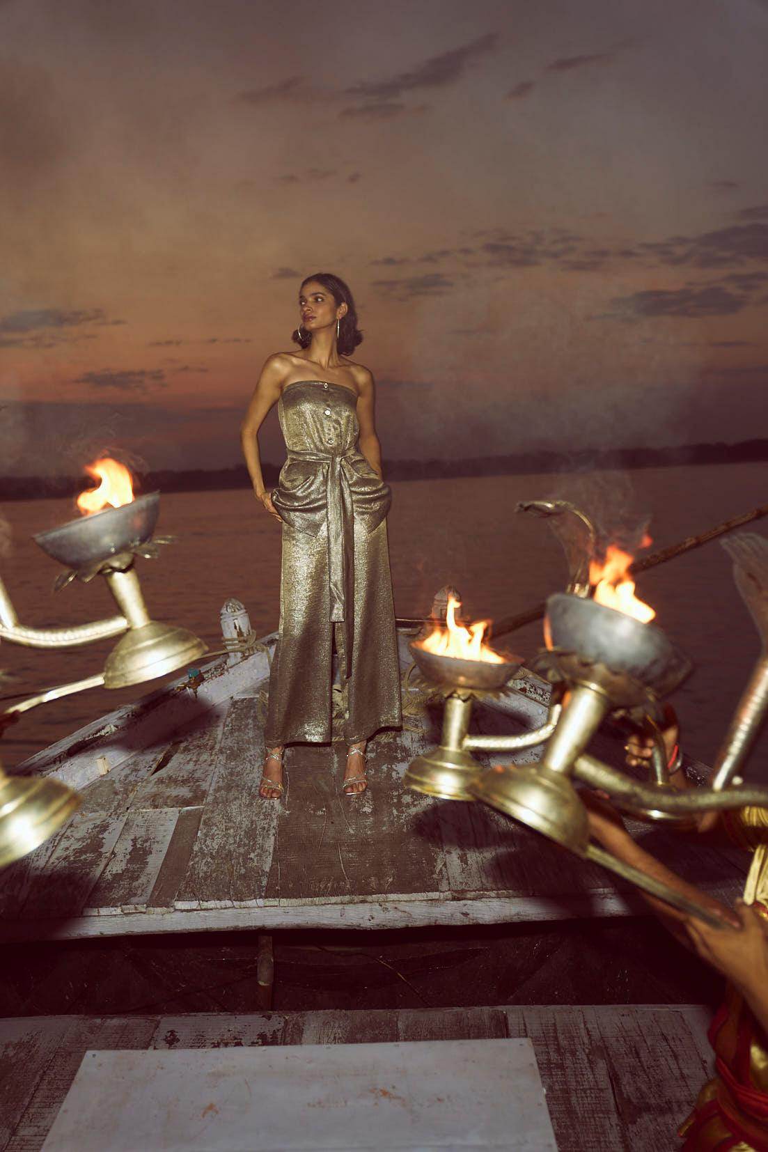 Fuchsia boxy longline shirt with placed tonal and red floral embroidery across the shoulders and sleeves. Shirt collar. Concealed button placket. Paired with pants with a similar embroidery detailing down the sides. Pockets on the side. Hook and zip closure at the front.