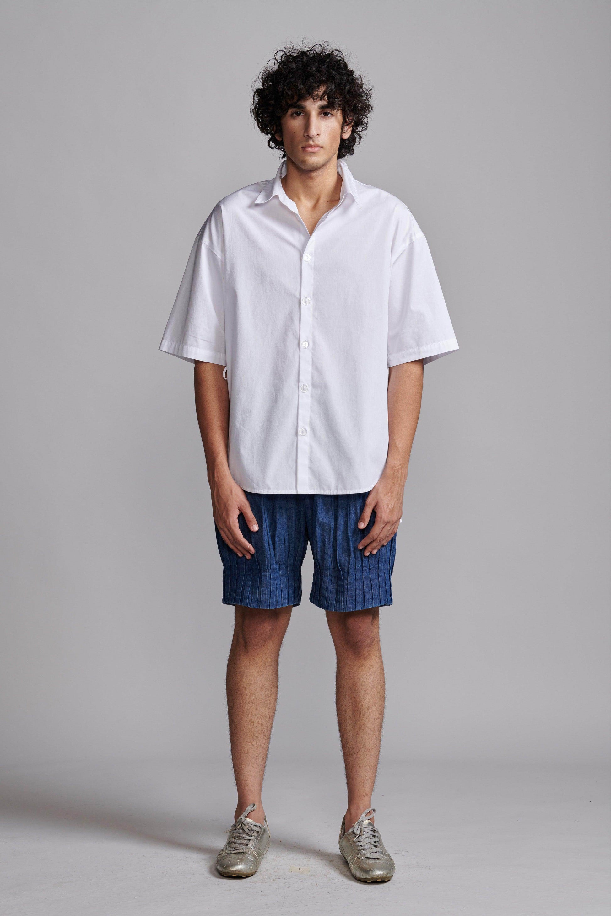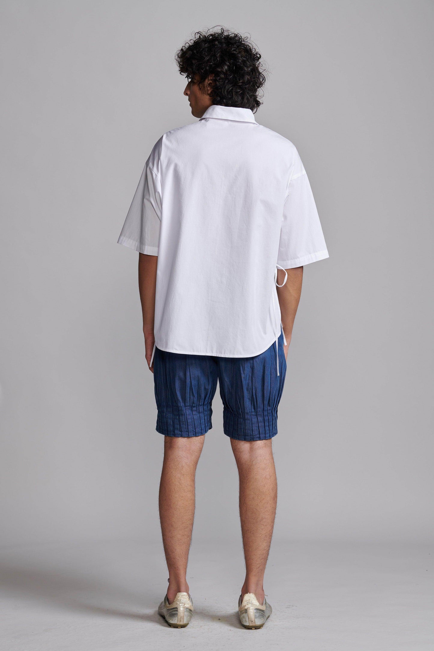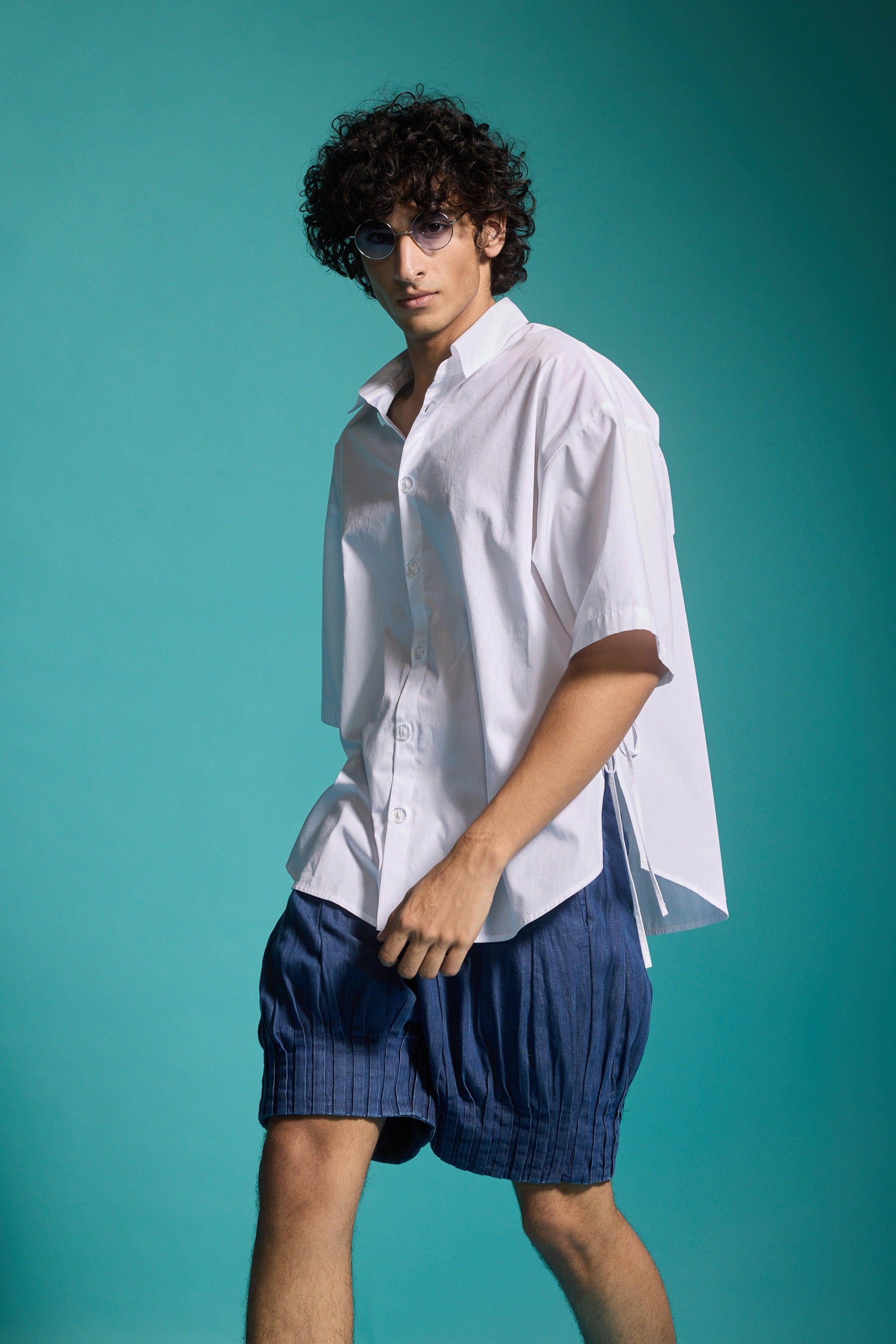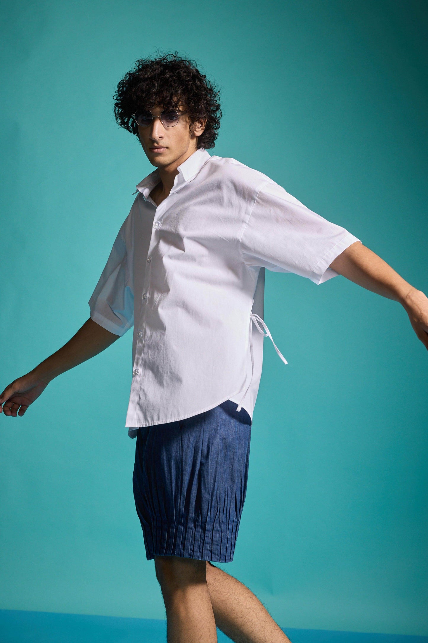 White relaxed fit poplin shirt with side slits and self-fabric knot ties. Features a button-down placket and shirt collar.