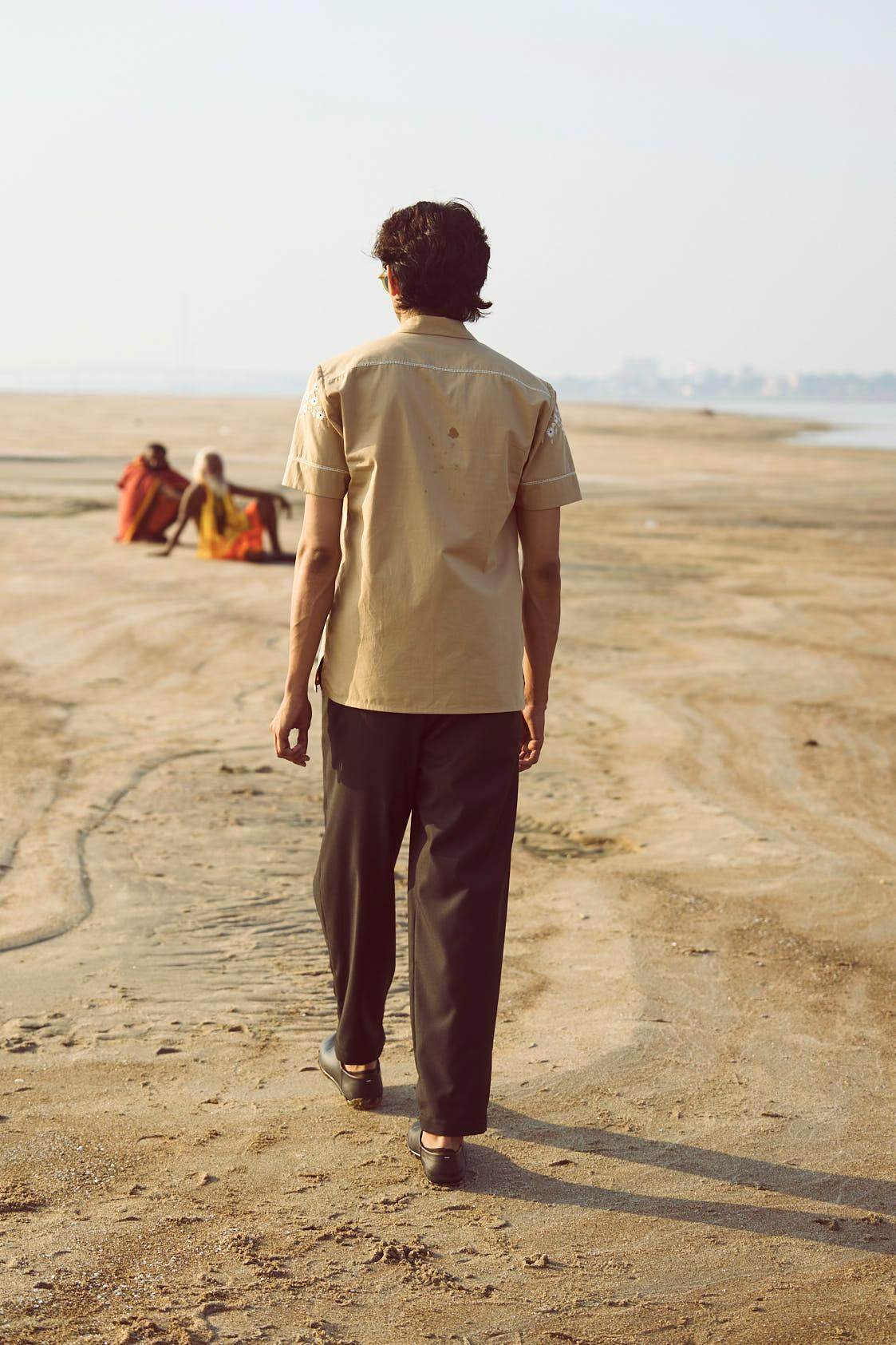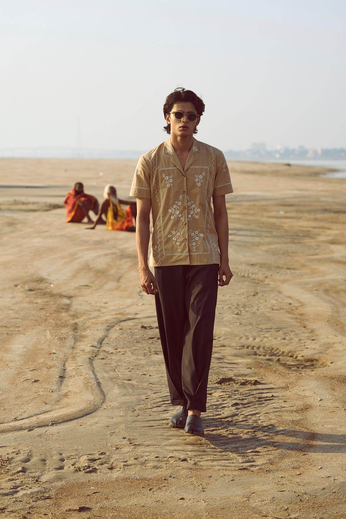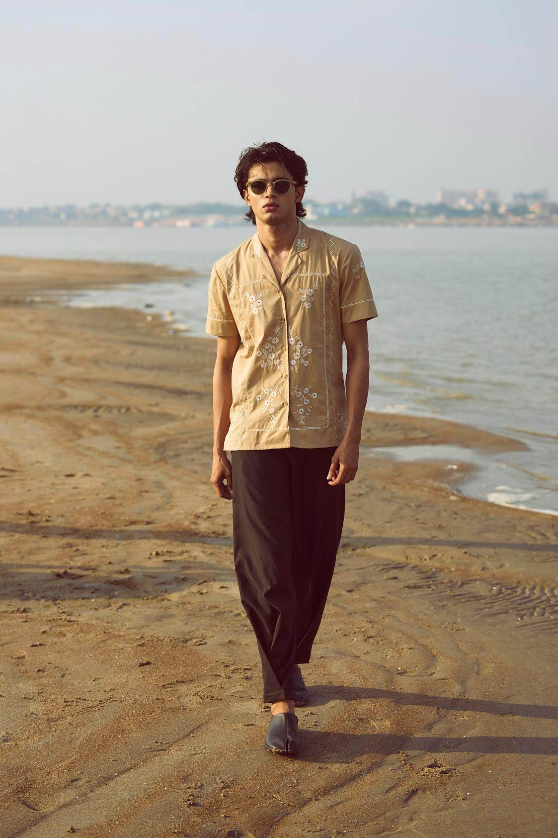 Inverted box pleats pant in all weather suiting material. Pleats are sewn at the cuffs to create an architectural shape and add volume that tapers toward the cuff. Semi-elasticated at the waist. Pockets on the side and back. Hook and eye closure. Zip fly. Relaxed fit.