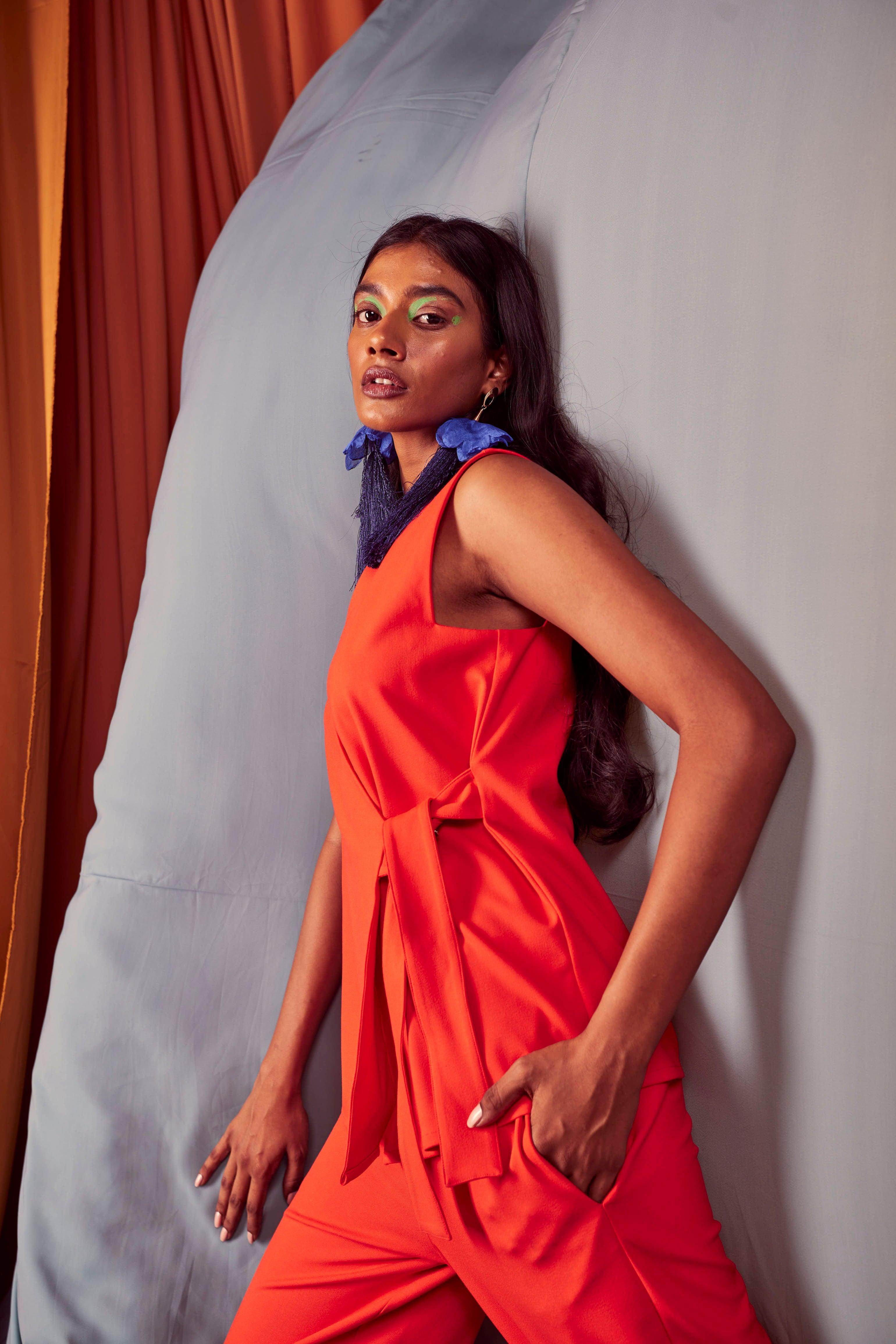 SLEEVELESS CORAL SIDE TIE SET - dash and dot dash and dot
