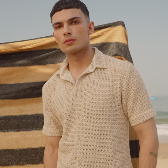 Textured knitted shorts in lace inspired knitted fabric. Fully lined with a hook/eye and zipper closure and pockets on the sides. Semi elasticated waist.