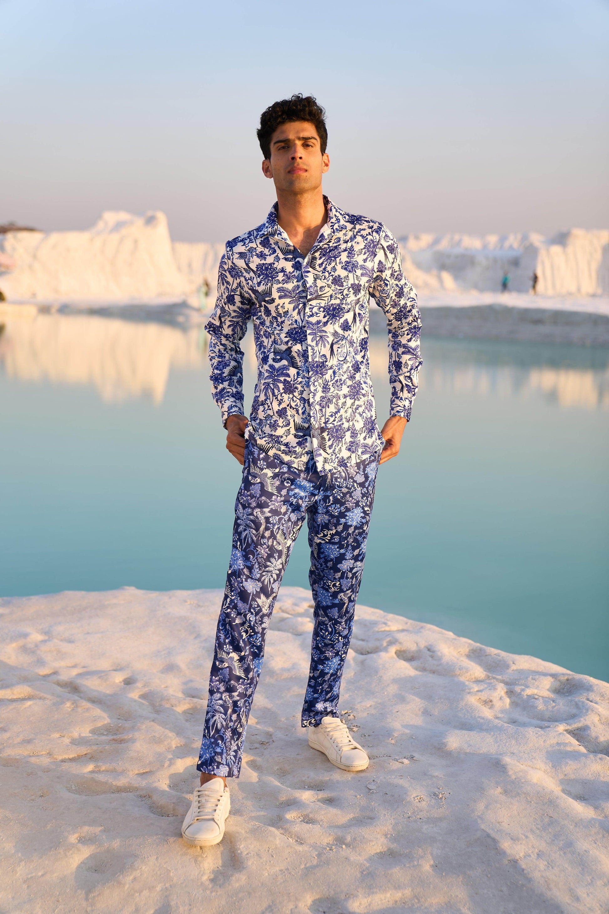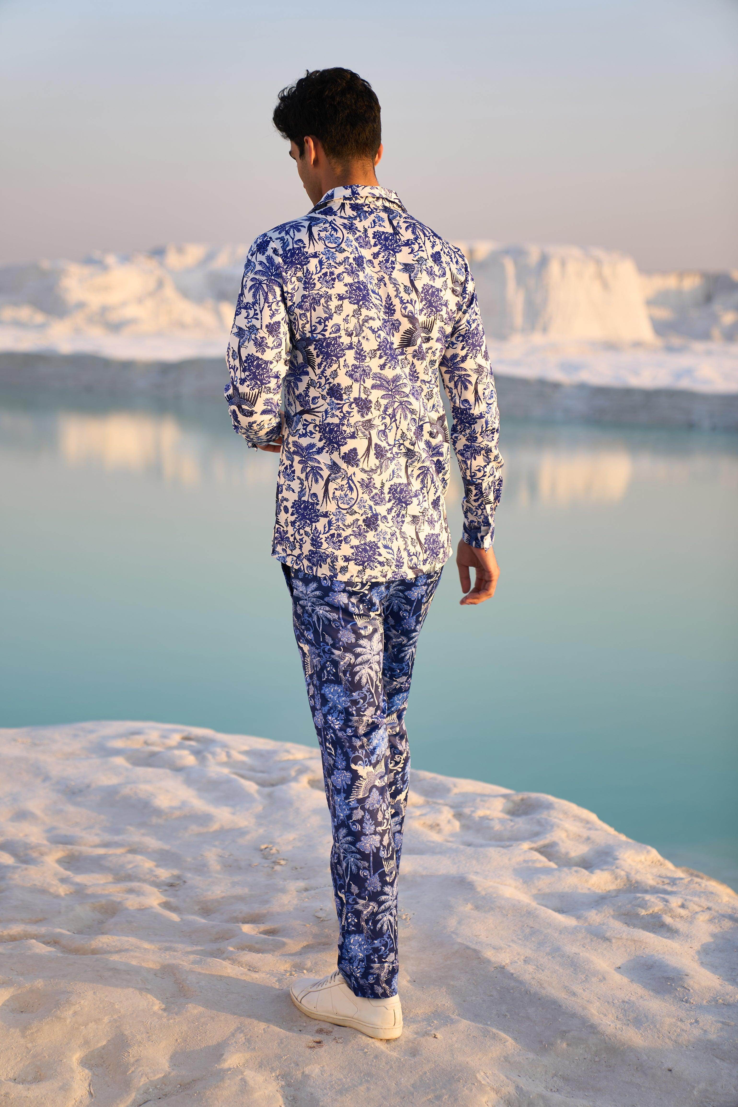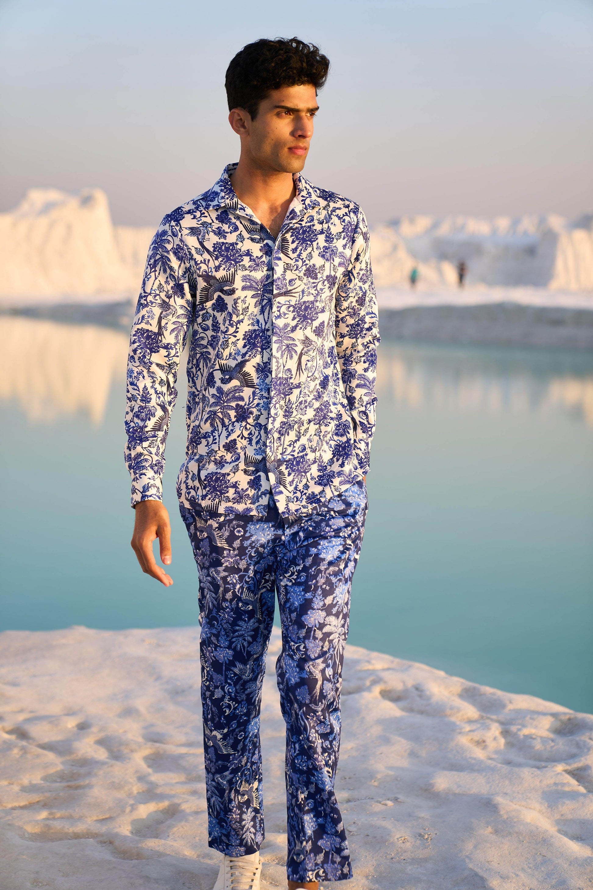 Printed full sleeve shirt inspired by porcelain hand painting in shades of blue on white. Concealed button placket, regular fit.