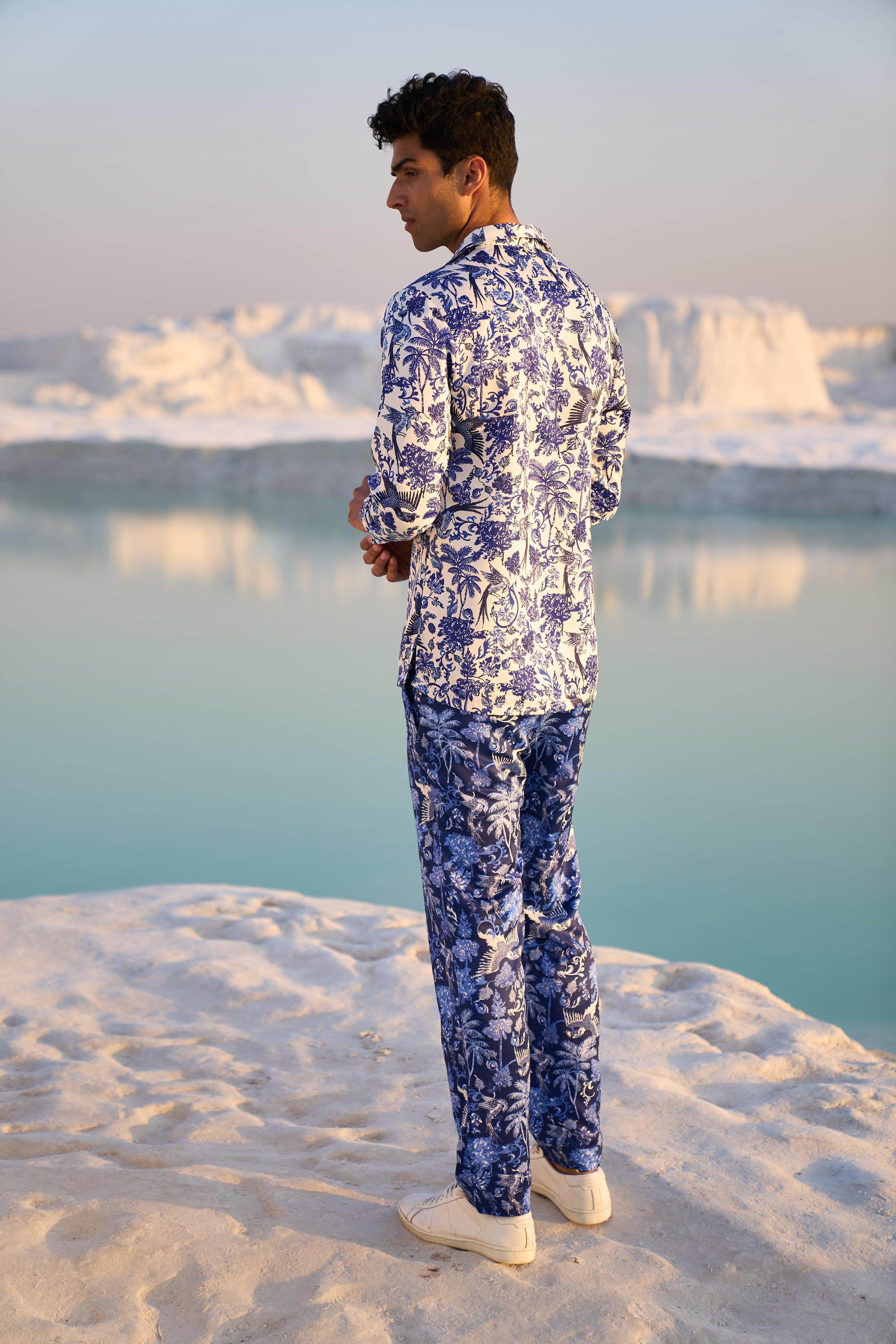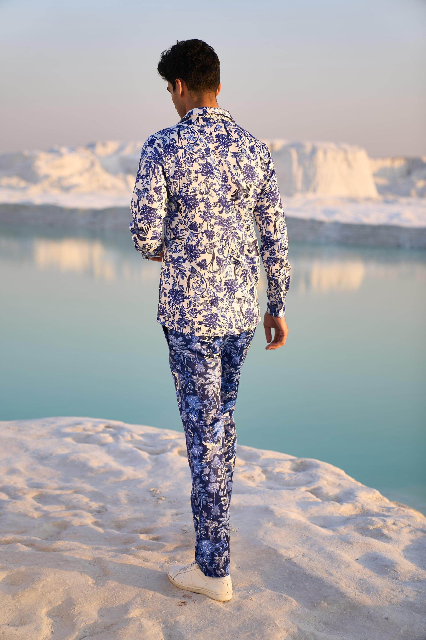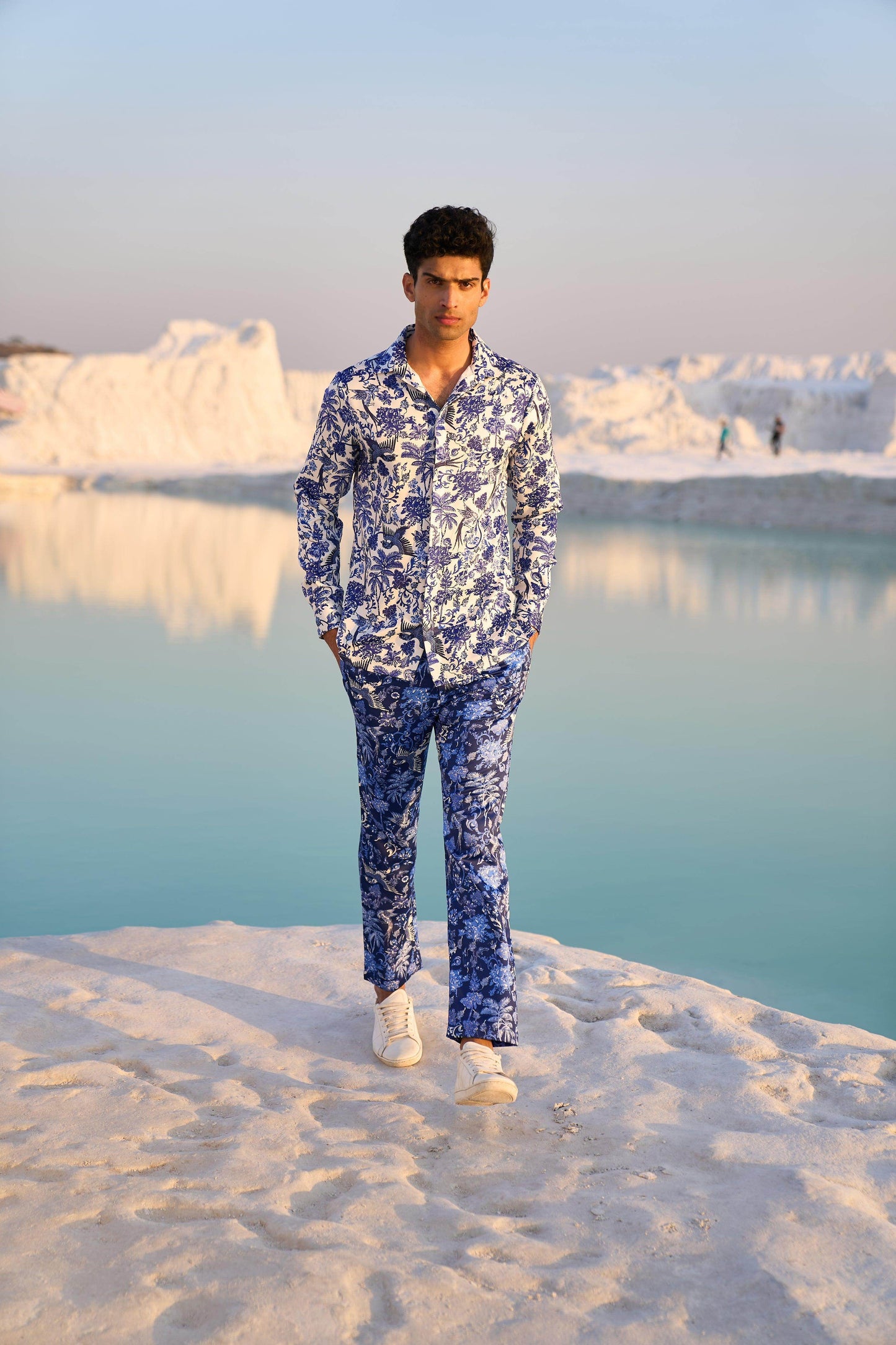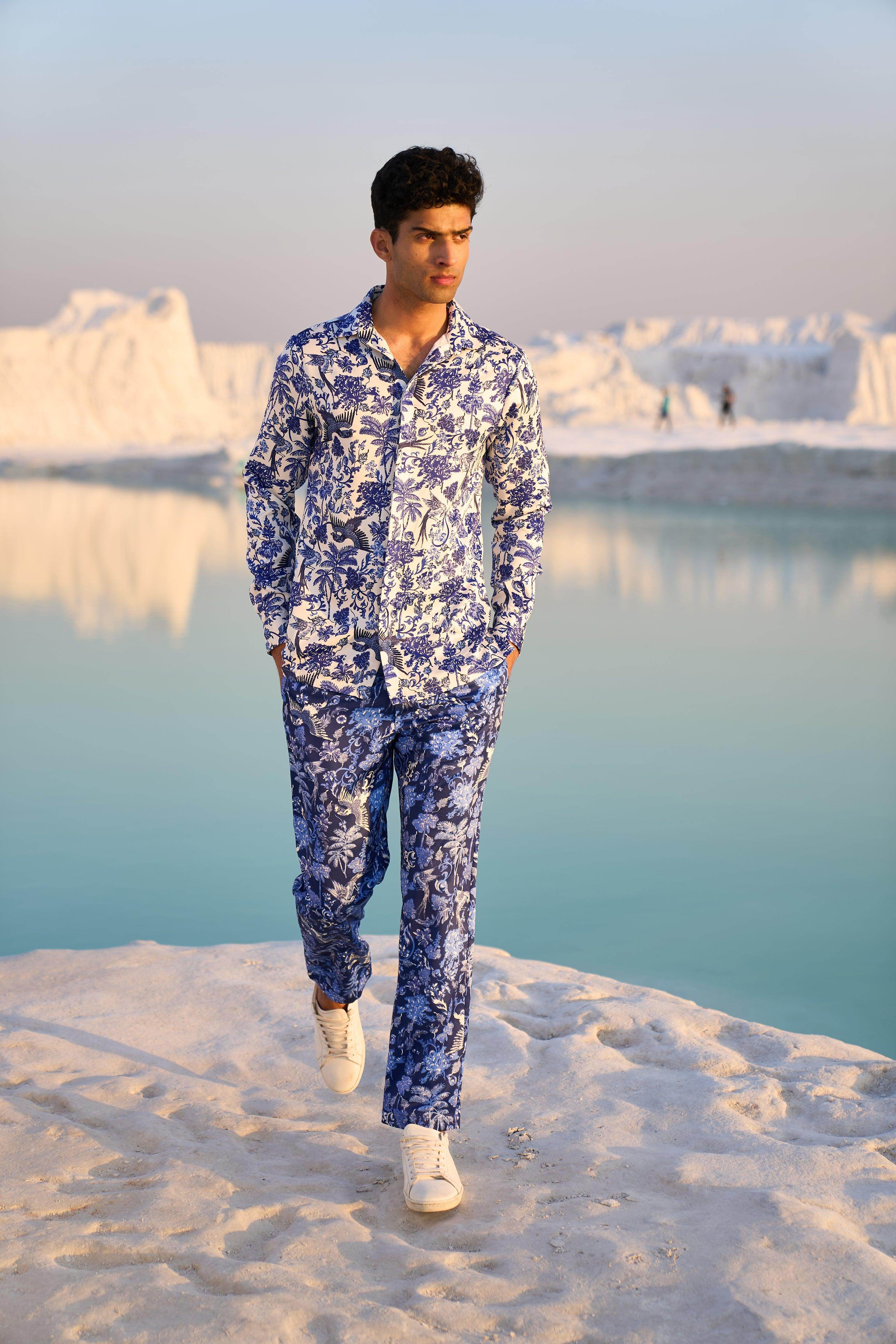 Printed full sleeve shirt inspired by porcelain hand painting in shades of blue on white. Concealed button placket, regular fit.