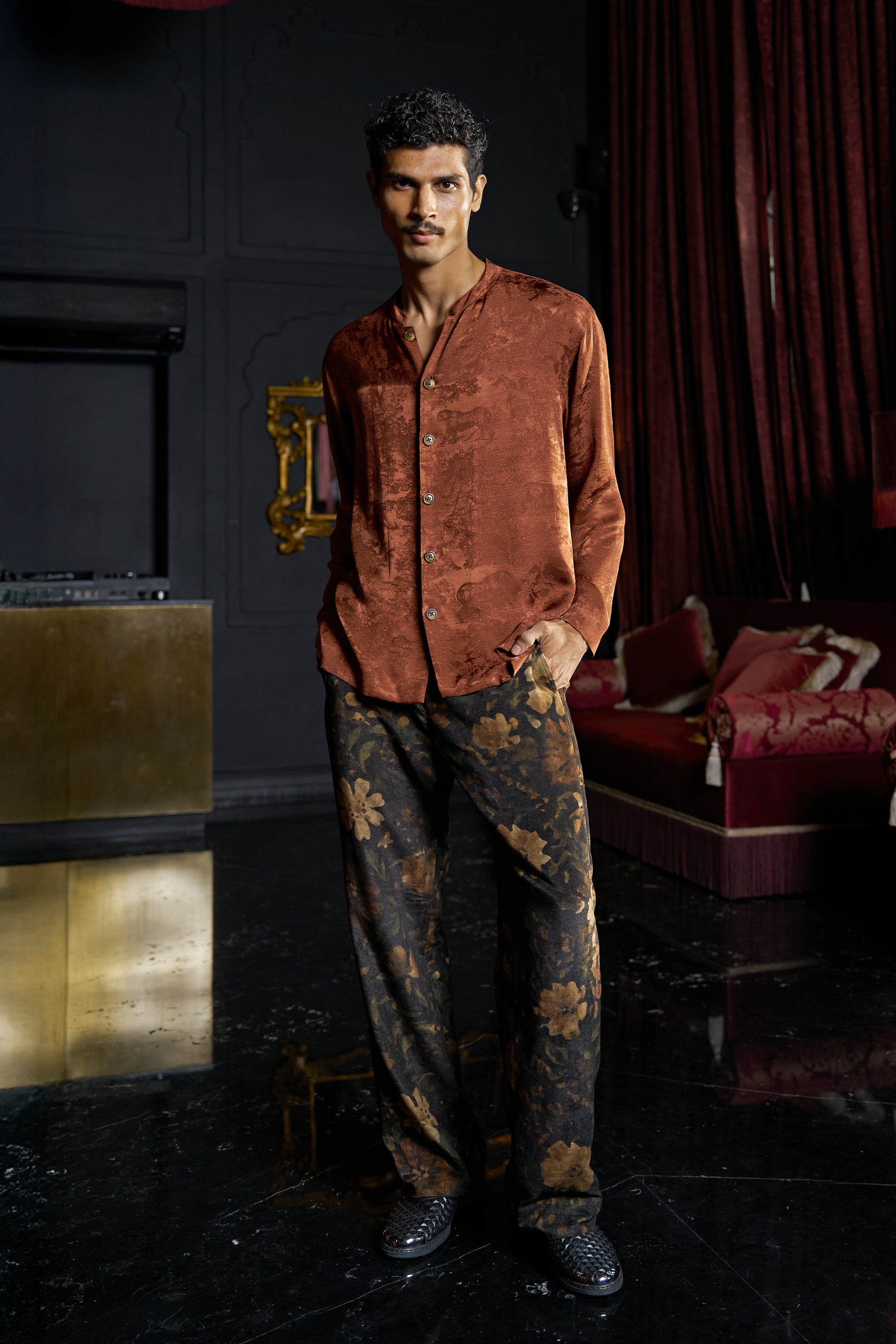 PRINTED VELVET PANT