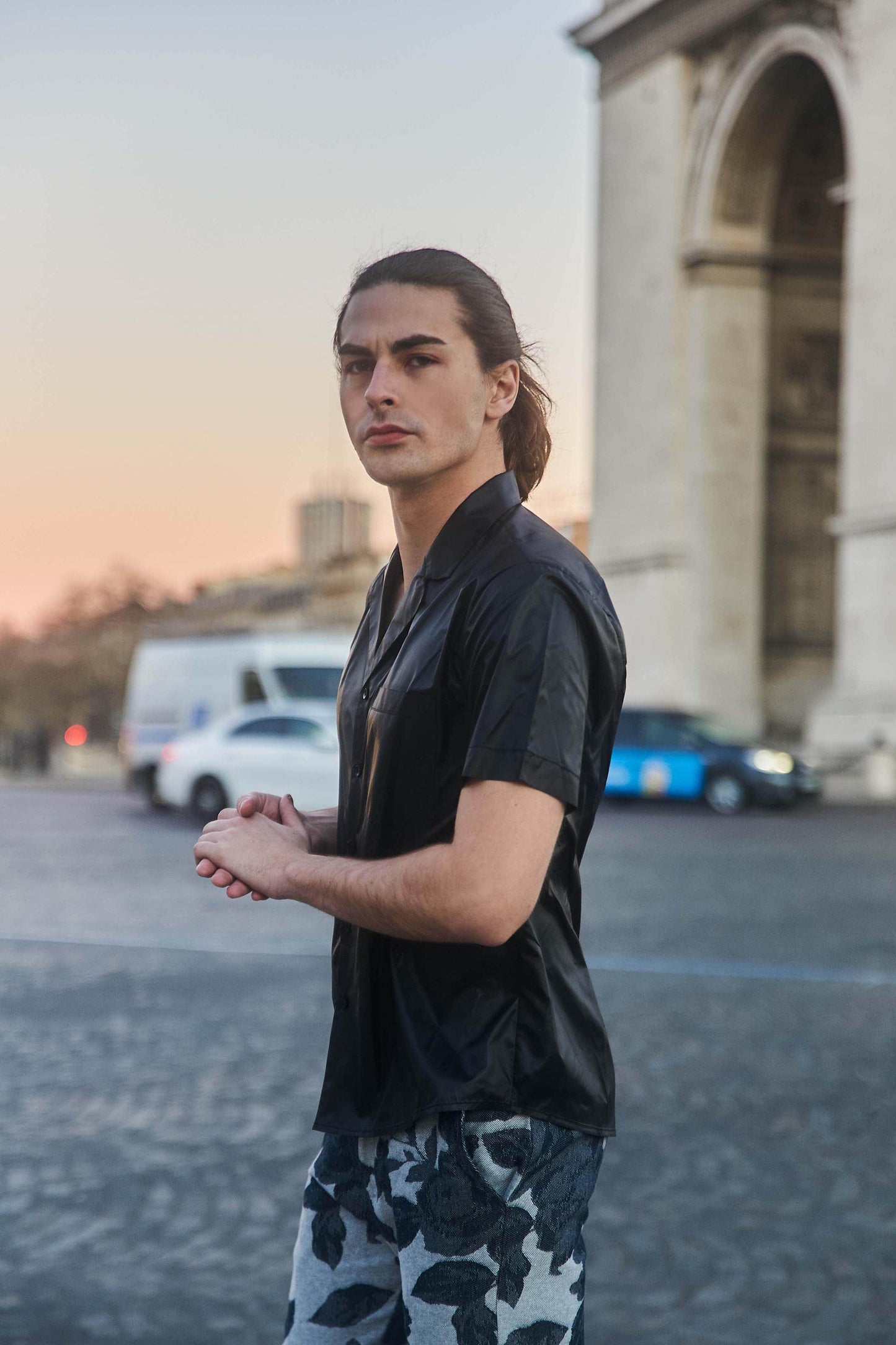 Half sleeve button-down shirt in tarp-like lustrous and crisp plain-weave fabric. Waterproof. Regular fit.
