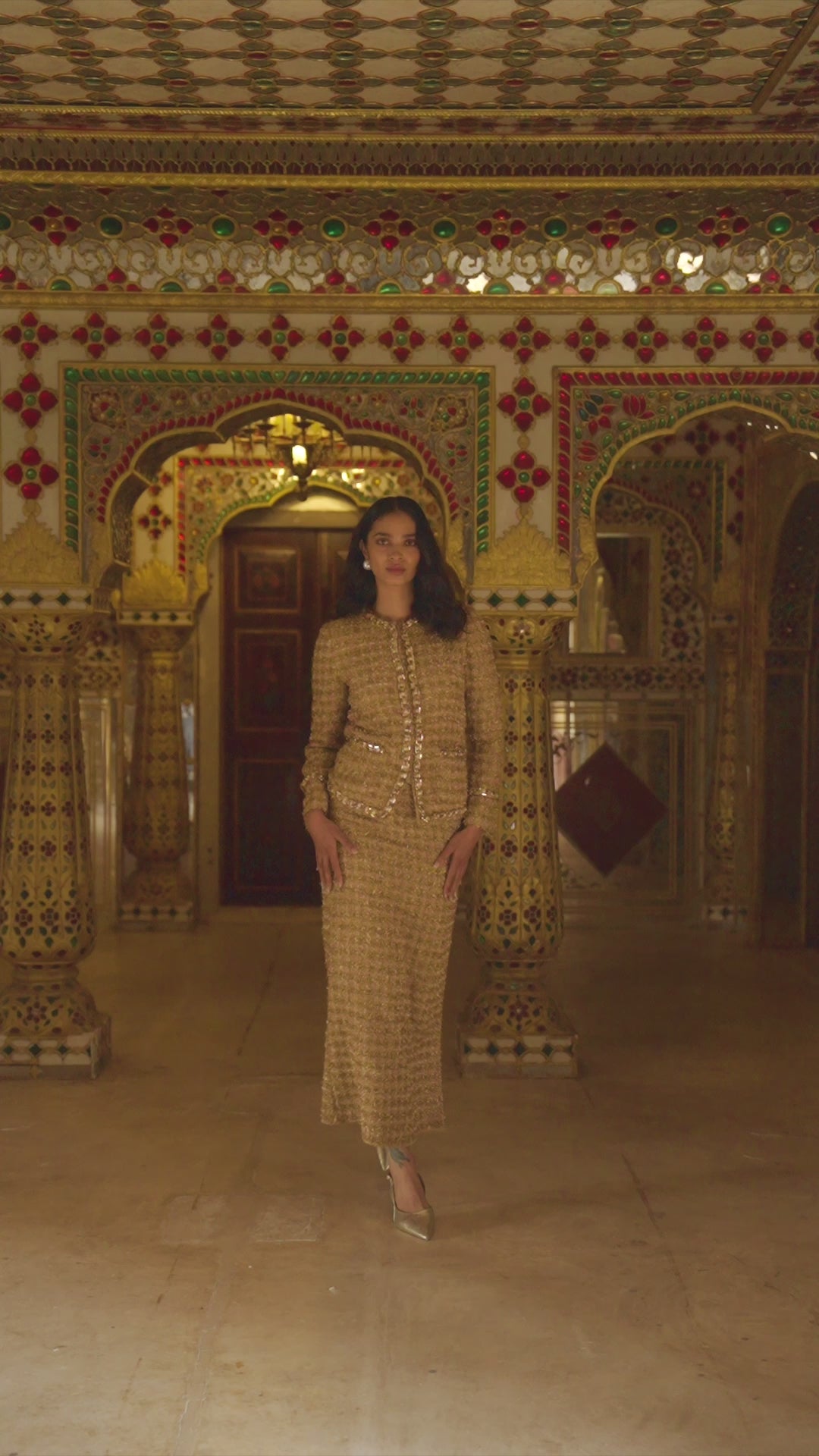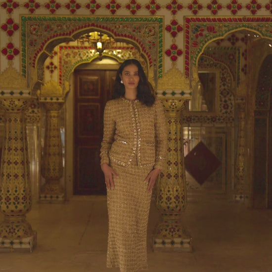 GOLD BOUCLÉ JACKET AND SKIRT - dash and dot dash and dot