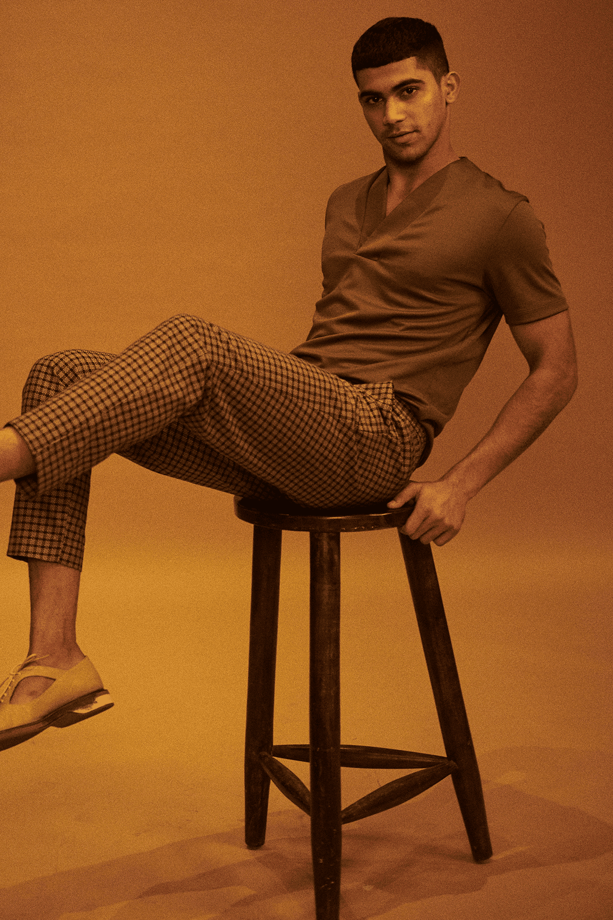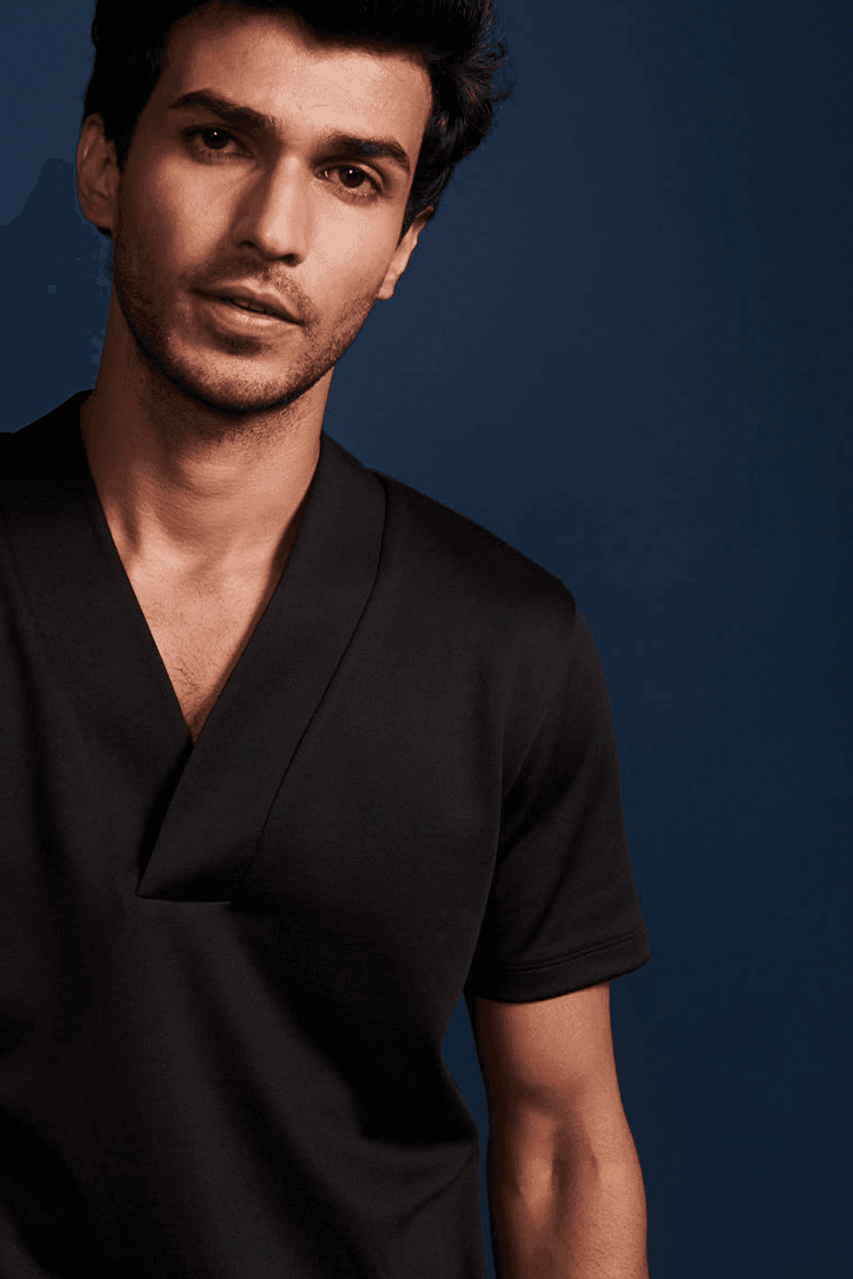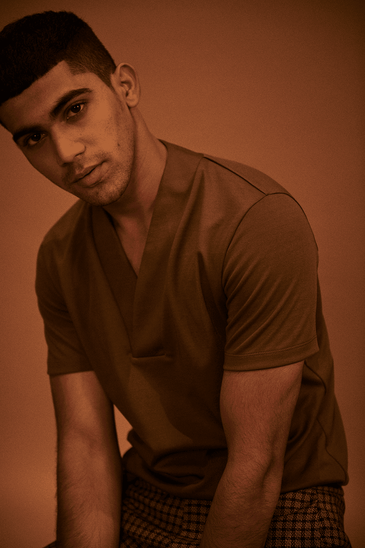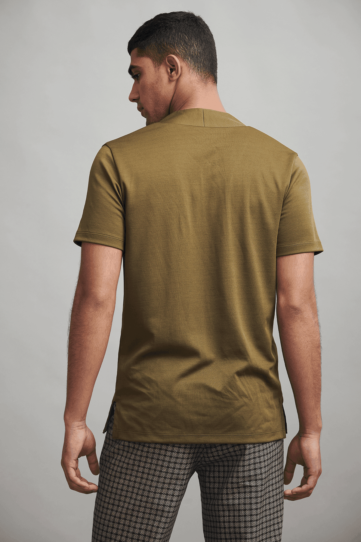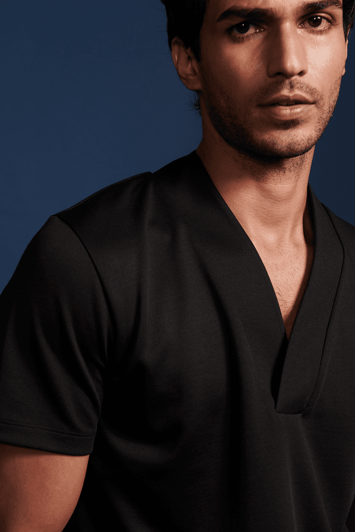 Overlap V neck polo in sustainably sourced, recycled polyester, and Pima cotton blend.