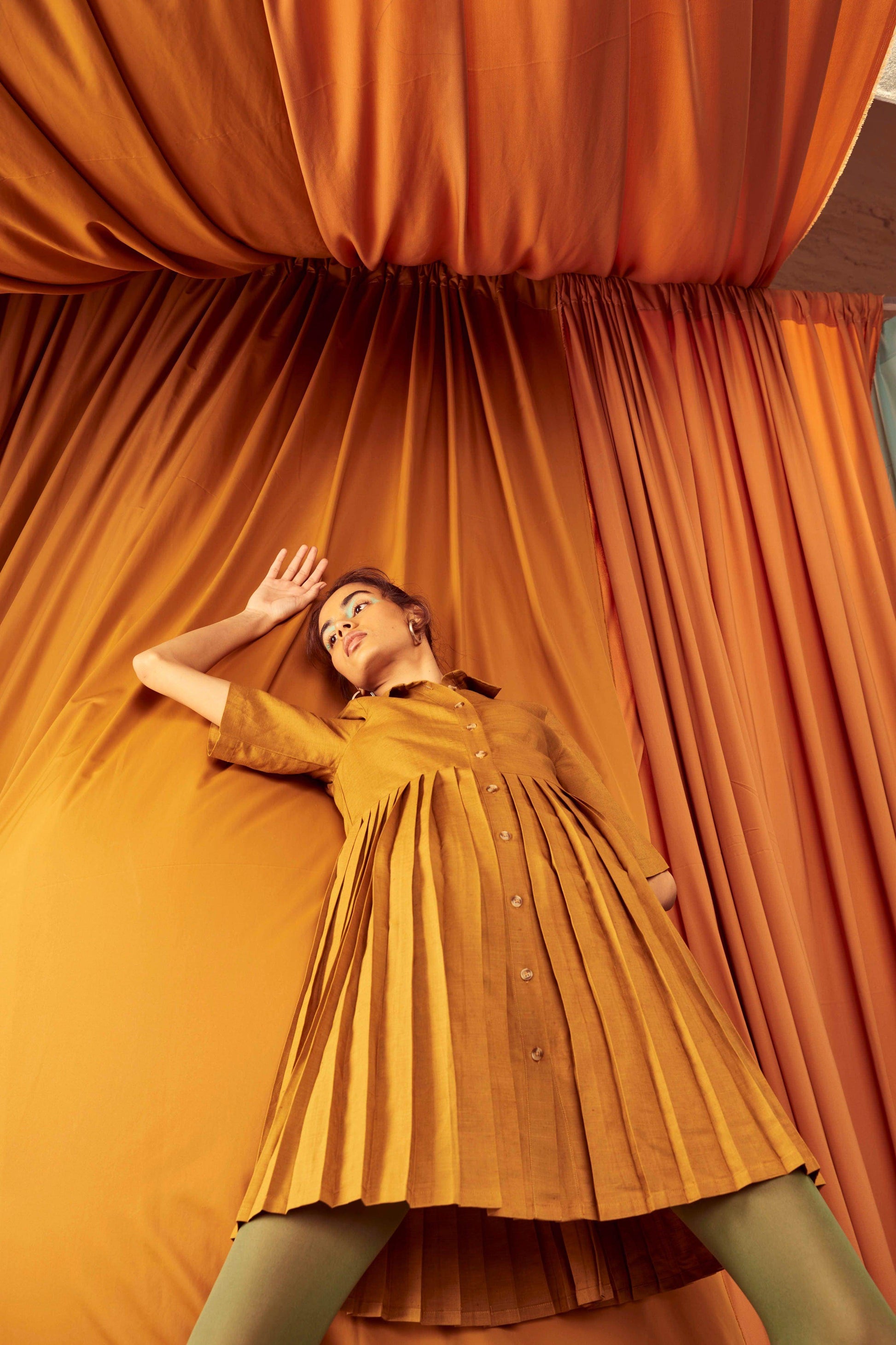 HALF SLEEVE ACCORDION PLEAT SHIRT DRESS - dash and dot dash and dot