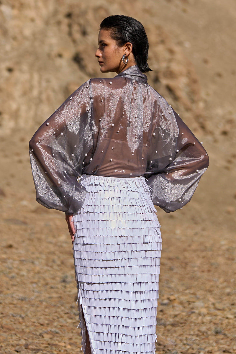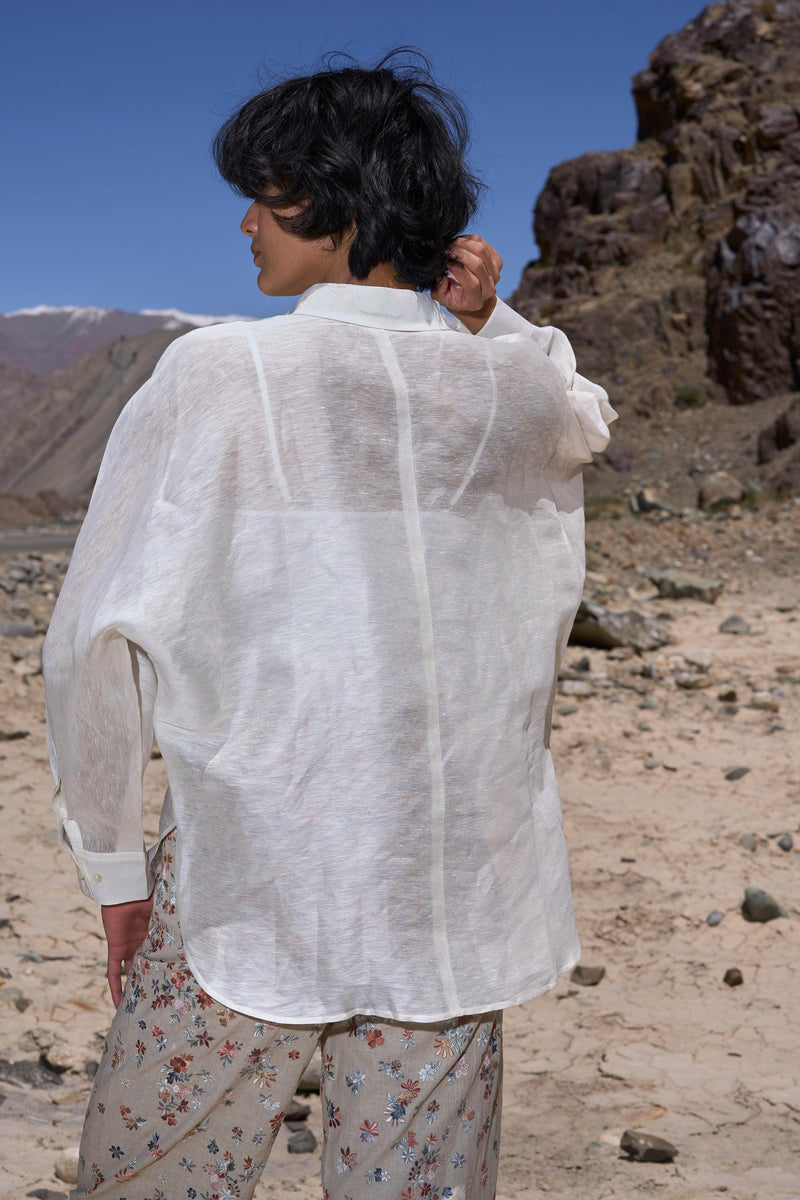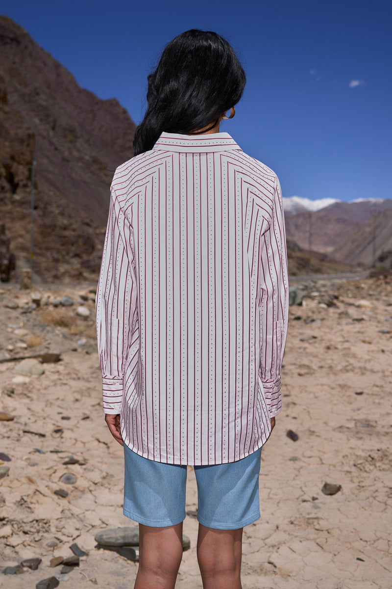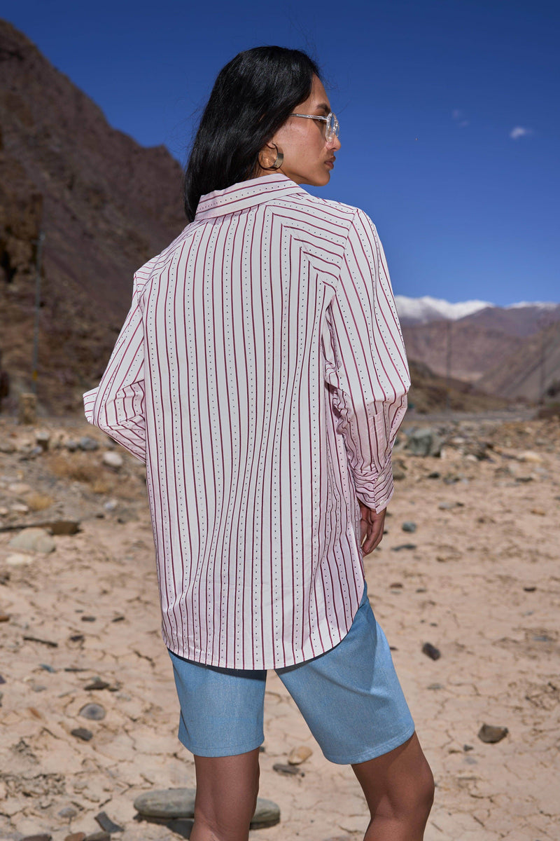 BENARES BROCADE STRIPED LONGLINE SHIRT