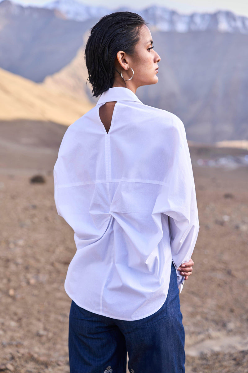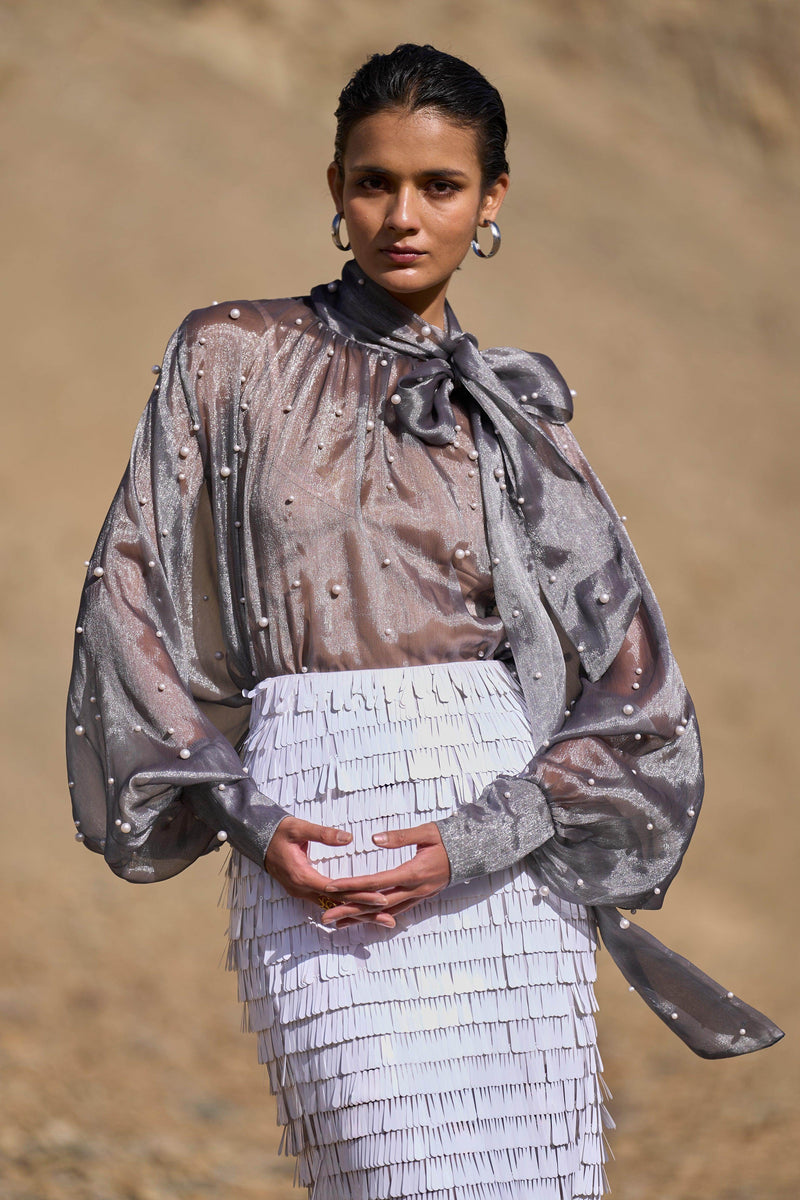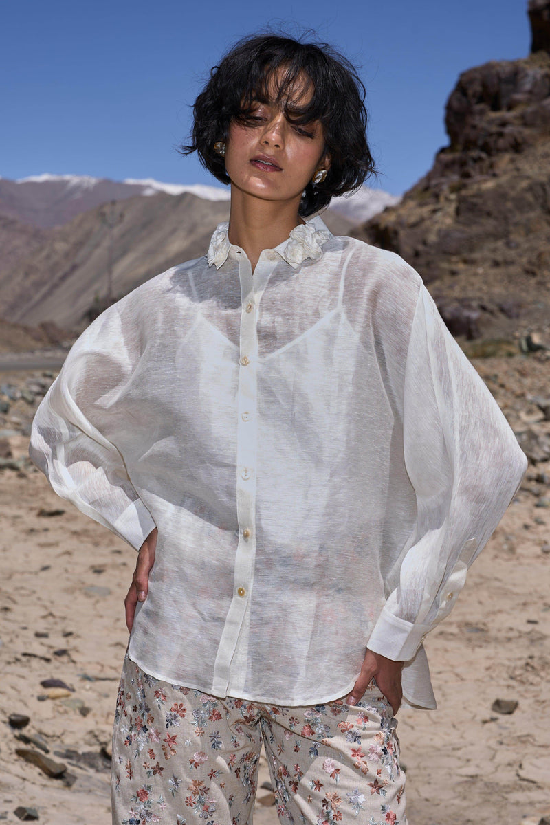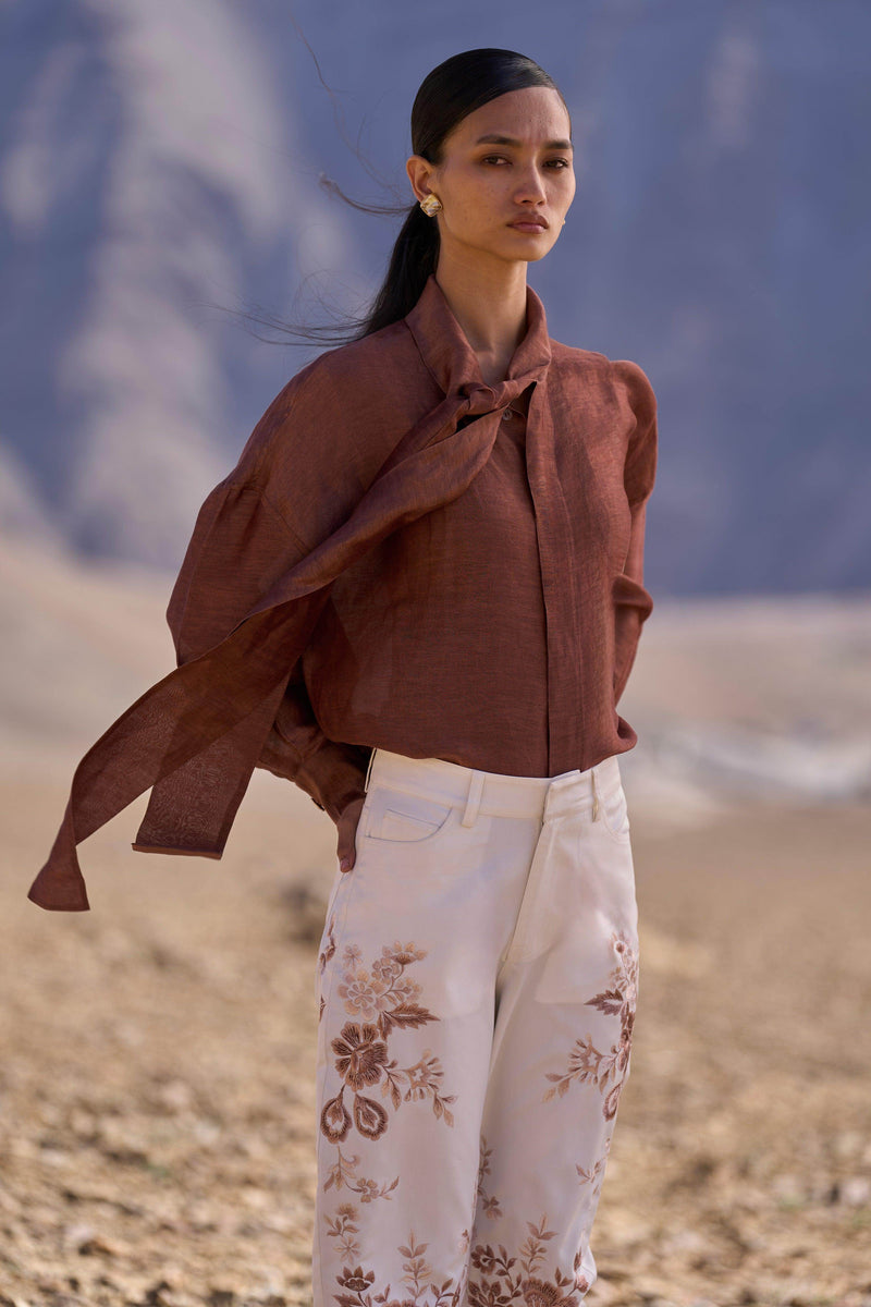 BENARES BROCADE STRIPED LONGLINE SHIRT