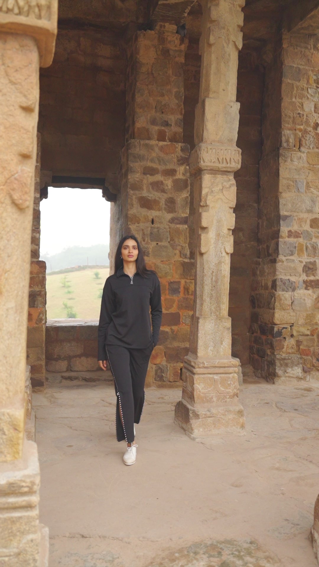 Straight cut knit pant with swarovski crystal zippers down the full side seams. Zippers are functional and open from the bottom hem. Can be worn fully closed or opened. Elasticated at the waist. Pockets in the sides.