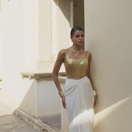 GOLD CORSET & IVORY DRAPED SKIRT - dash and dot dash and dot