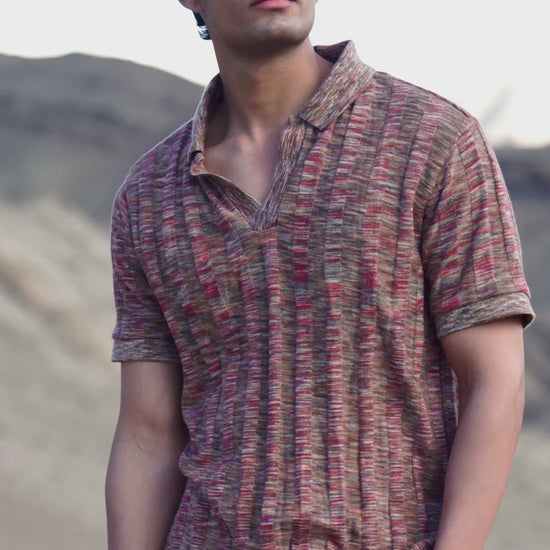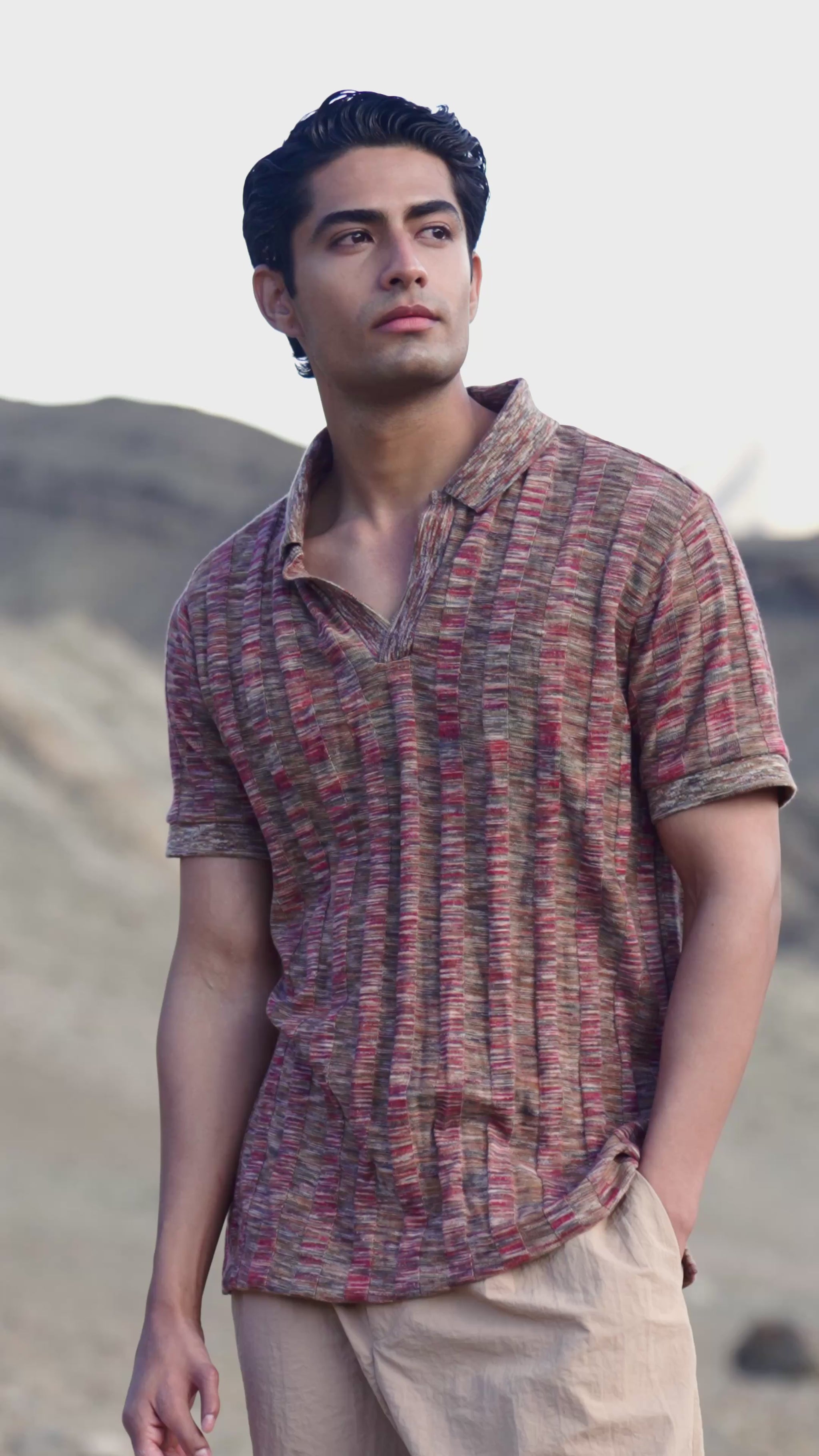 Khaki poplin pant with inverted pleats in the front. Horn button with zip closure in the front. Cropped length. Pockets in the sides and back. Relaxed fit.