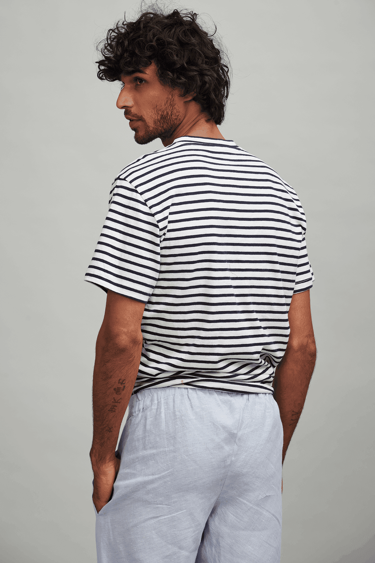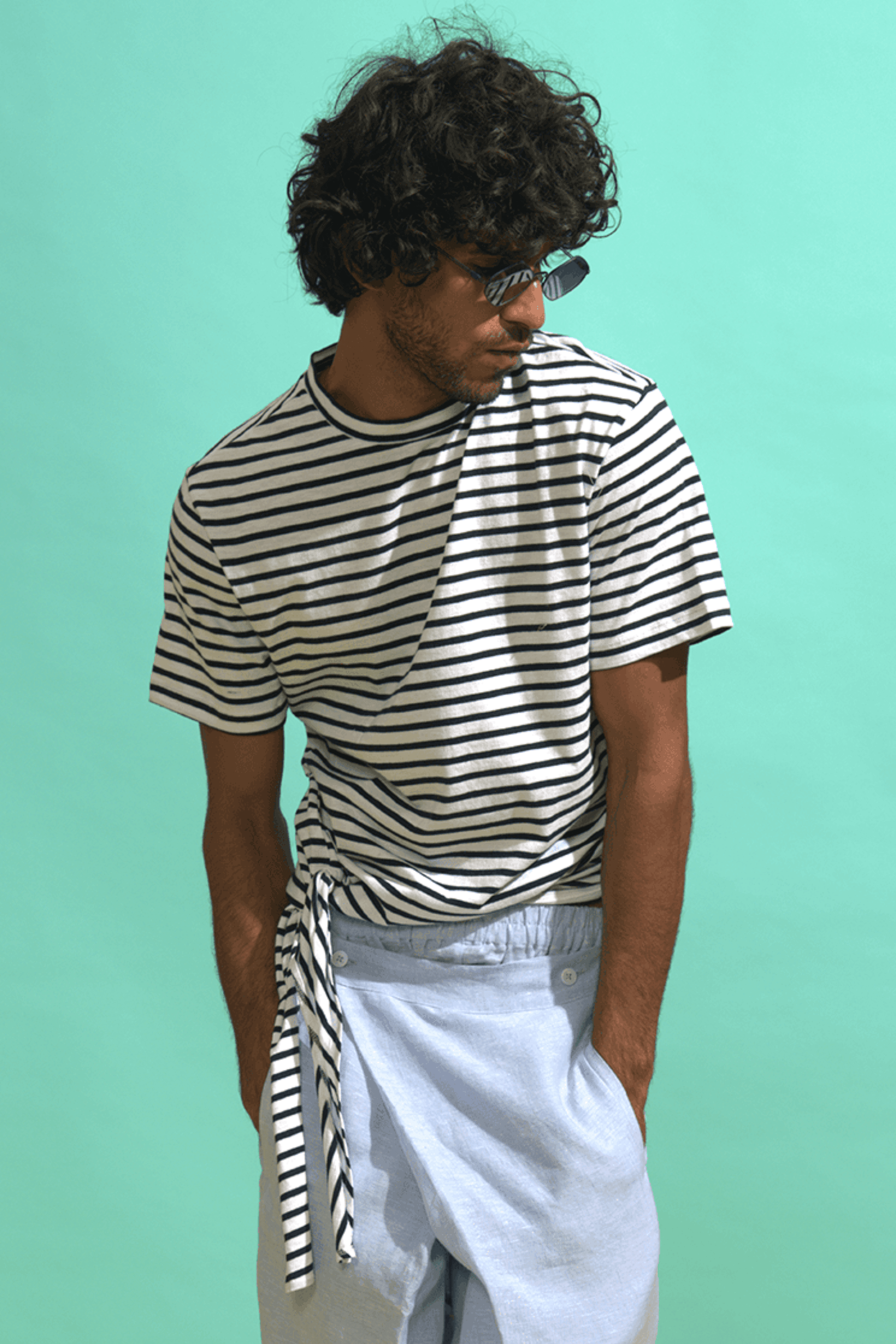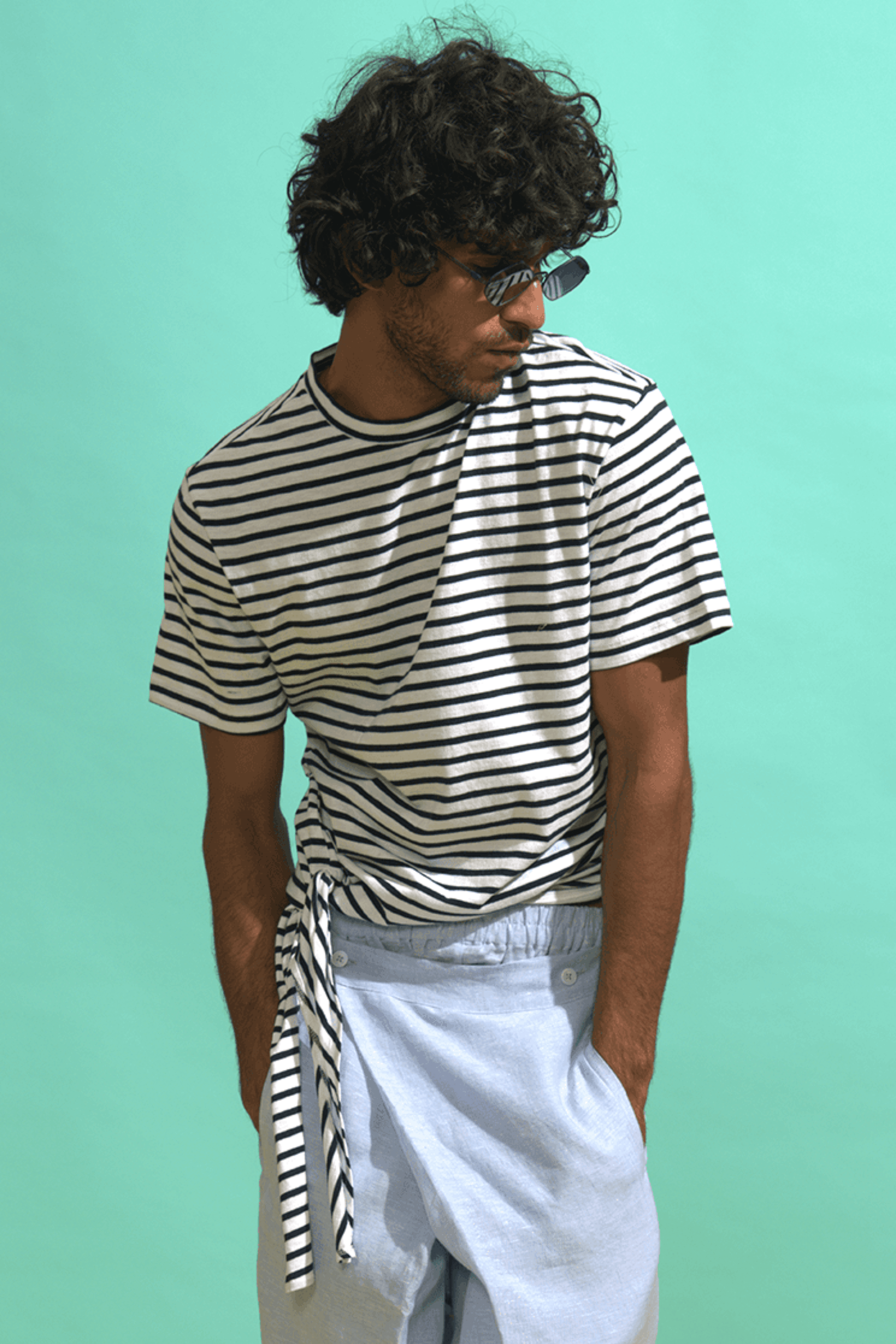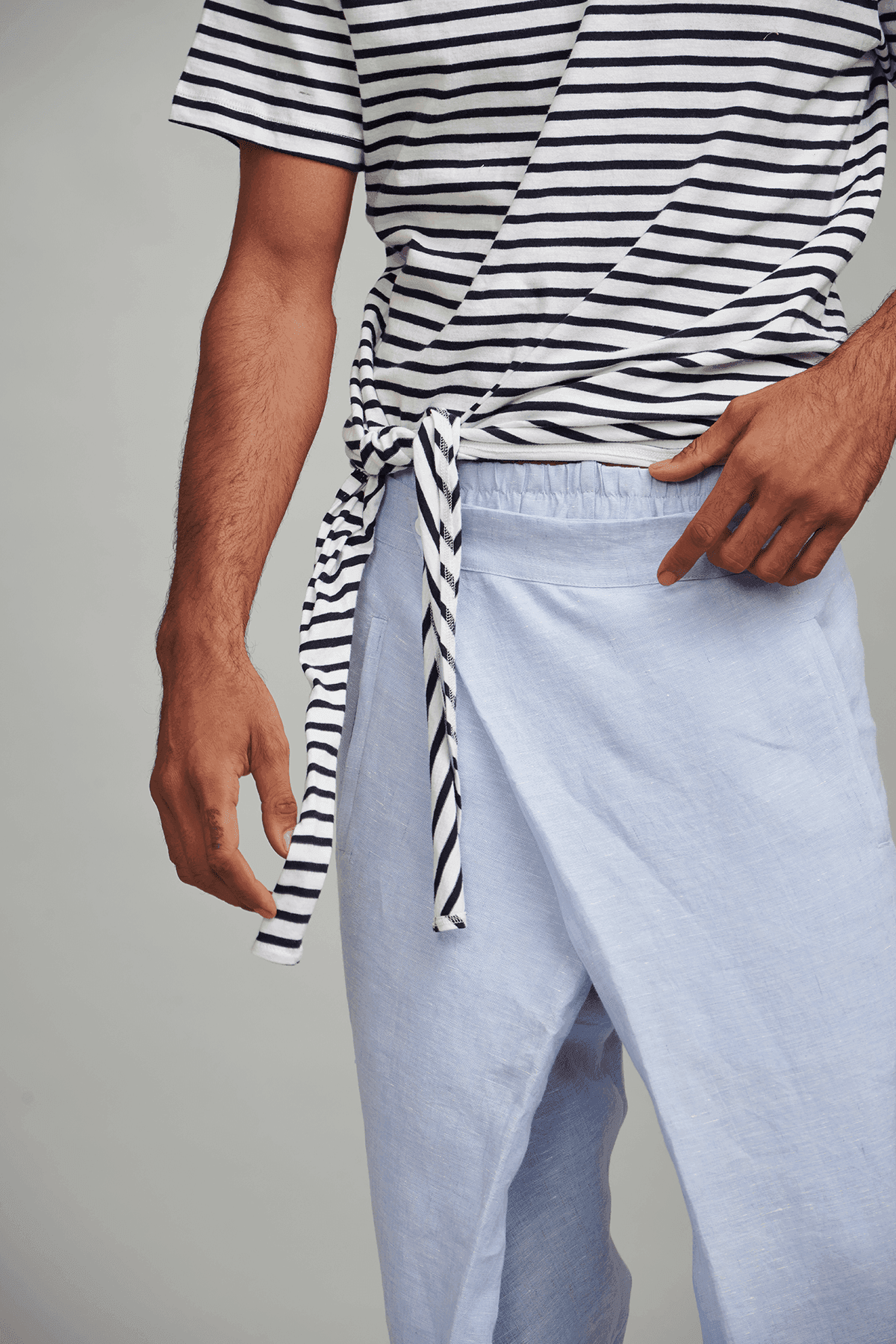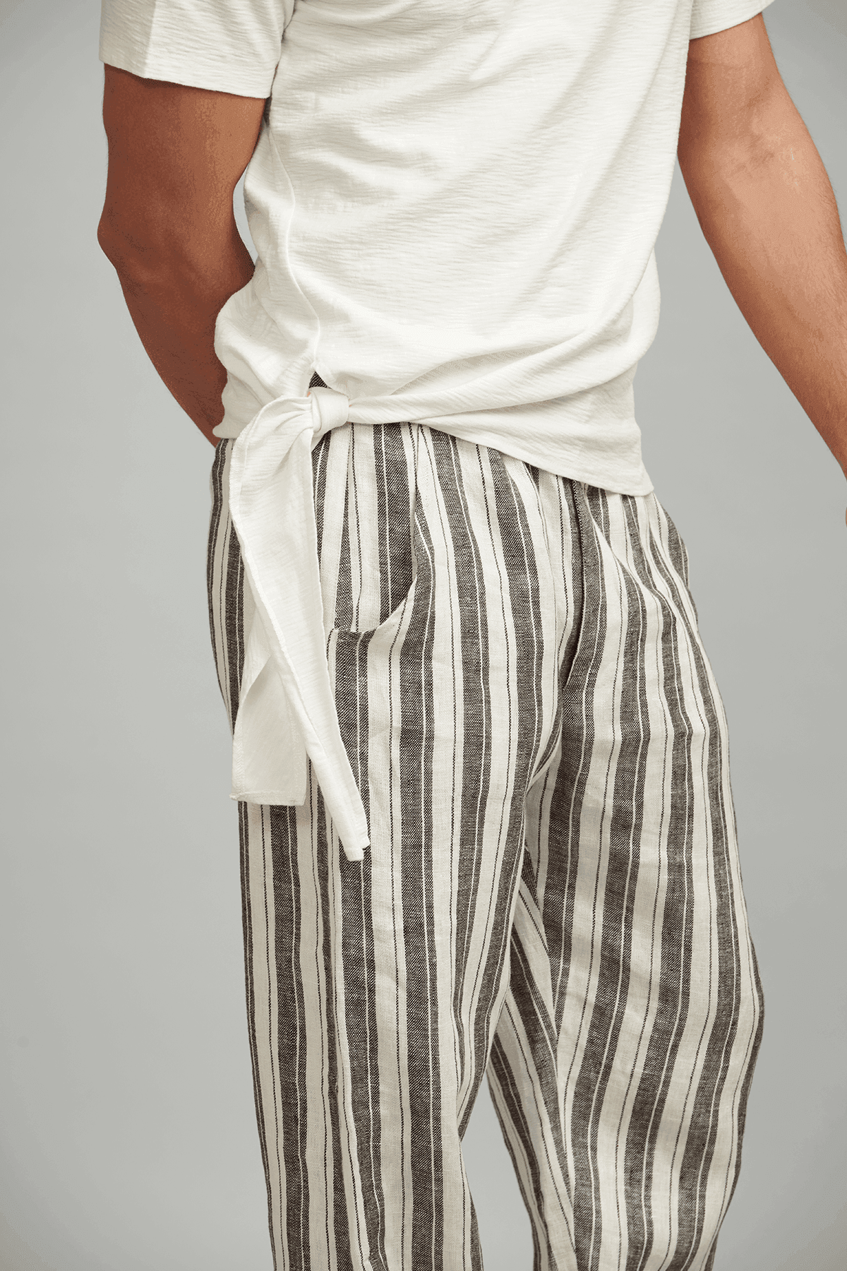 Basic round neck men's tee with a side tie knot.