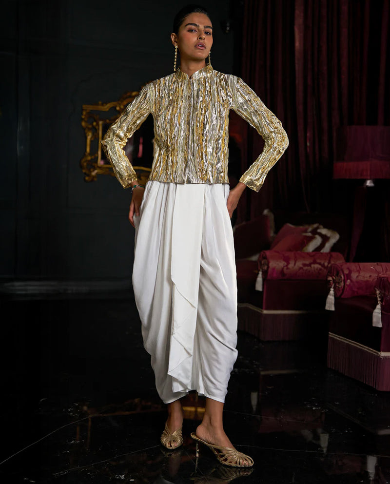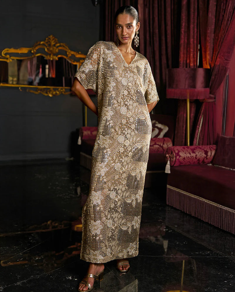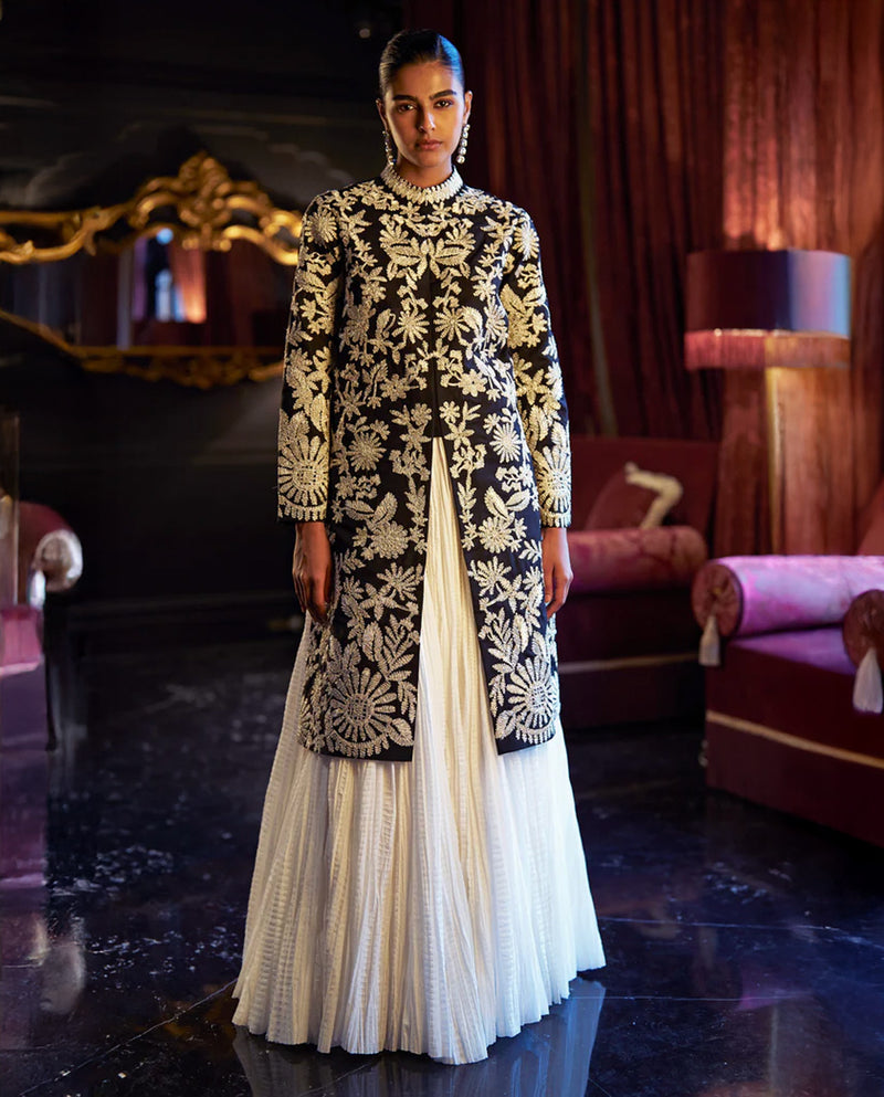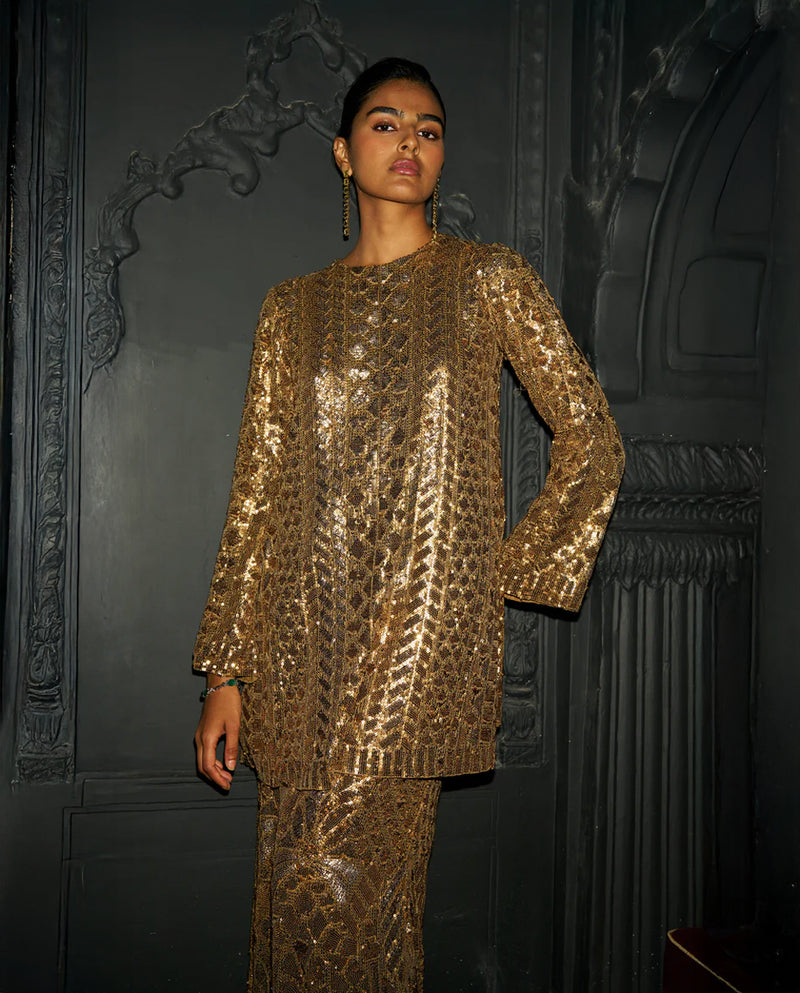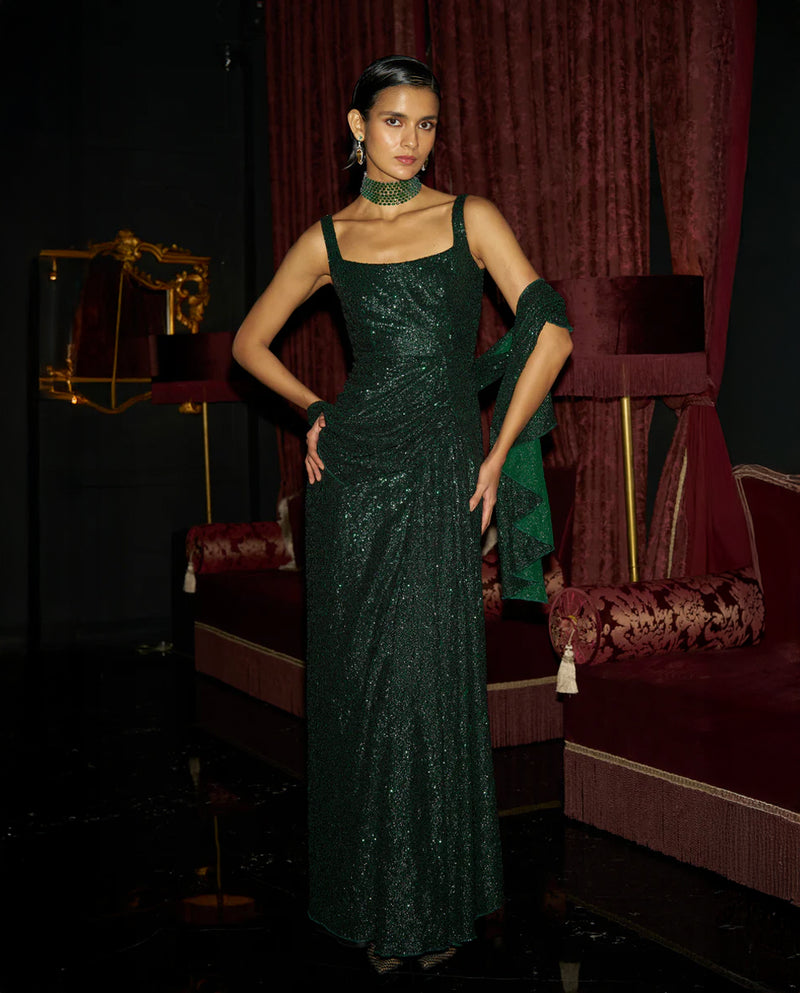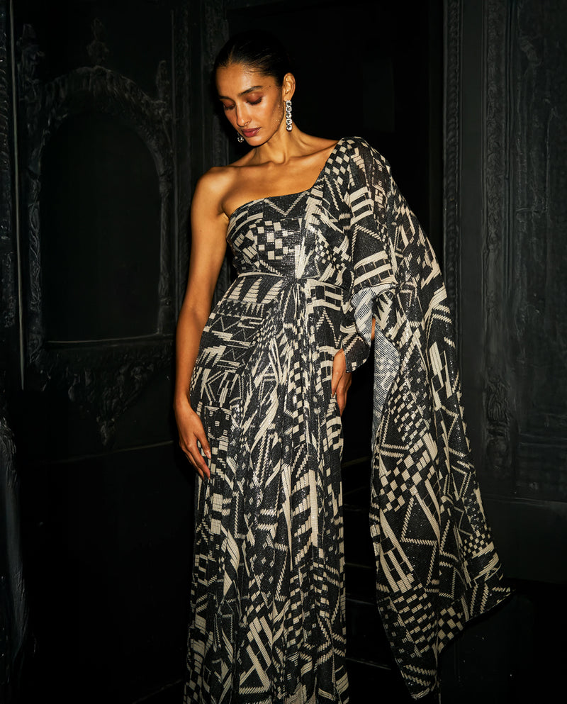 MONOCHROME SEQUIN SARI DRAPE GOWN