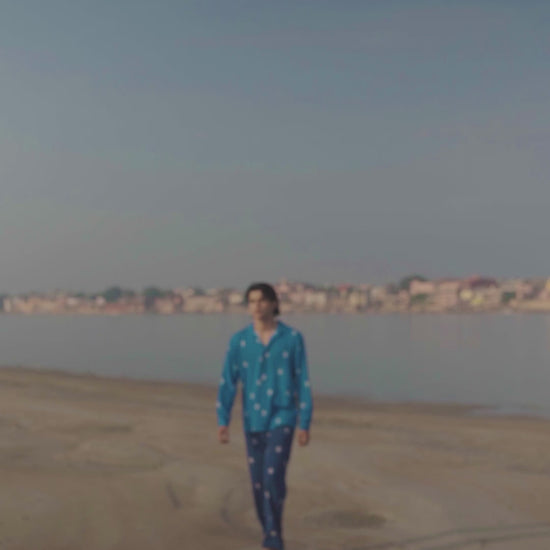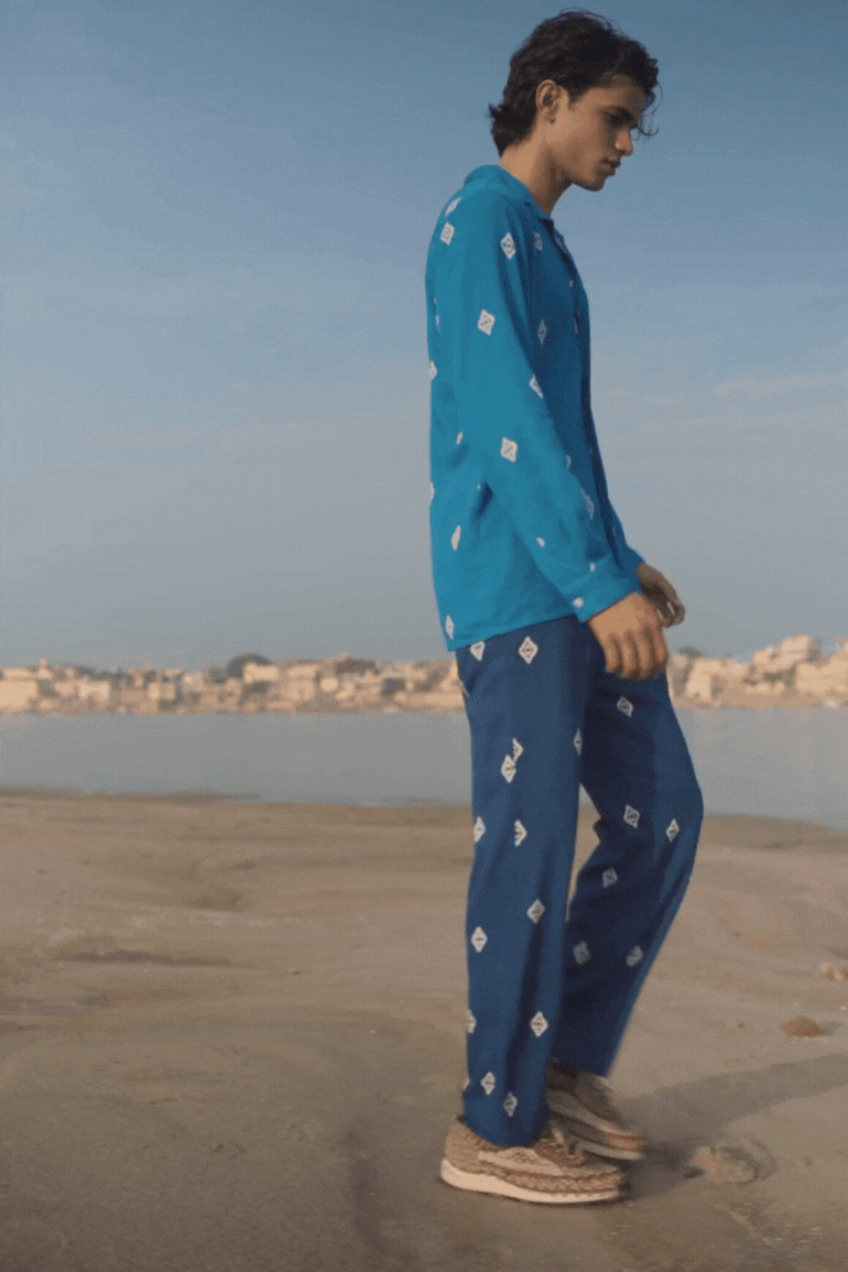 BLUE IKKAT PRINT PANT - dash and dot dash and dot