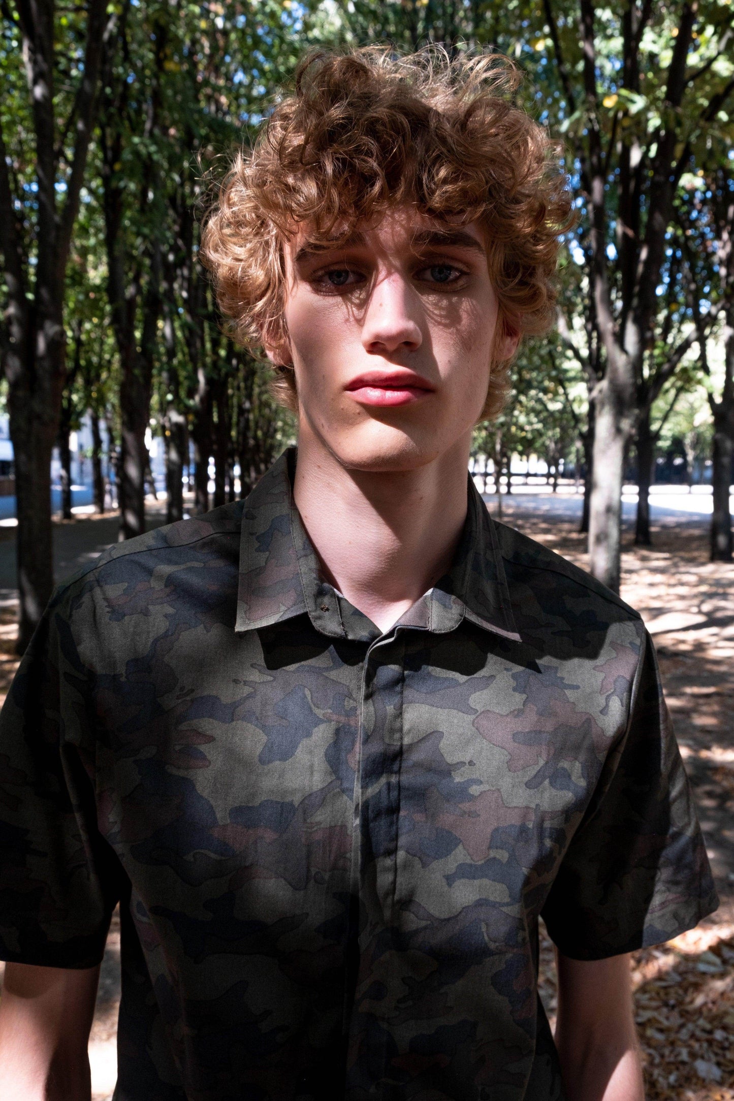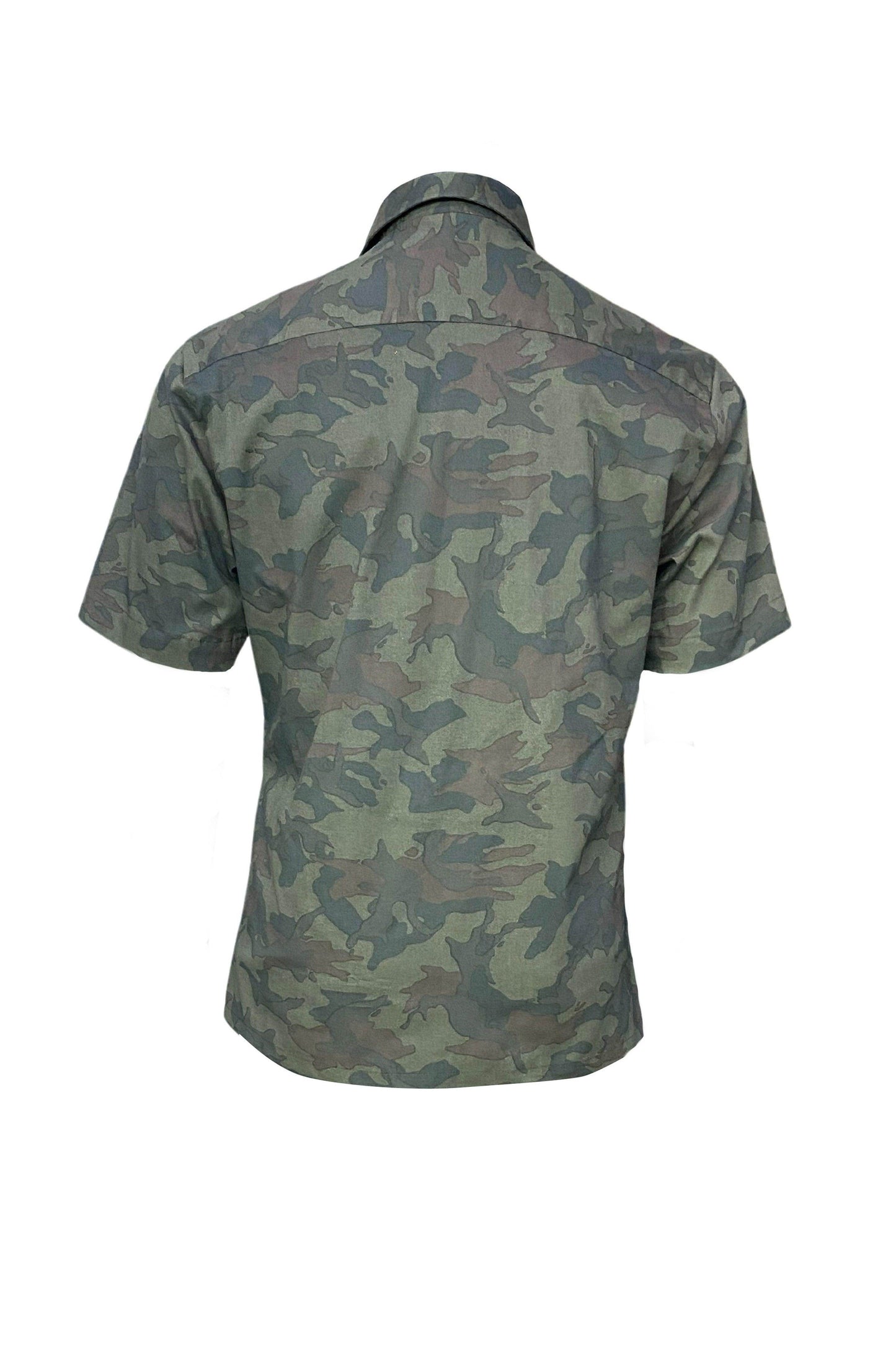 Camouflage print short sleeve shirt. Concealed button placket. Regular fit.
