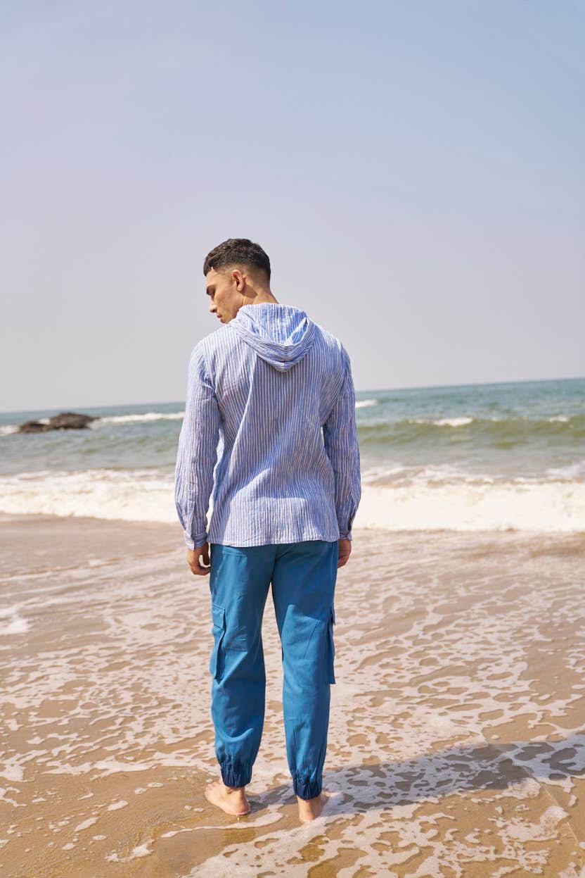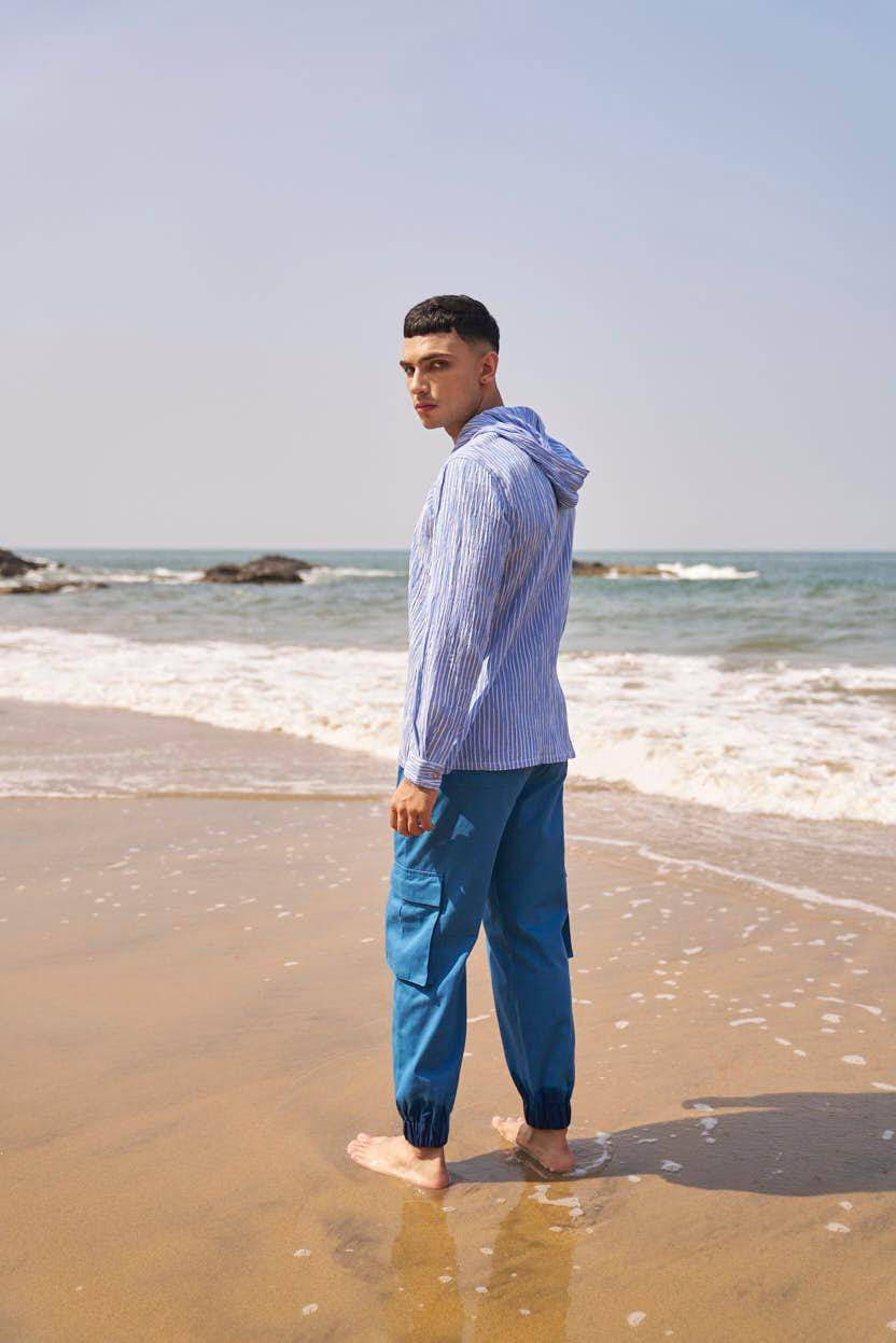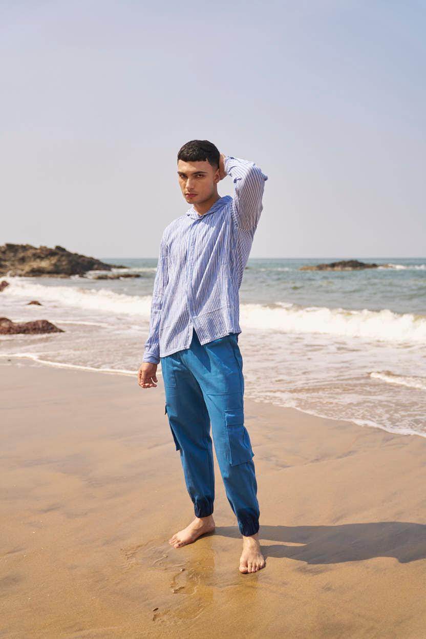 Cotton utility jogger with patched pockets on the front, back and side. Elasticated at the pant cuff and with a drawstring at the waist.
