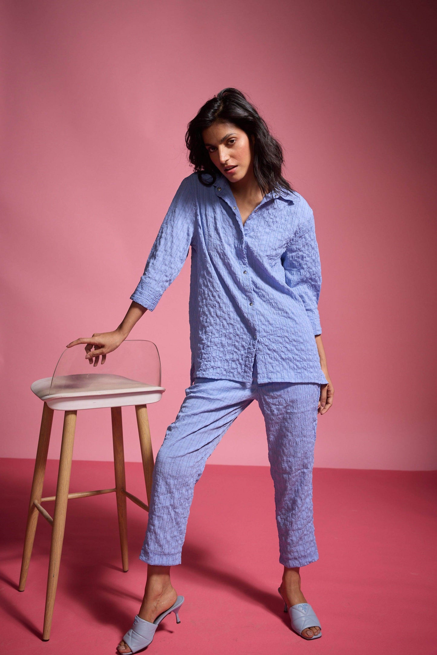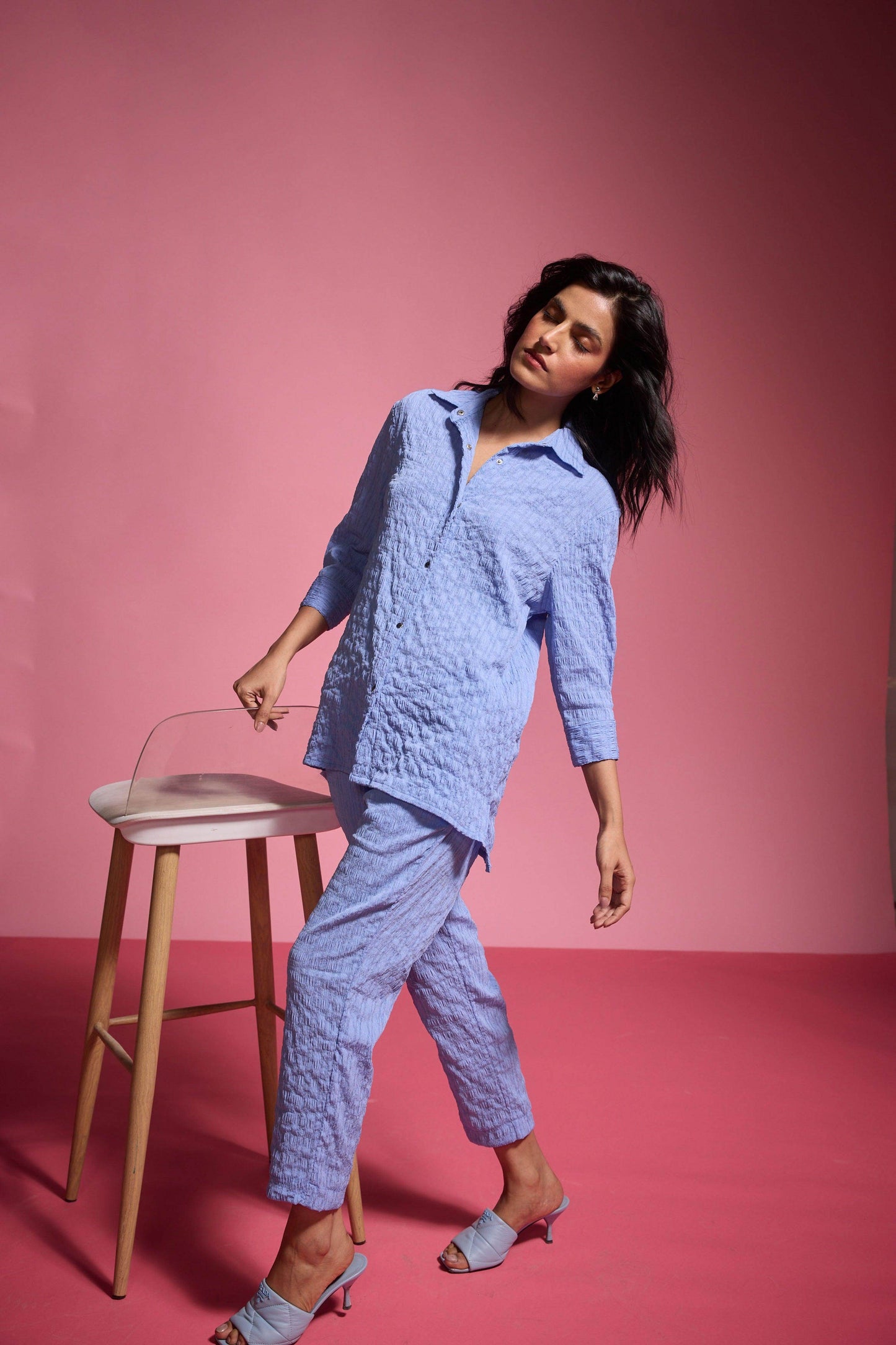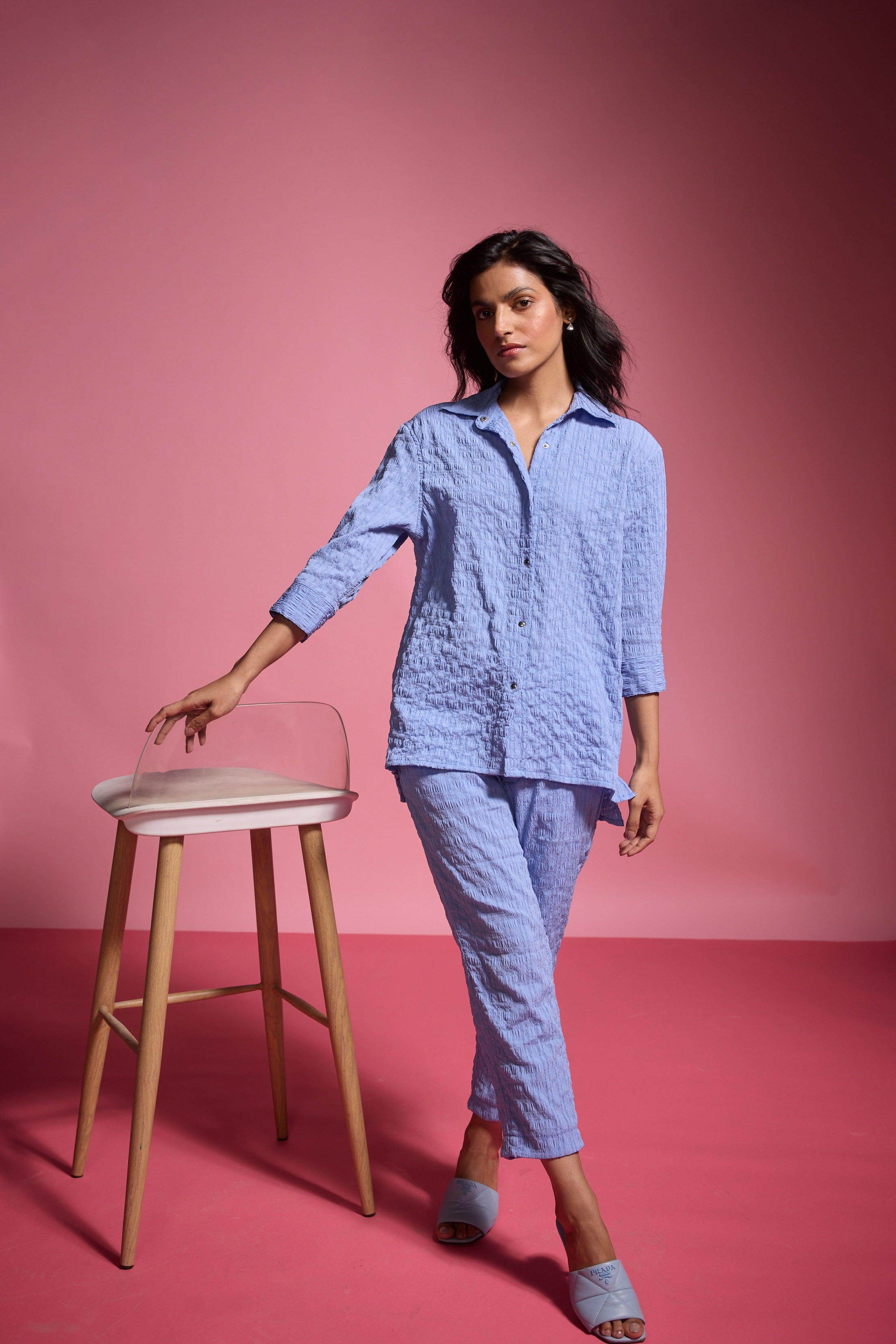 Straight pants in textural crinkle fabric. Features side pockets and a hook-and-eye zip closure.